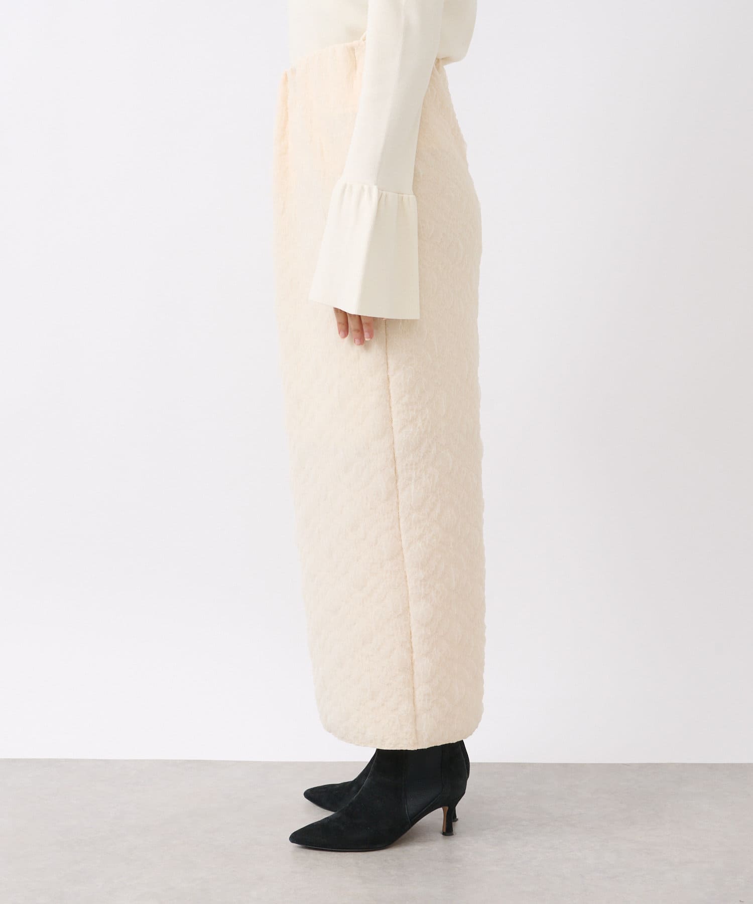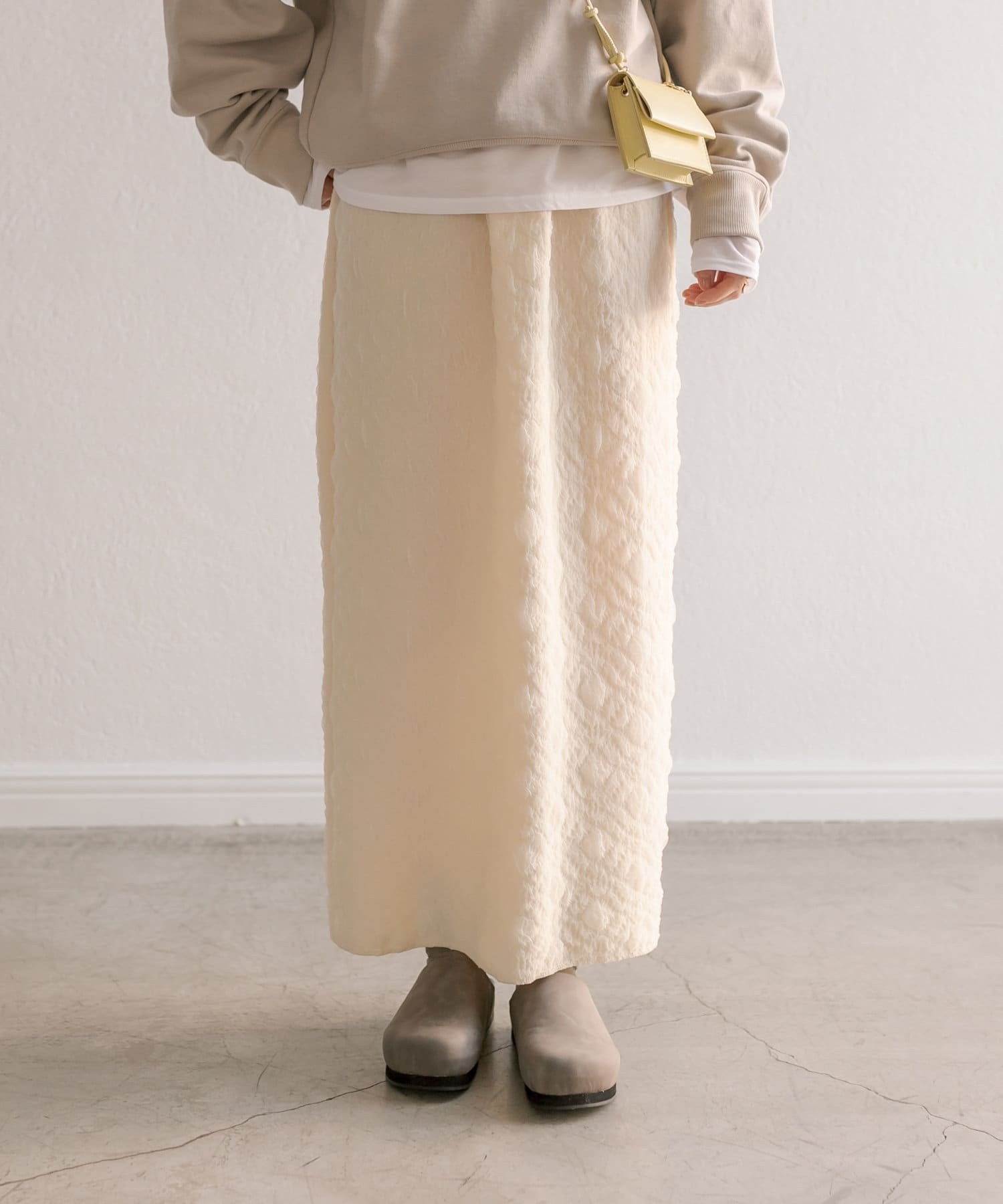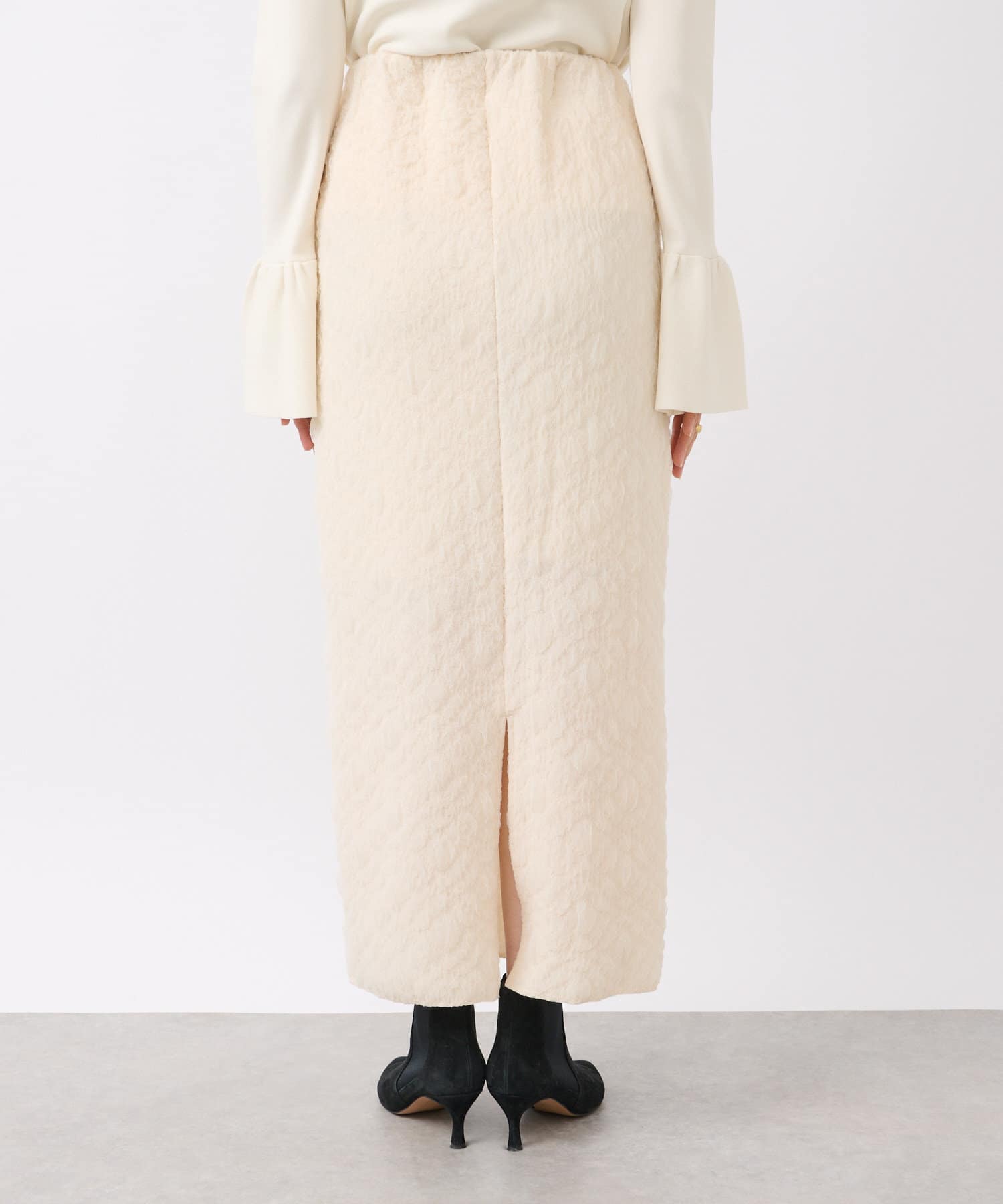 ふくれジャガードを使用した素材感がポイントのタイトスカート。