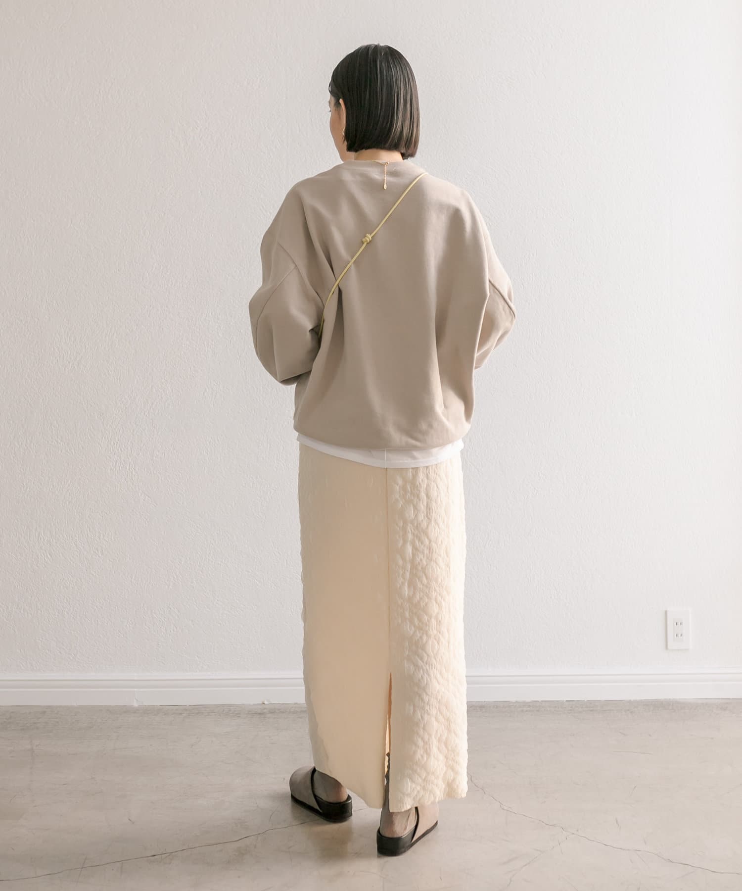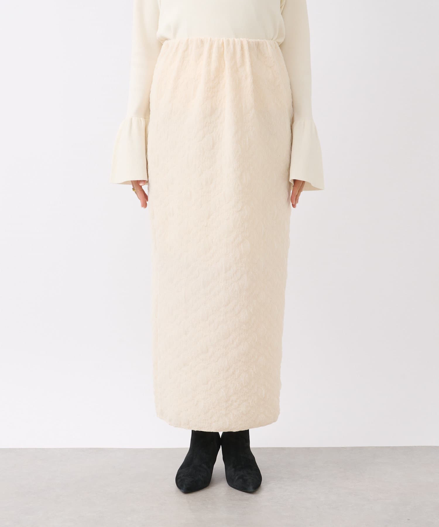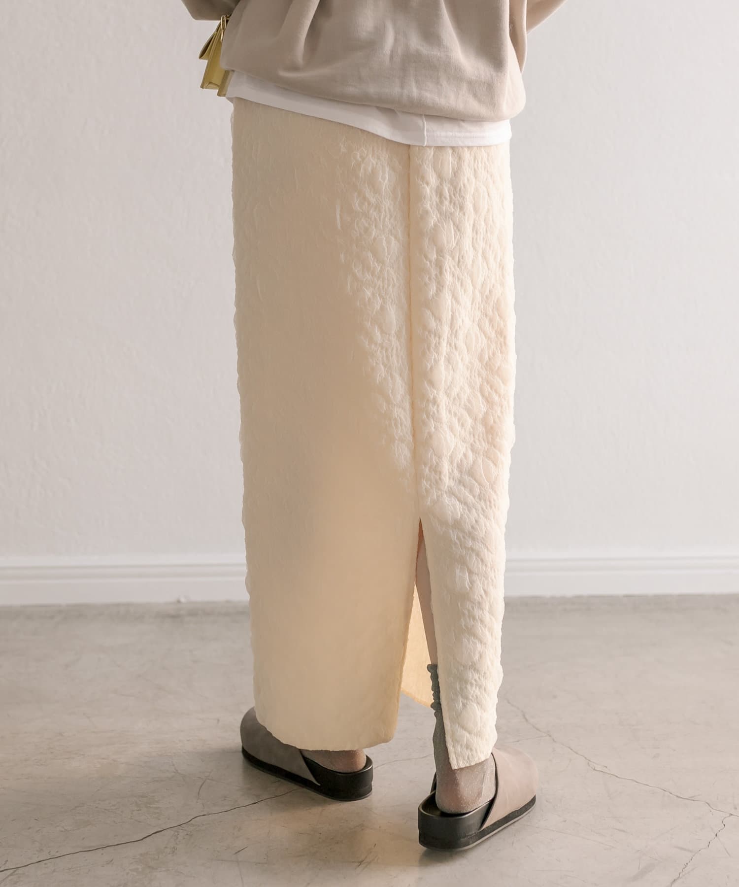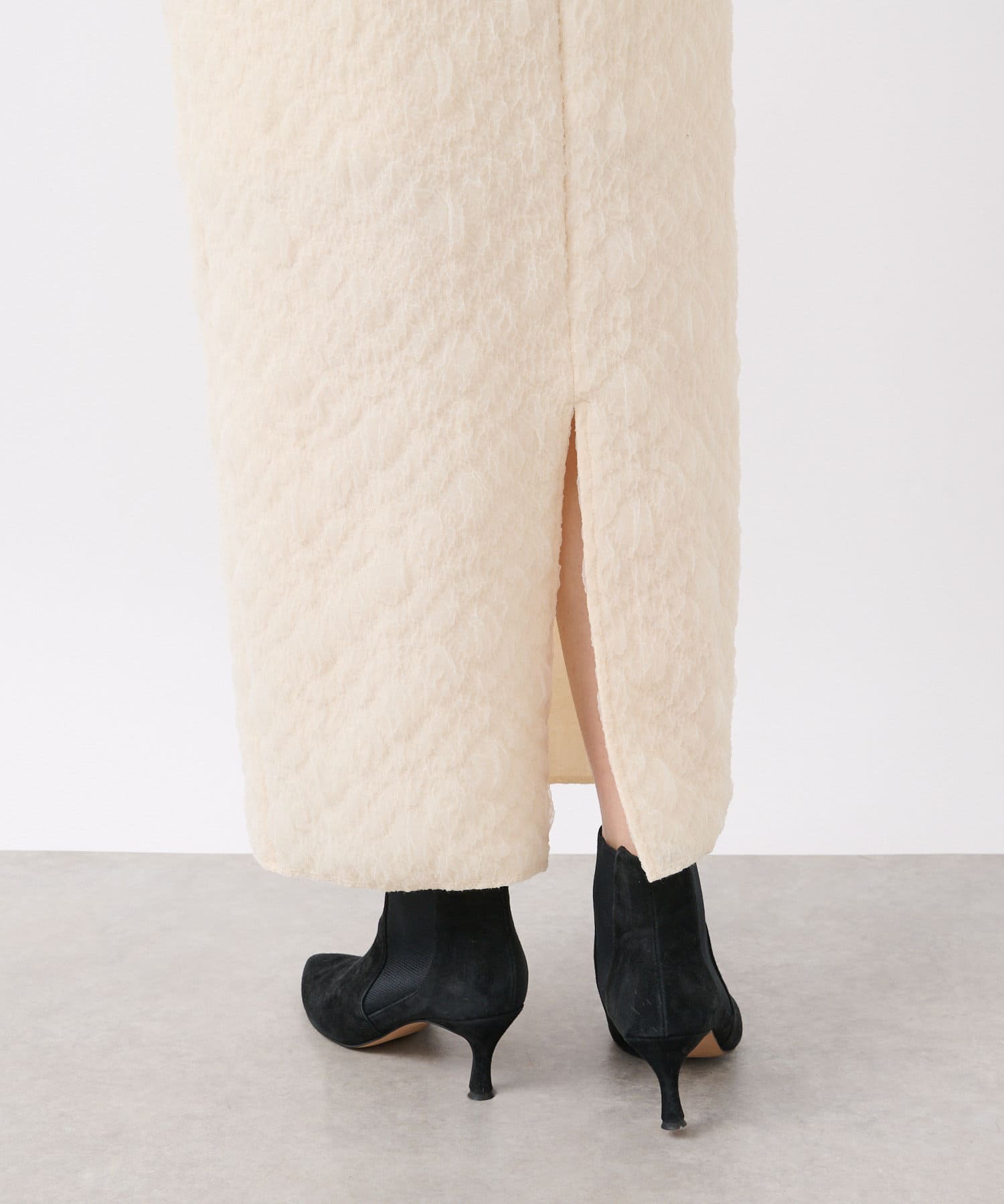 ふくれジャガードを使用した素材感がポイントのタイトスカート。