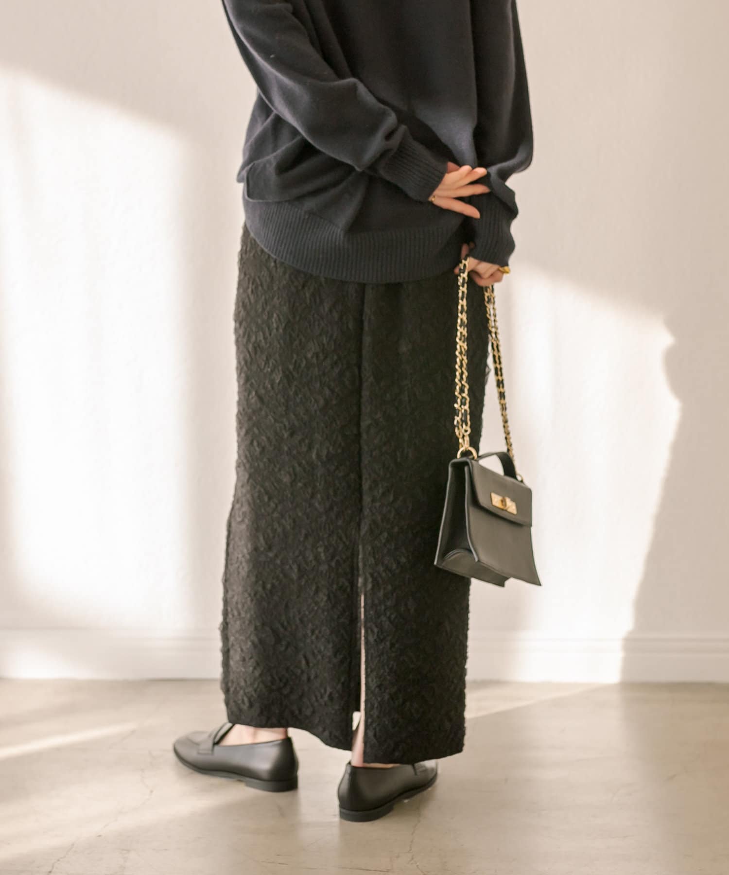 • ふくれジャガードを使用した素材感がポイントのタイトスカート