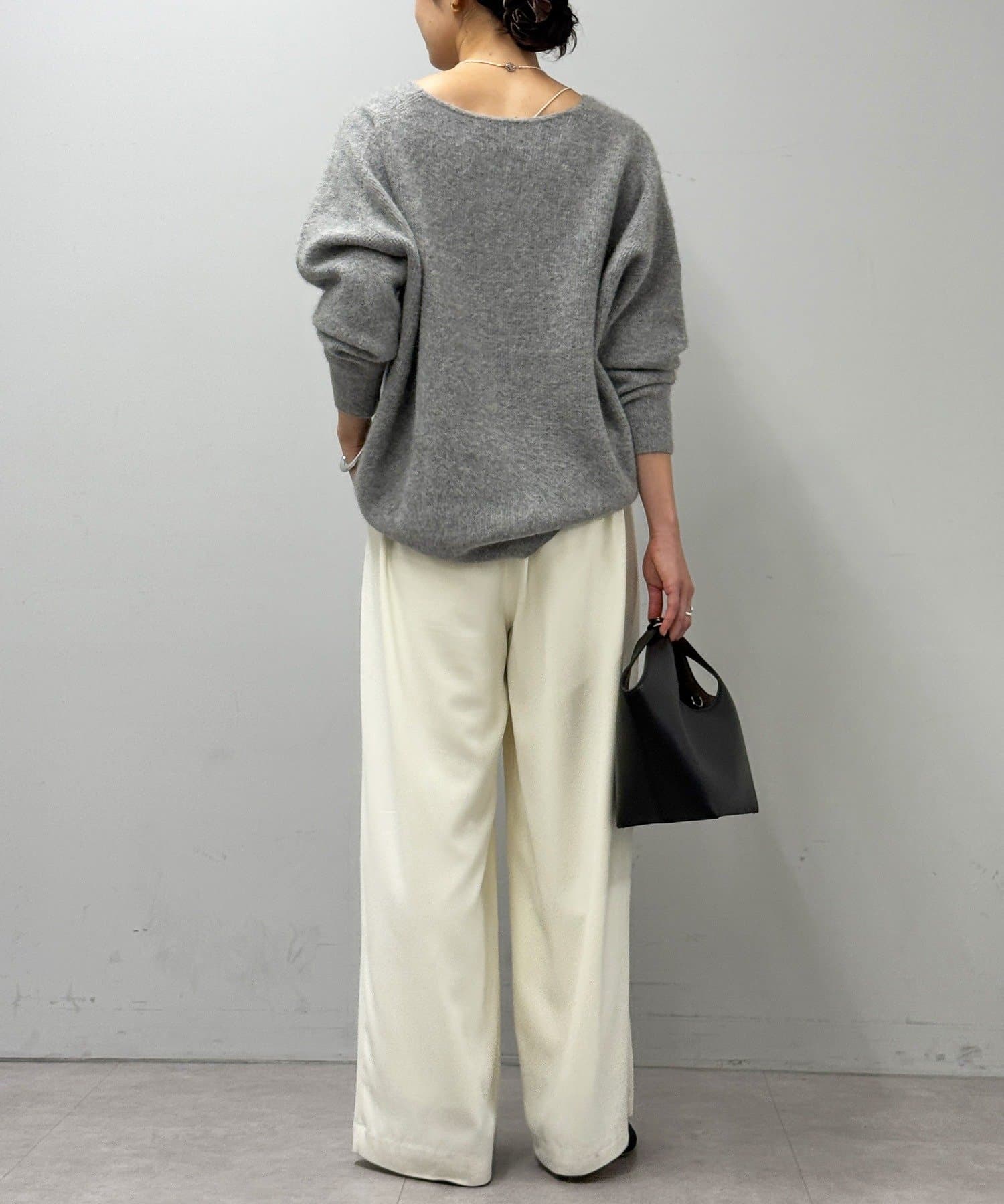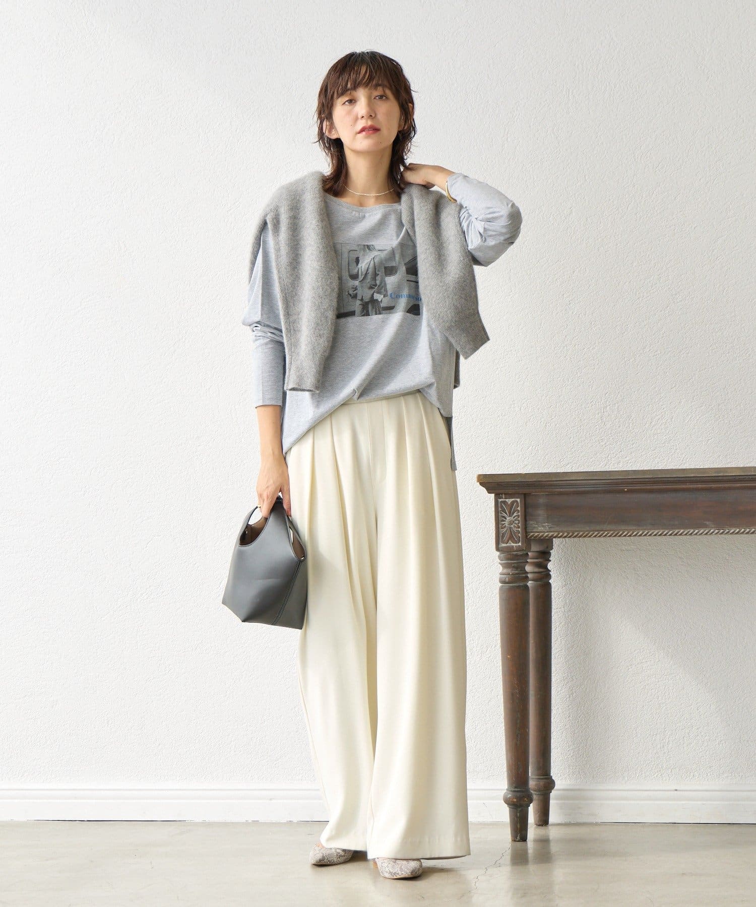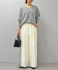 購入場所:パルクローゼットいちばん欲しかったのはグレージュだったんですが売り切れてて、でも早く欲しかったのでアイボリーを購入しました。スタッフさんがオススメするだけあって、落ち感があって本当にシルエットが素敵です。アイボリーの色味が綺麗すぎたのでグレージュを買おうか濃色のチャコールを買おうか迷っていたら、黒が登場したので迷わず黒を予約しました(笑)