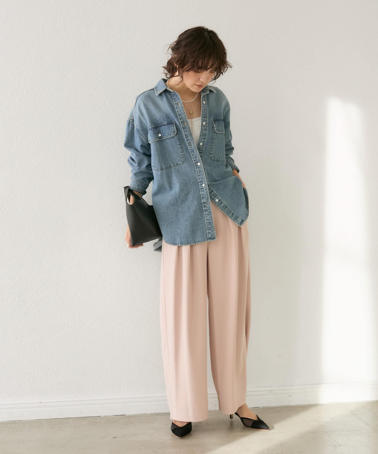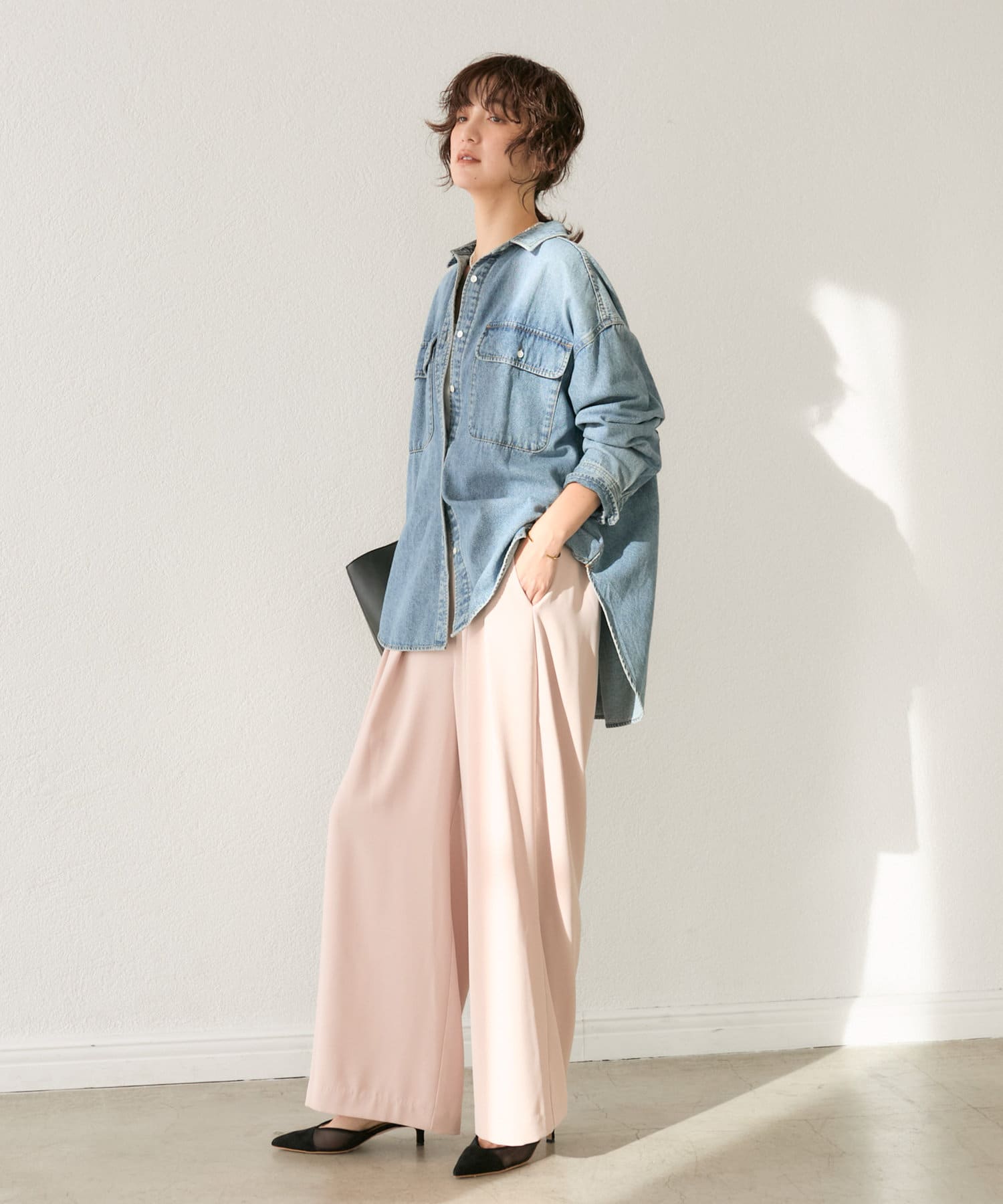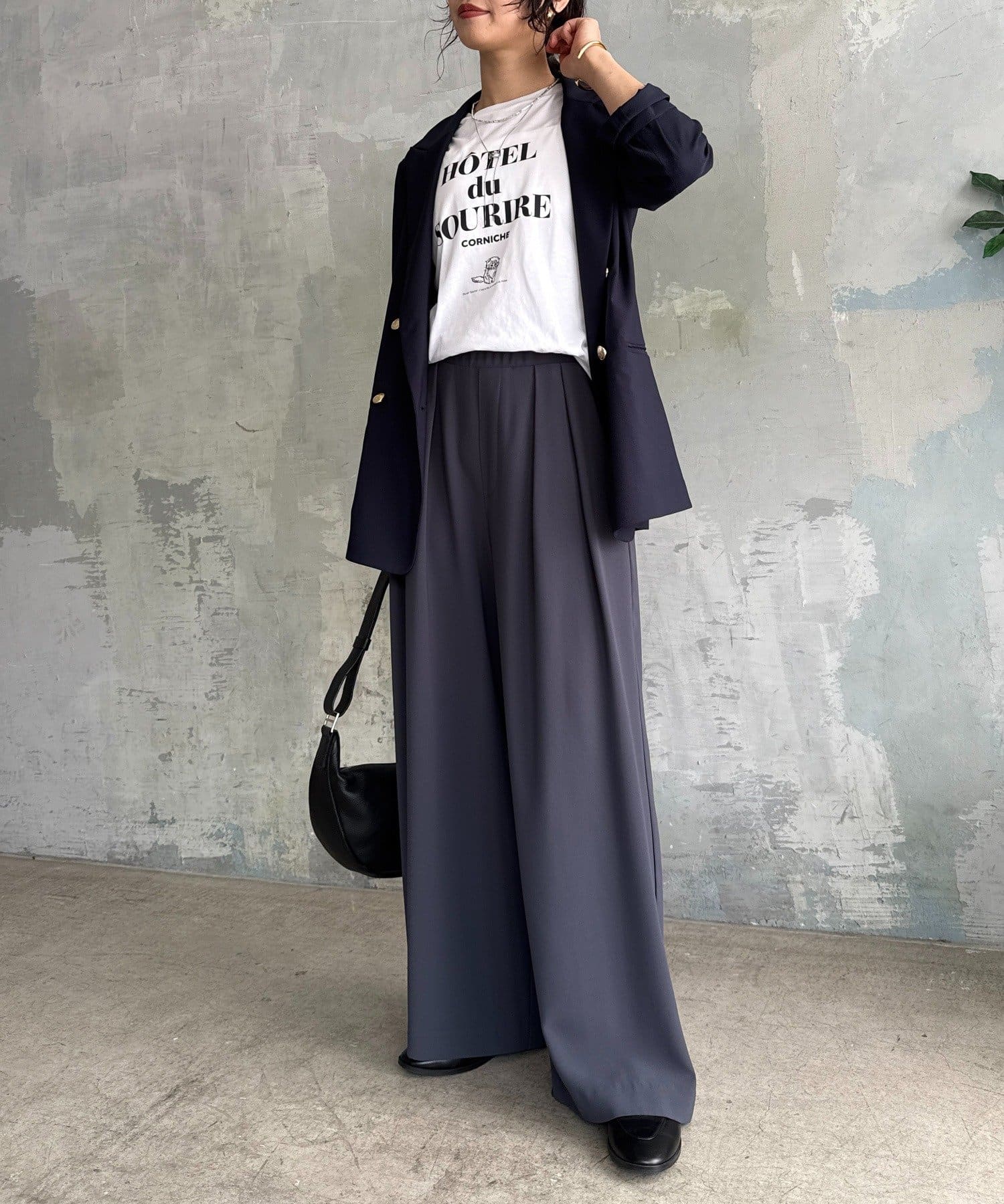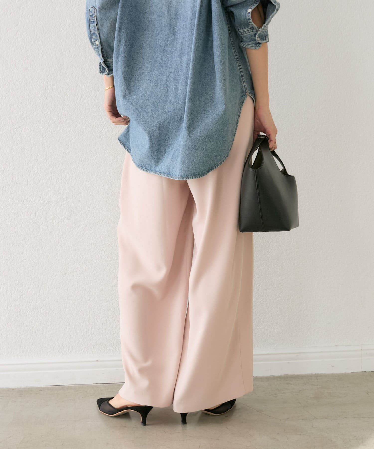 購入場所:店舗ウエストゴムで楽ちんなパンツですが、とても柔らかく揺れる素材なので綺麗めパンツとして大活躍しそうです。もちろん崩してスニーカーあわせもアリですね。