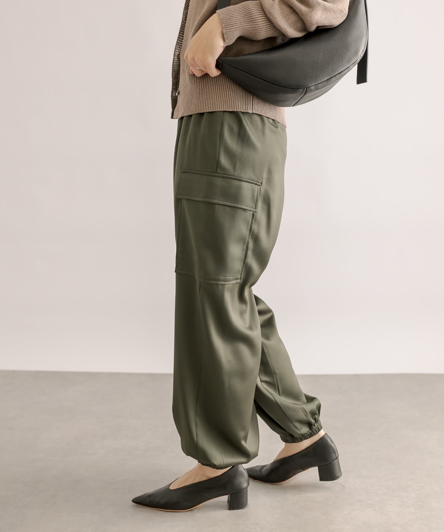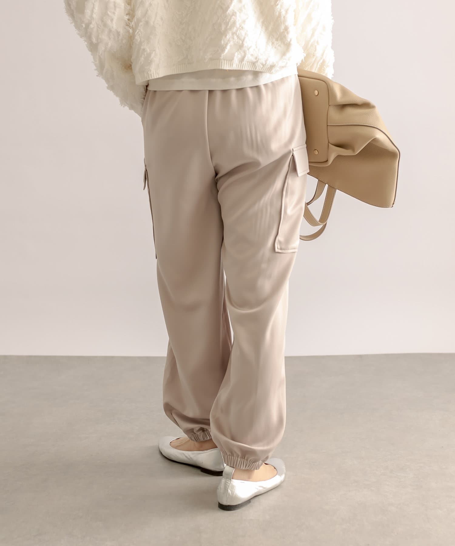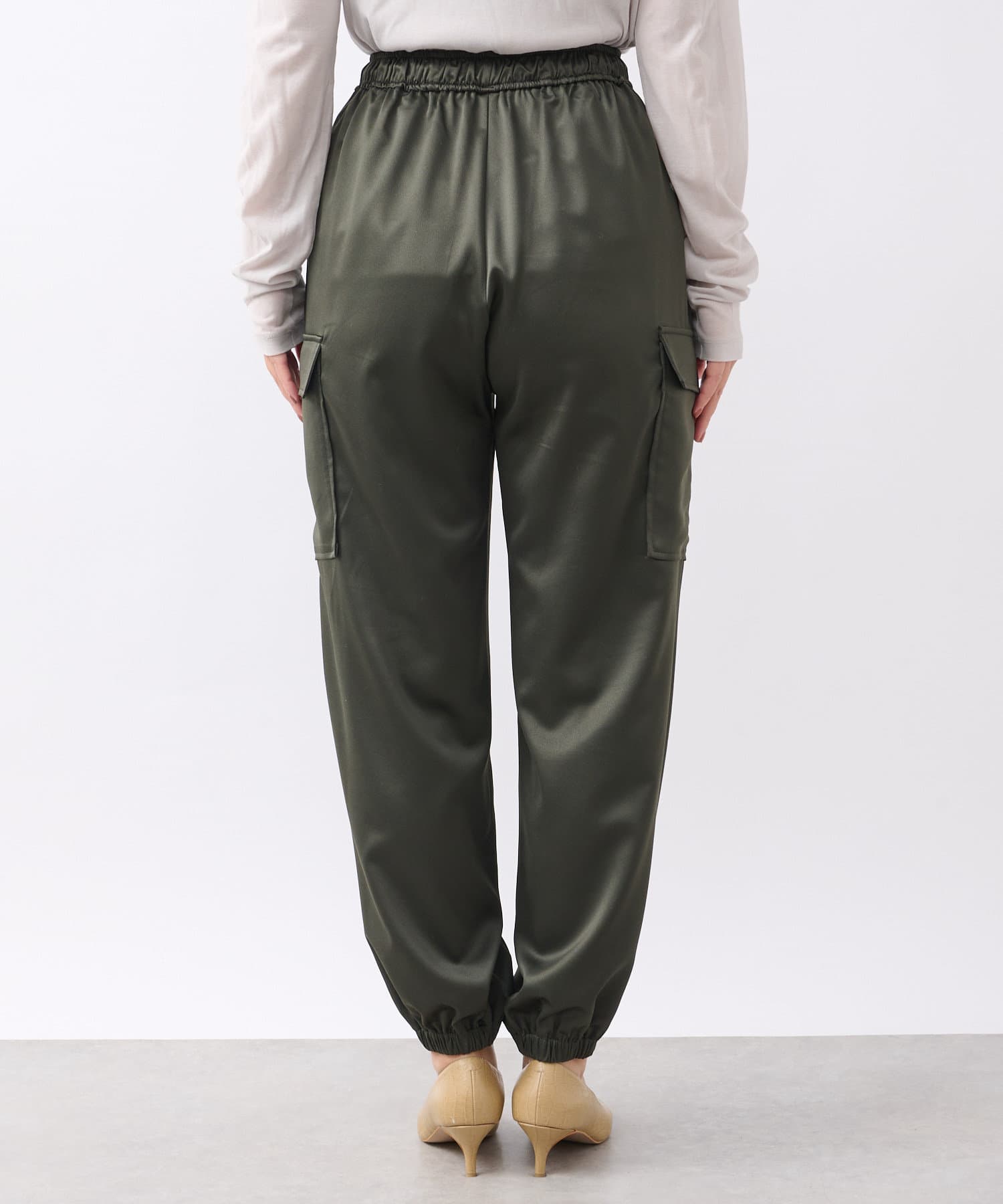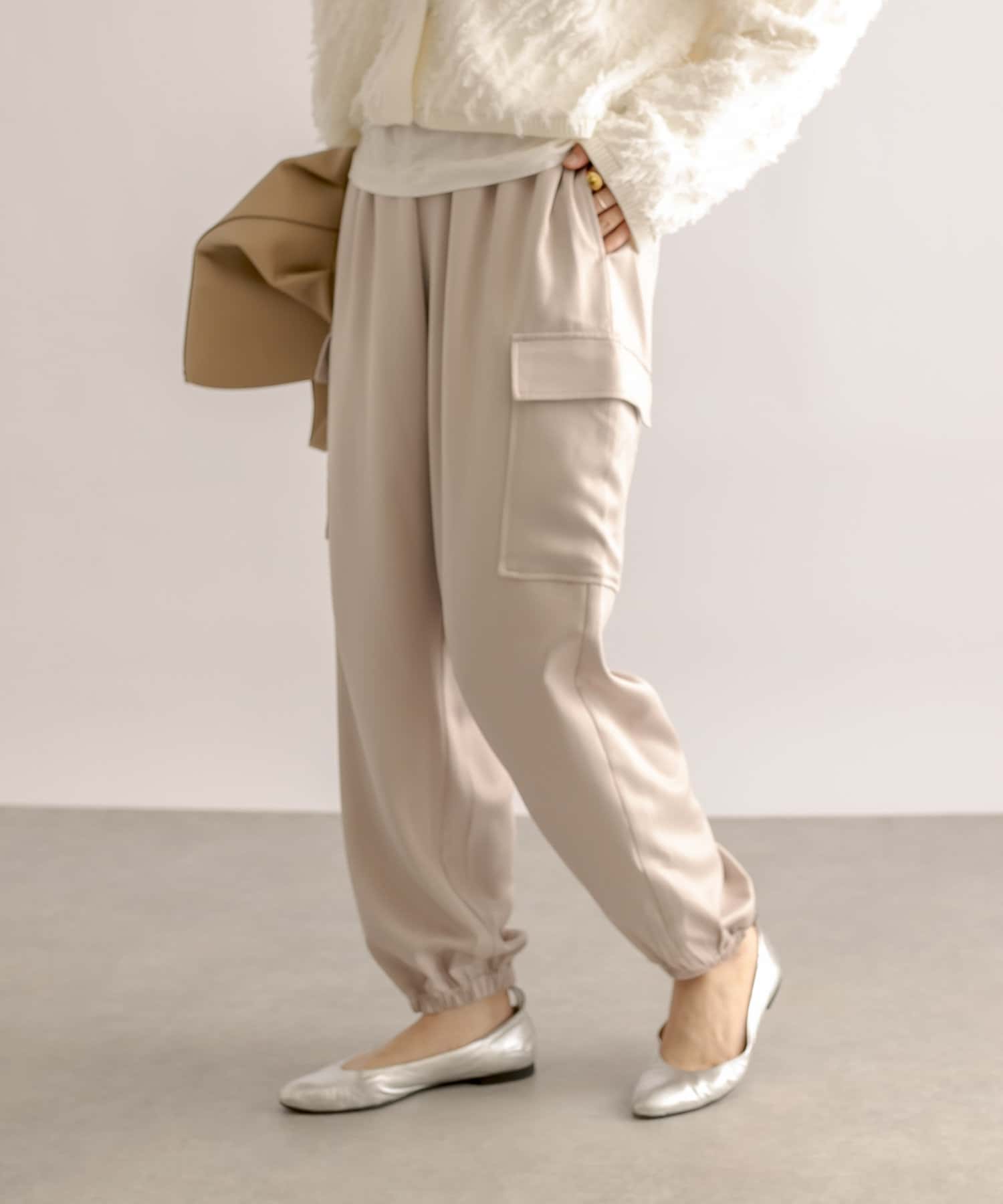 【ウエストゴム】サテンカーゴパンツ