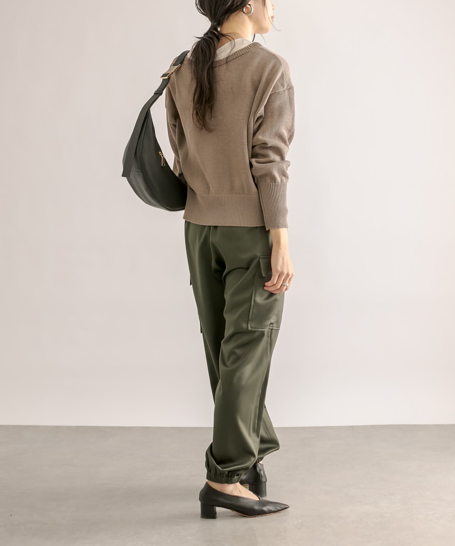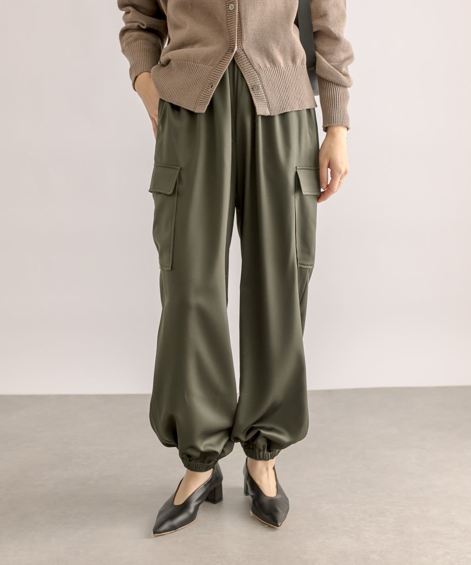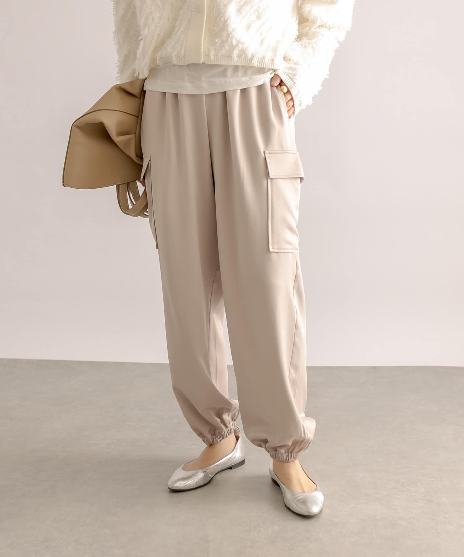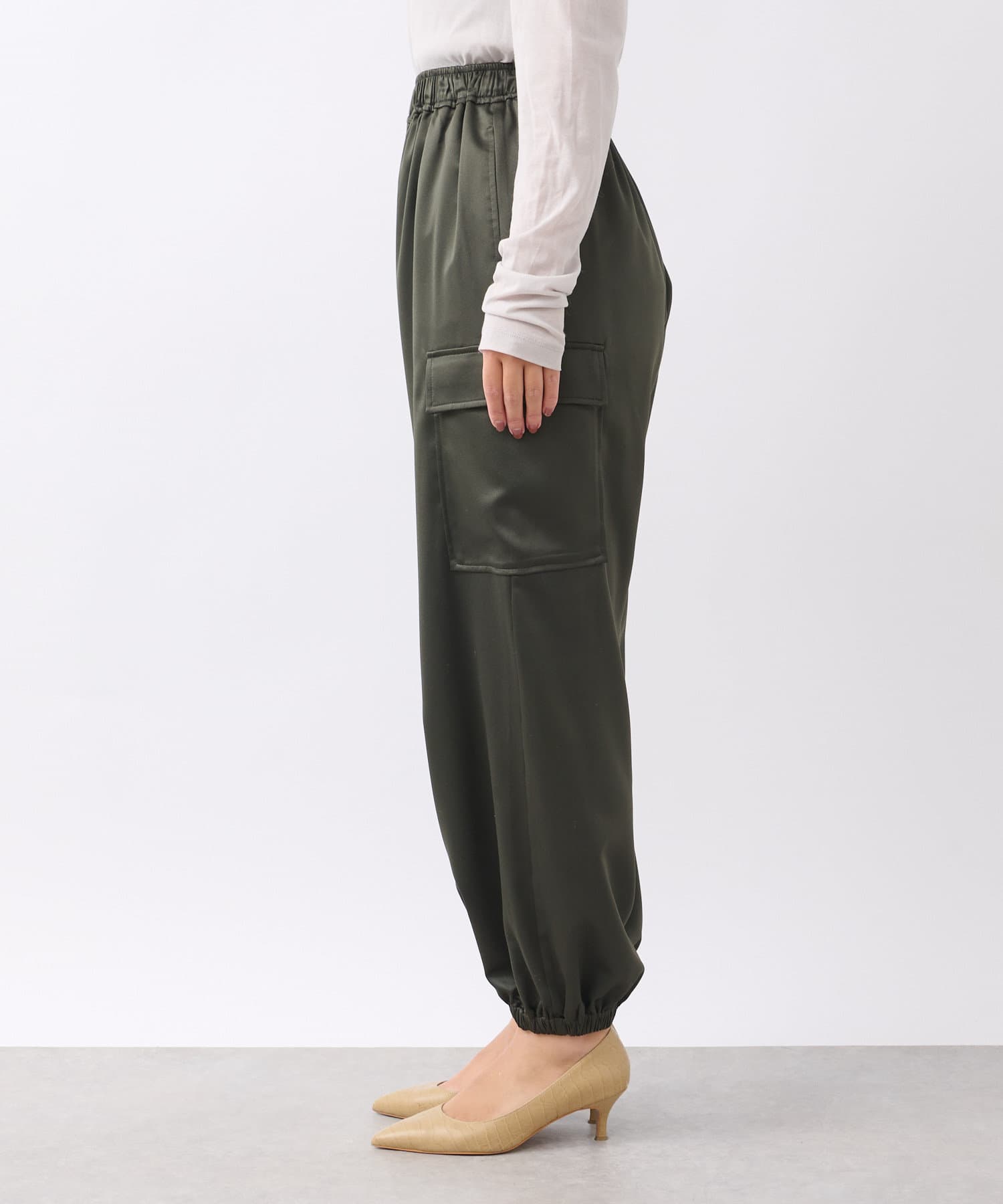 【ウエストゴム】サテンカーゴパンツ