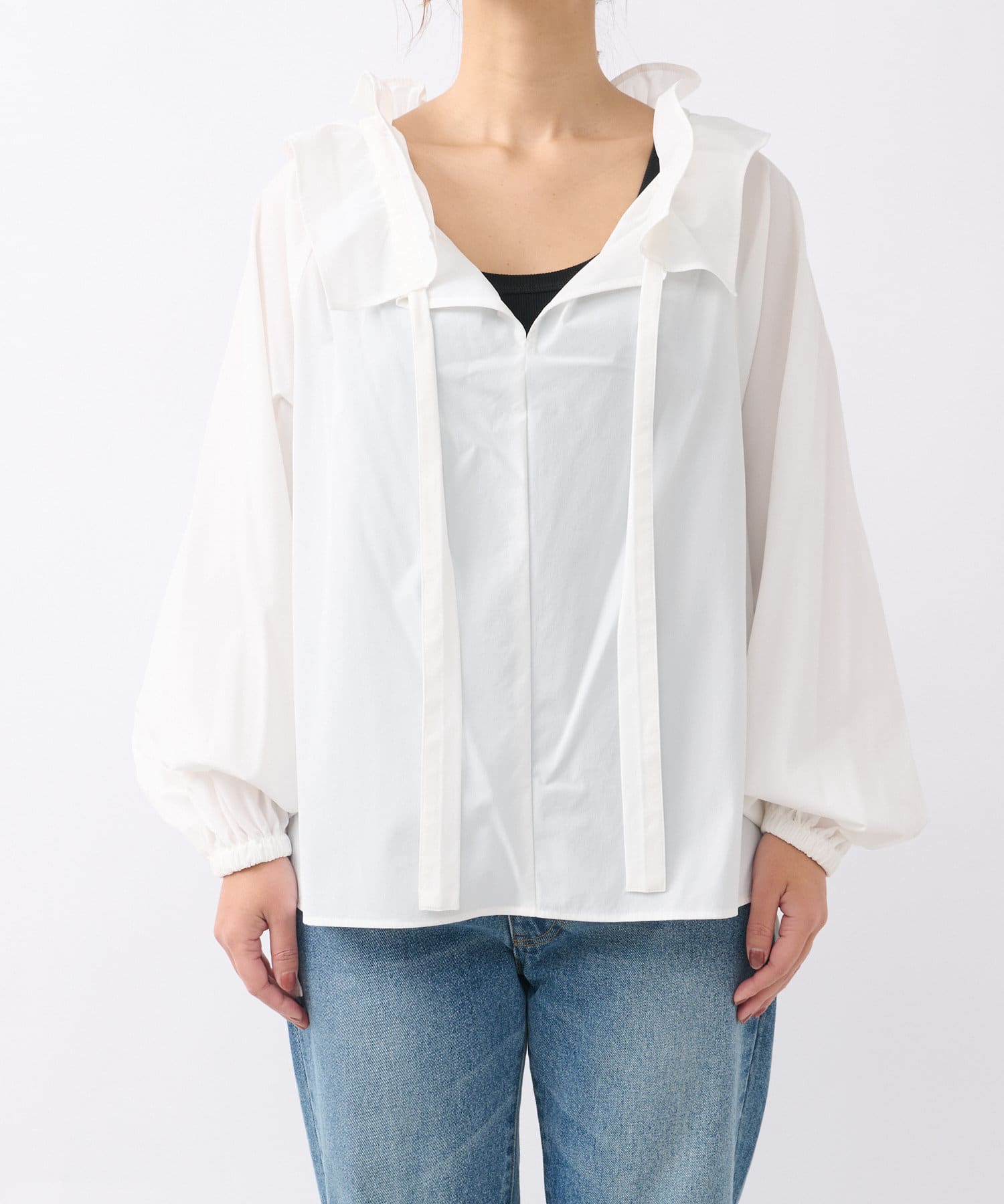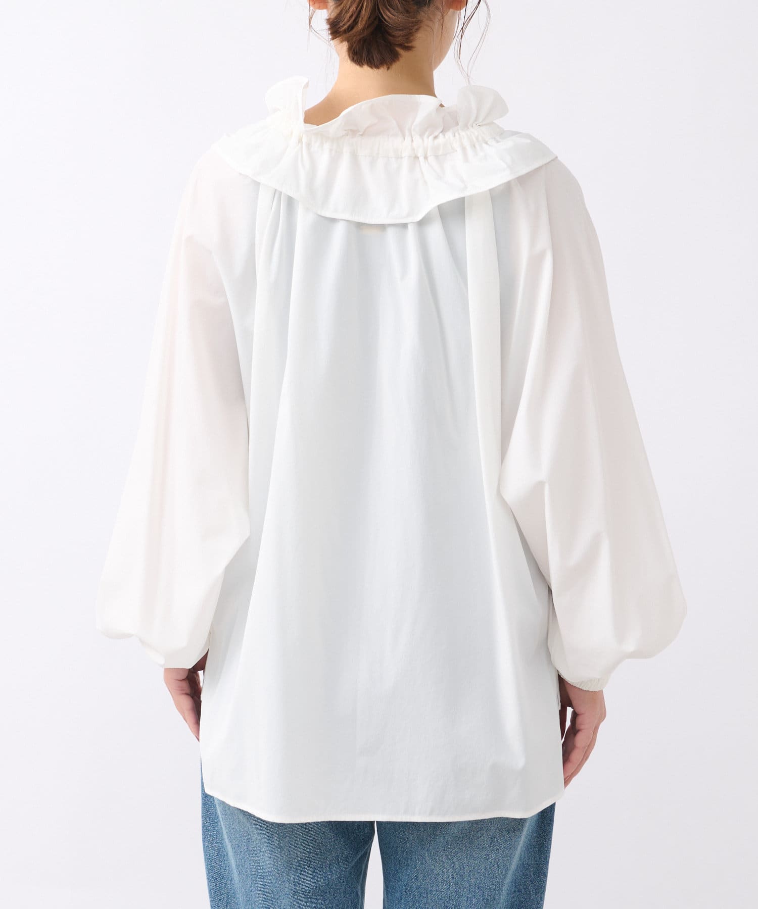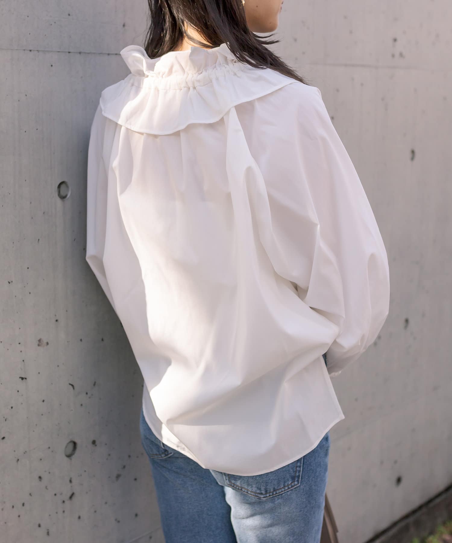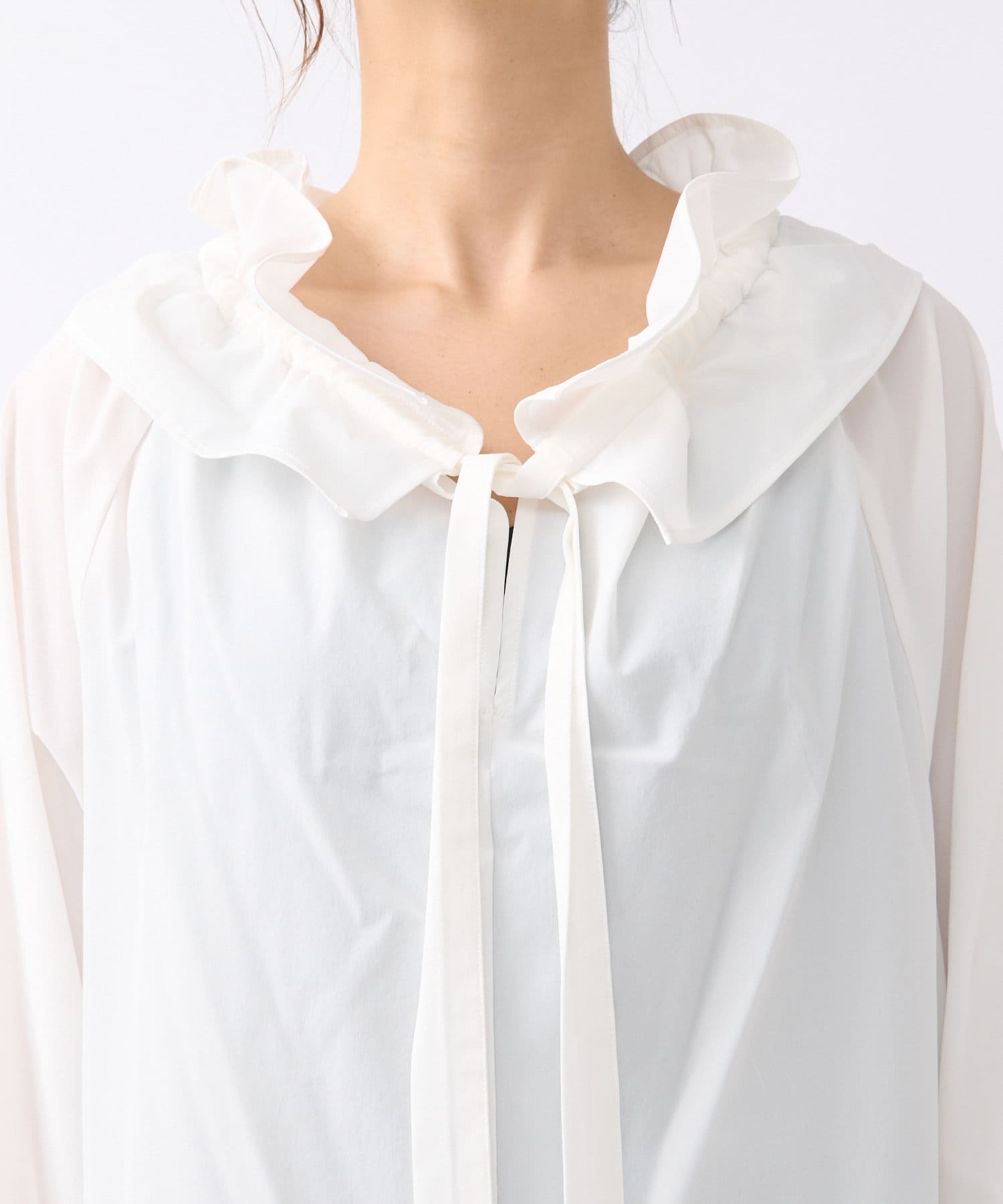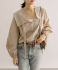 • 衿元のギャザーフリルがポイントのブラウス