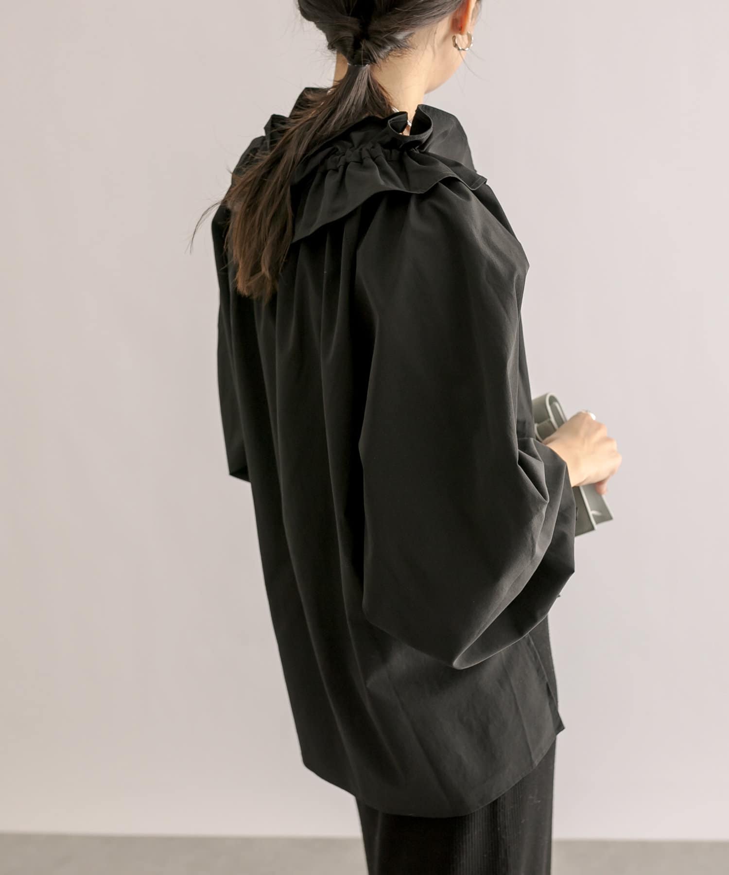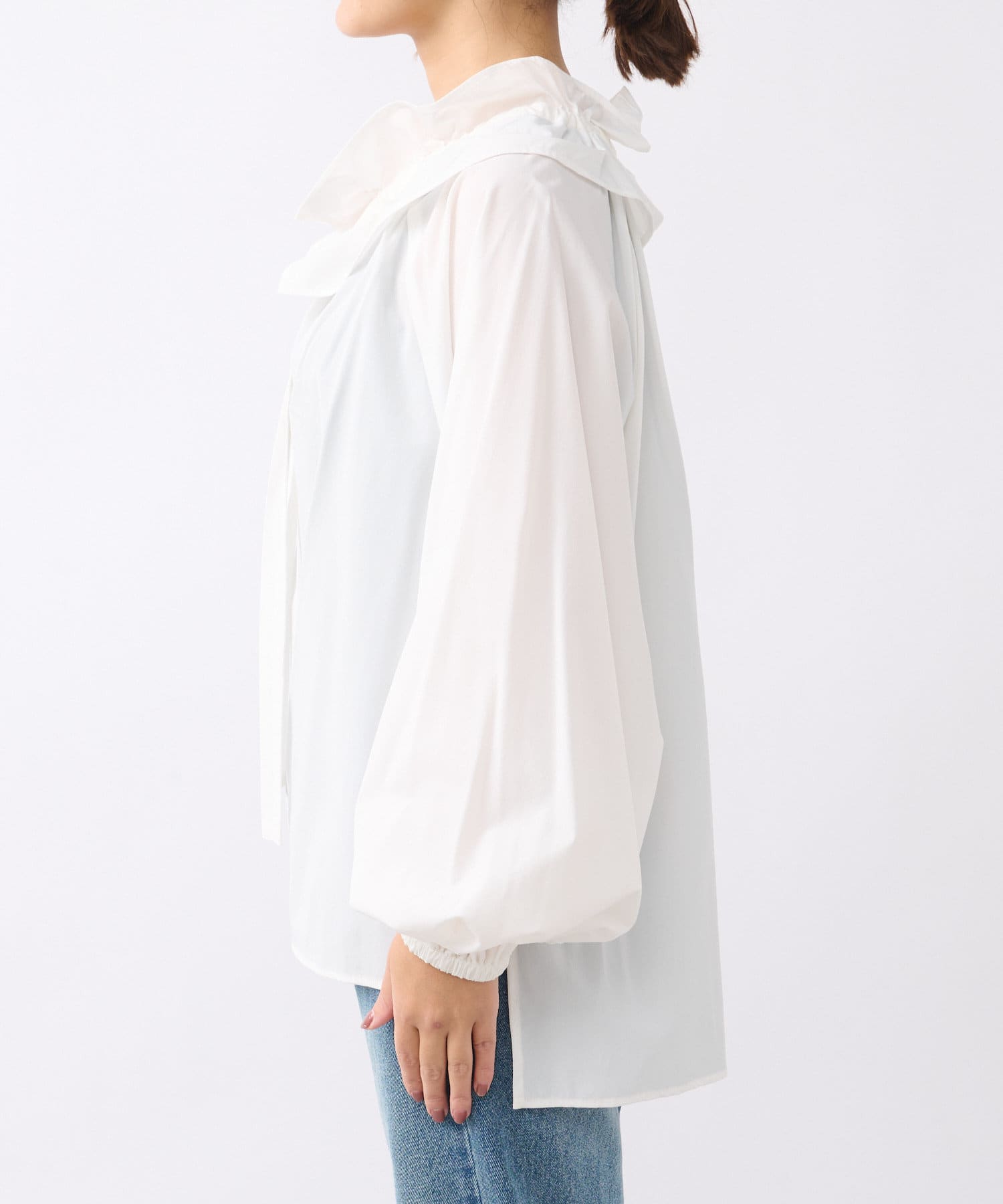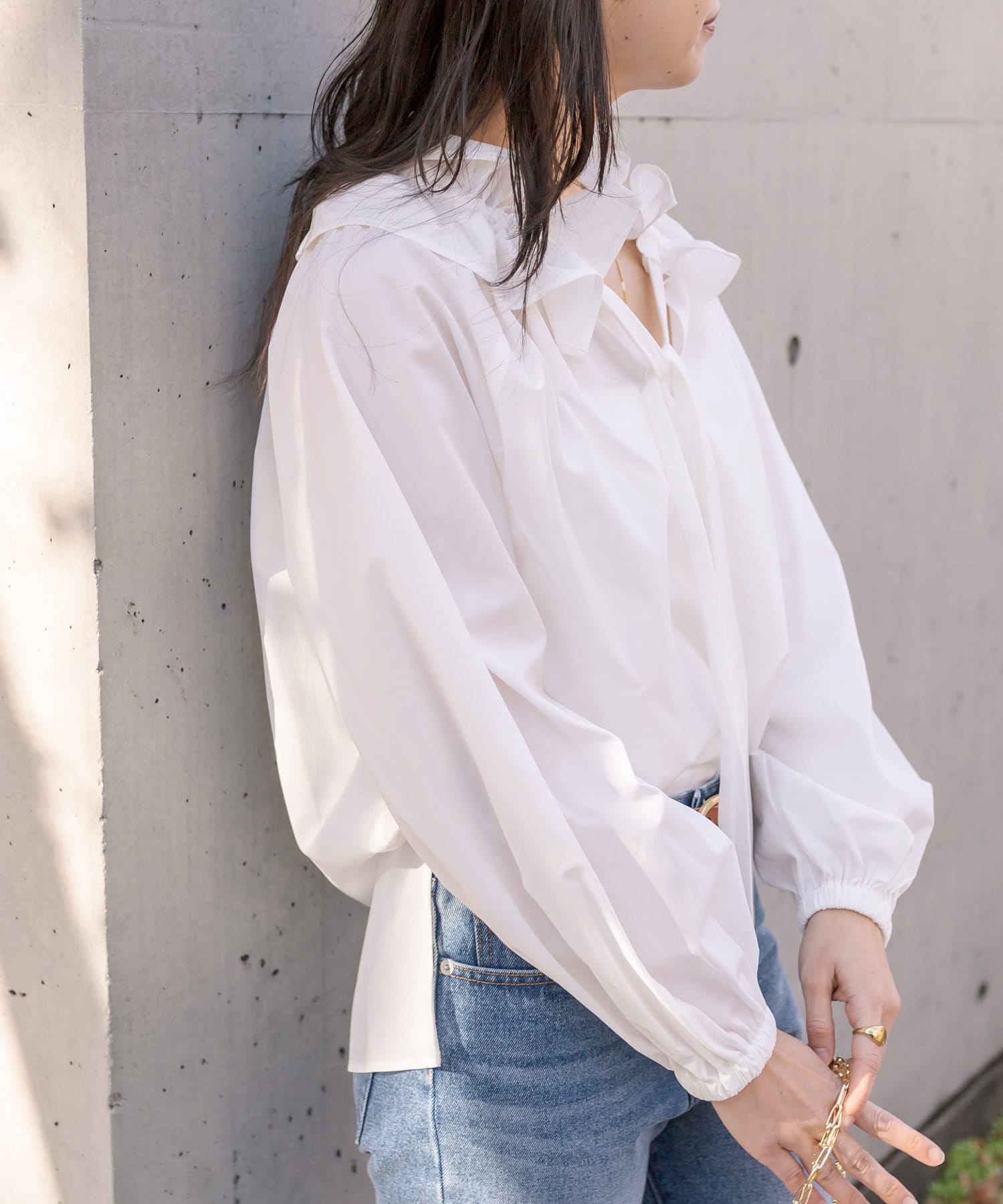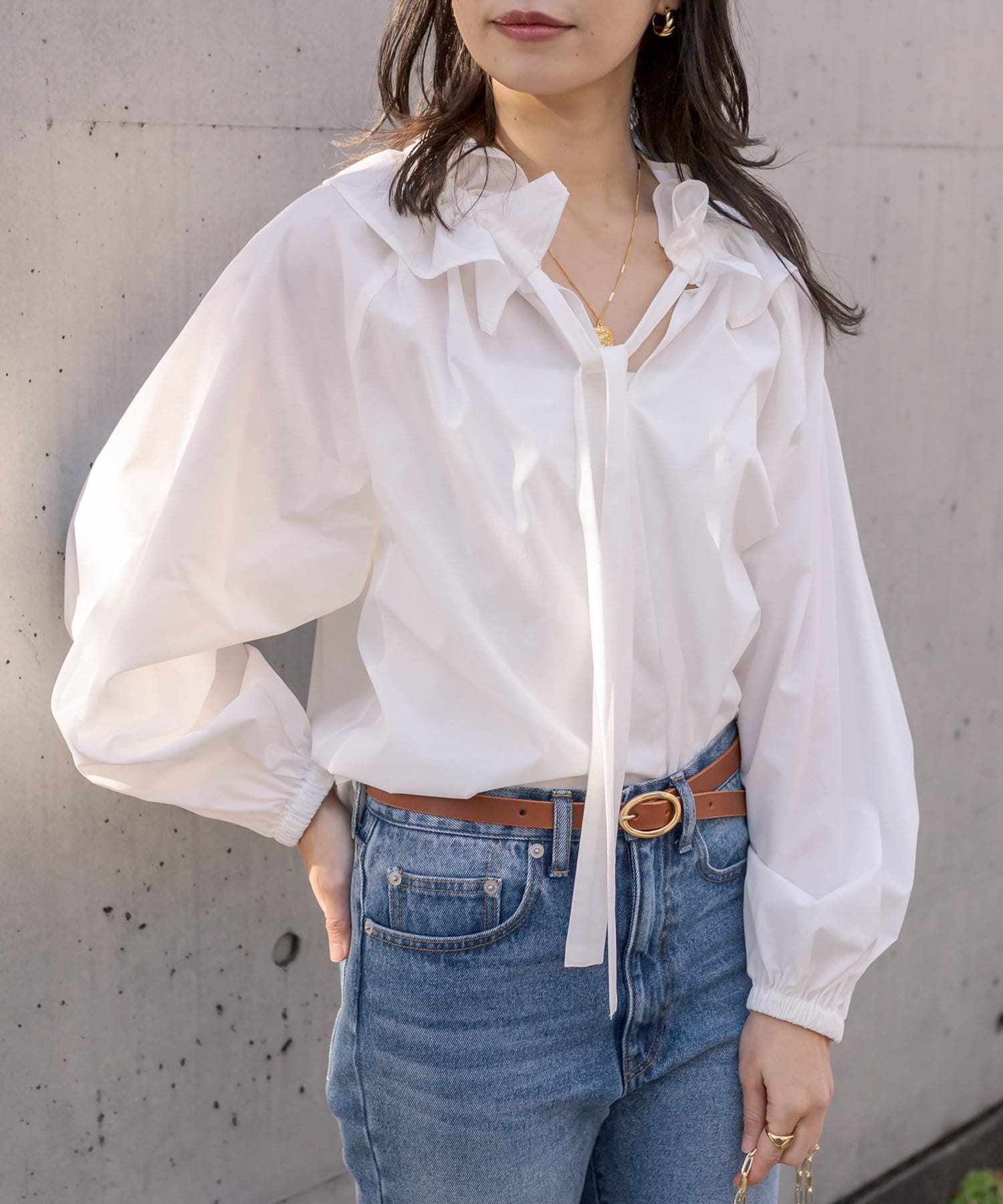 • 衿元のギャザーフリルがポイントのブラウス