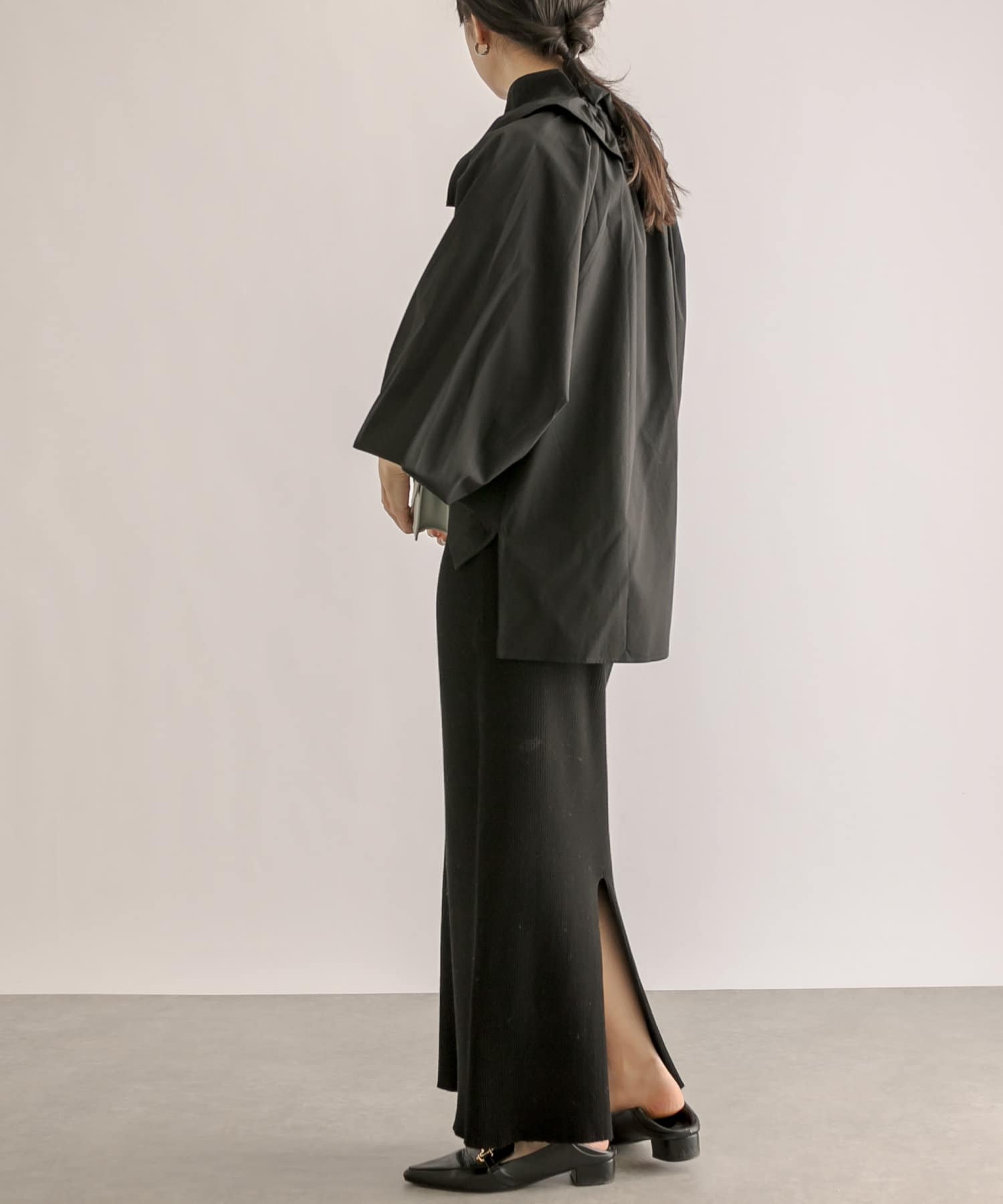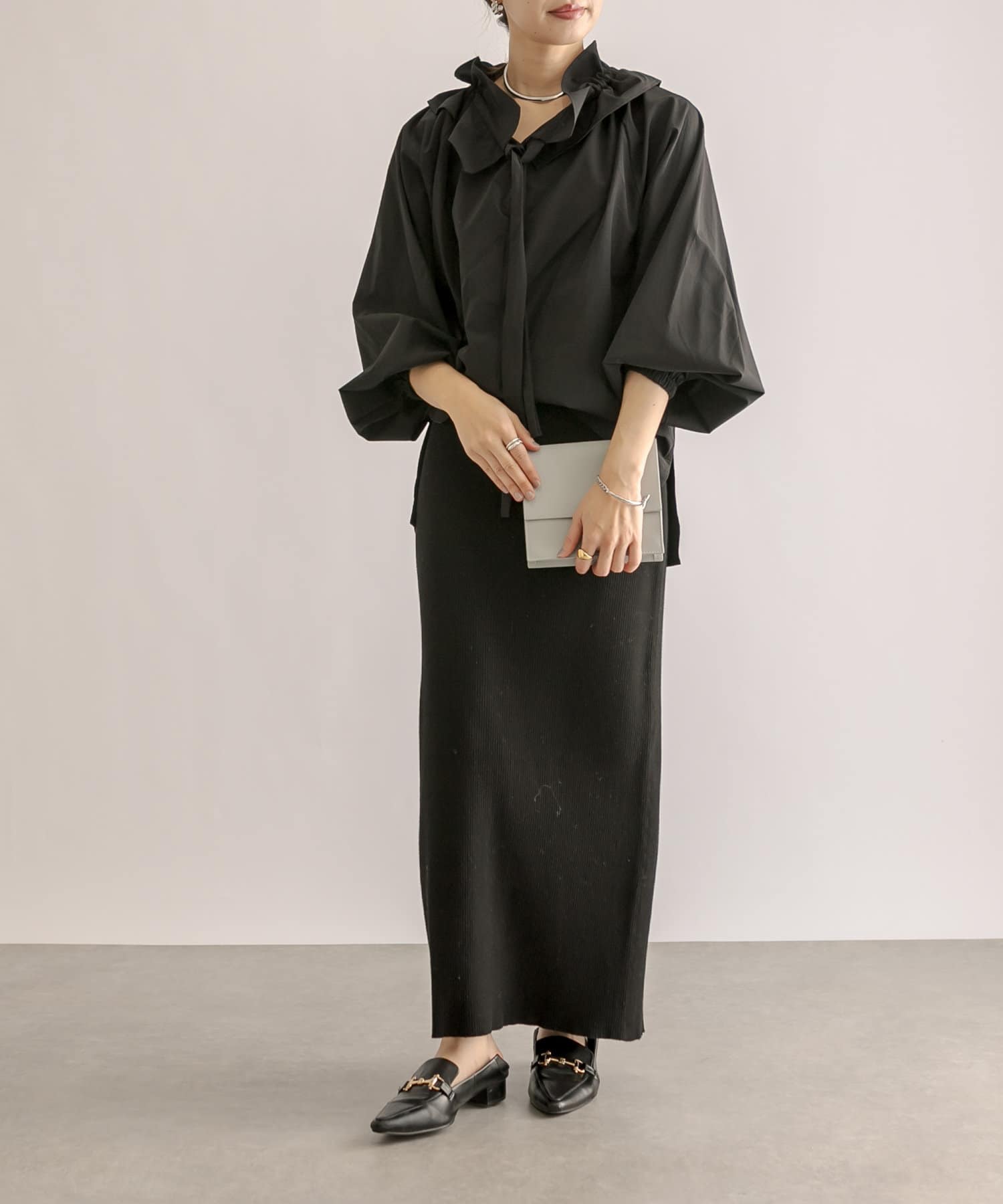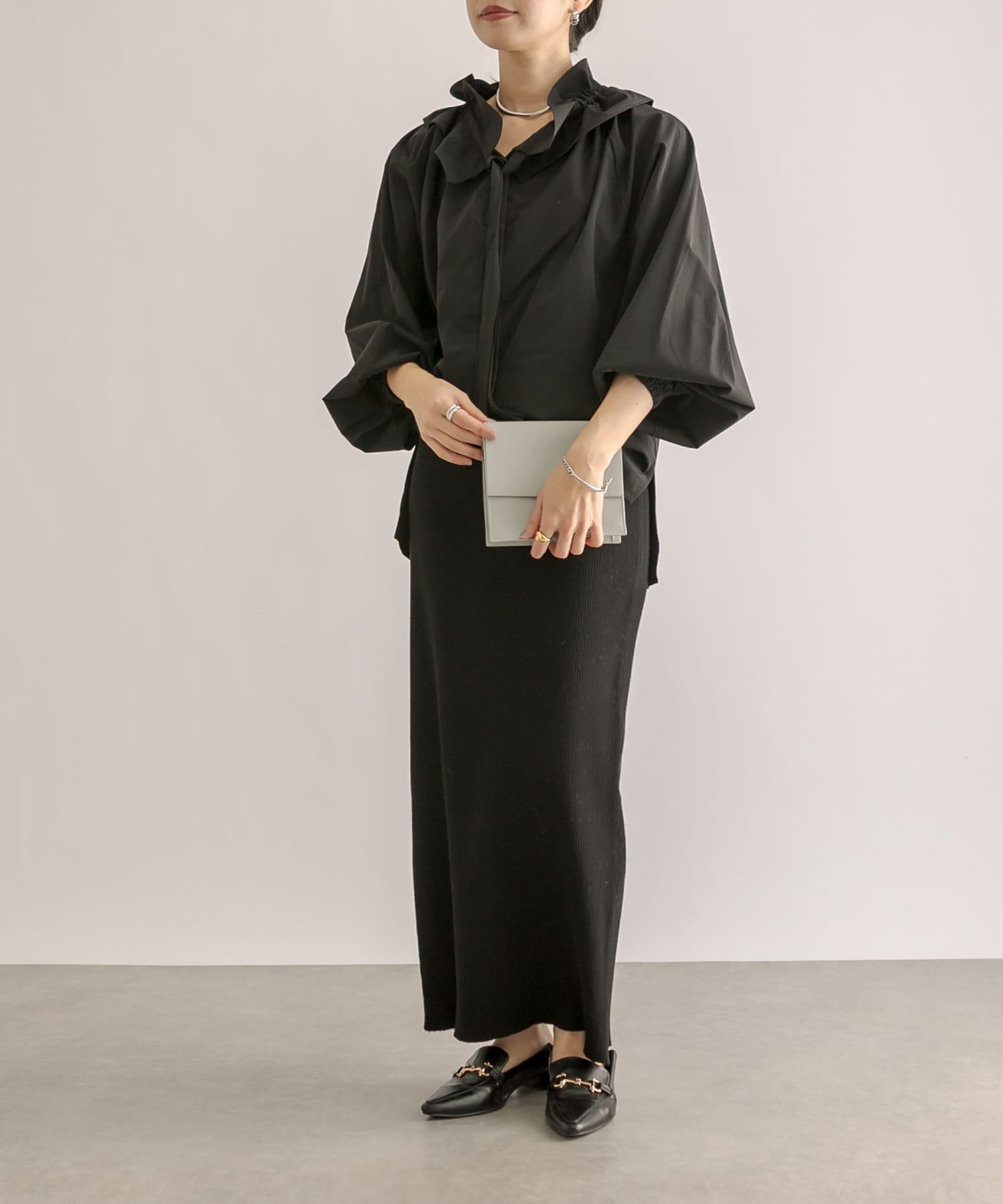 今年はよりトレンド感のあるボリュームスリーブに。軽い素材感でバランスよく着て頂けます。
