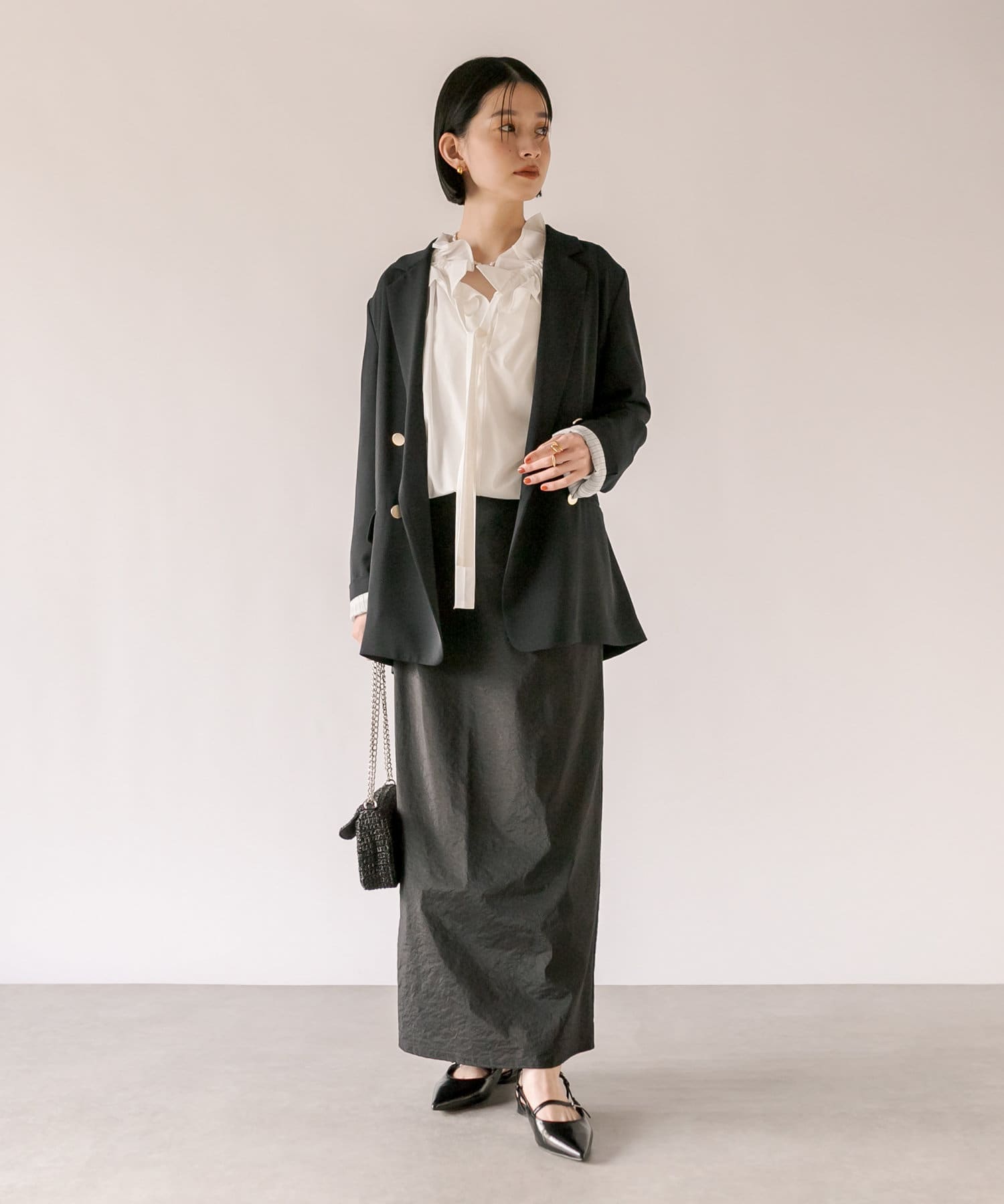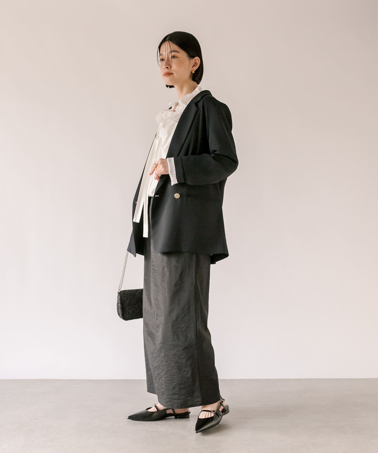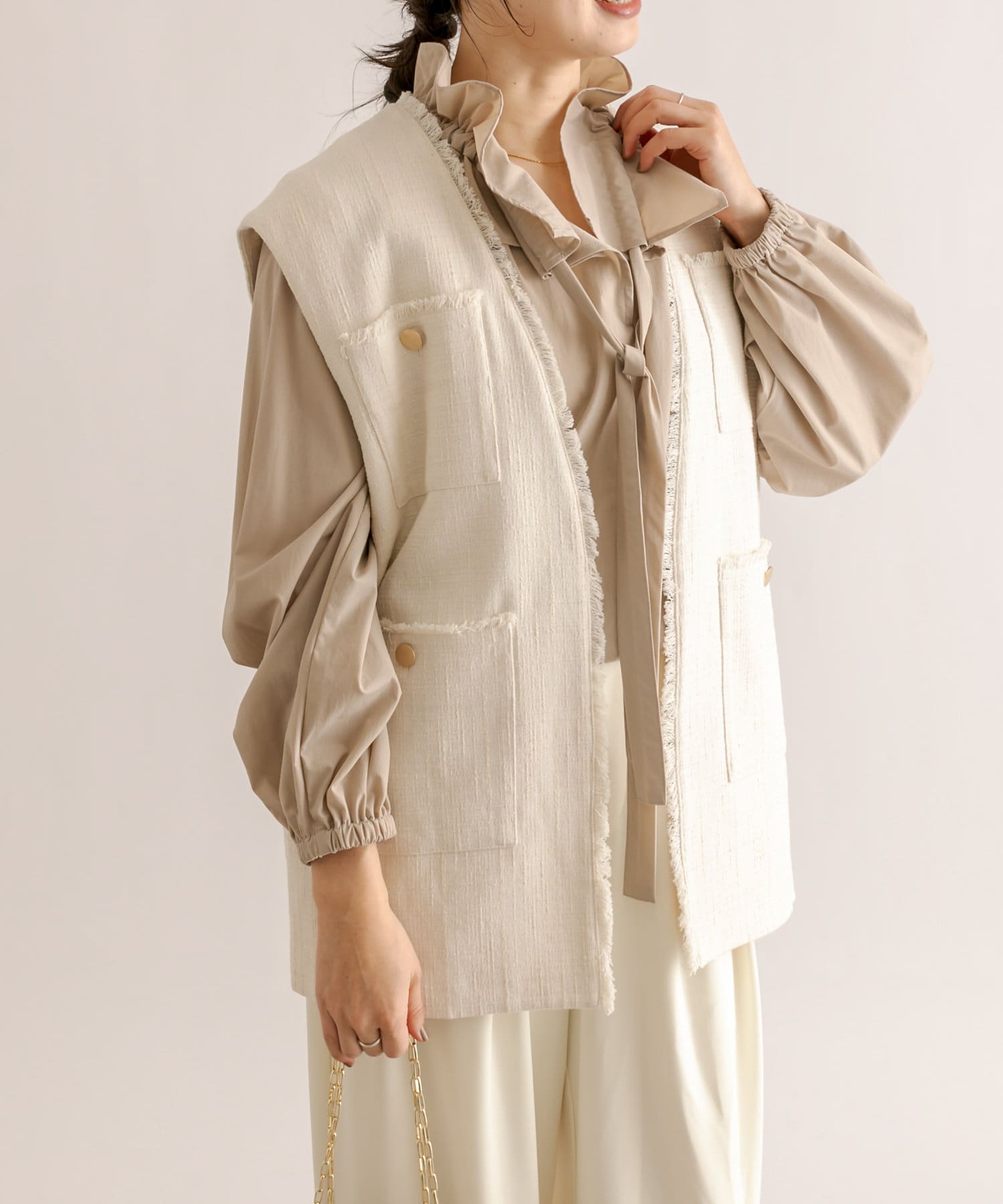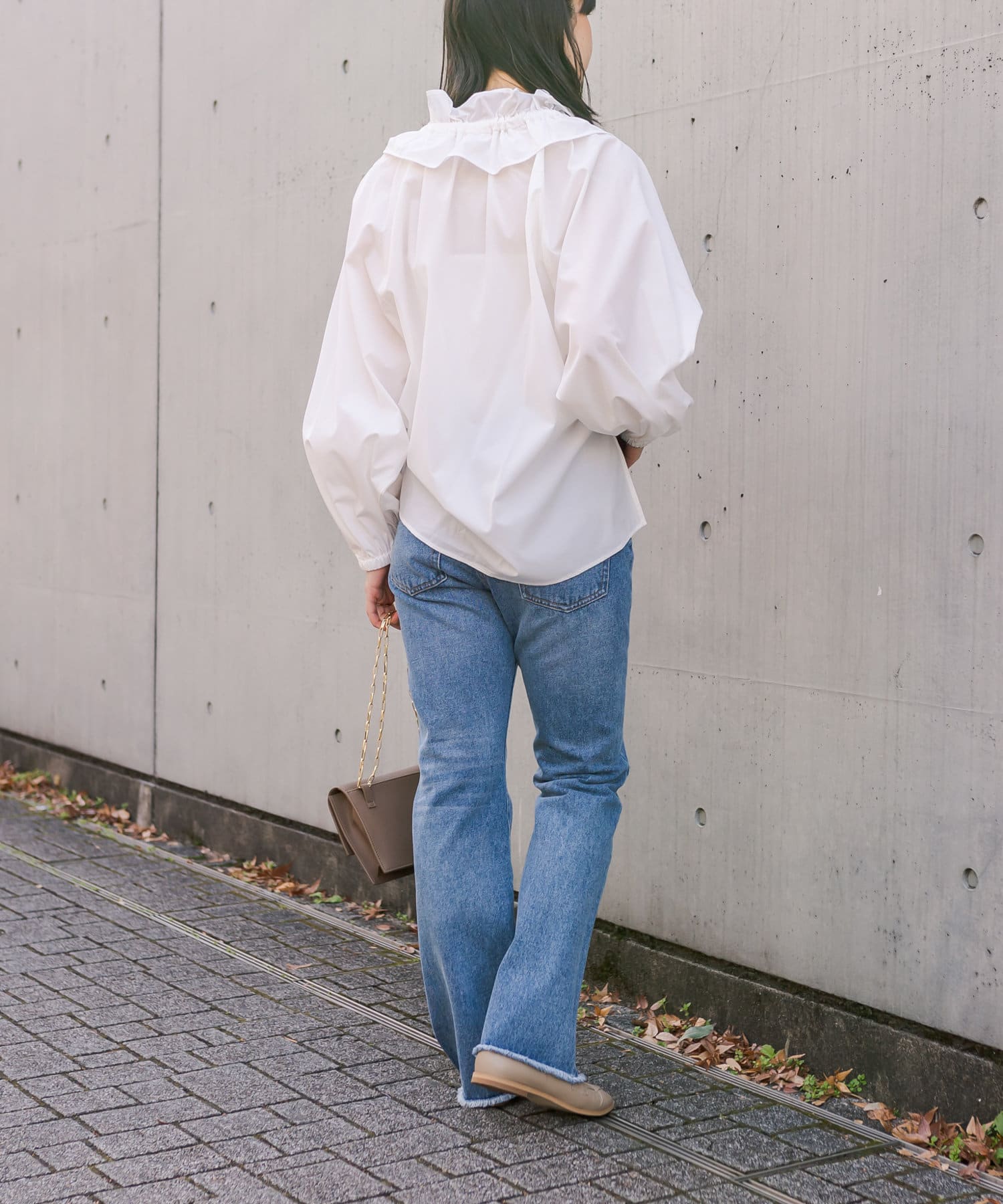 今年はよりトレンド感のあるボリュームスリーブに。軽い素材感でバランスよく着て頂けます。