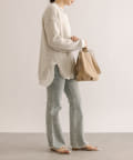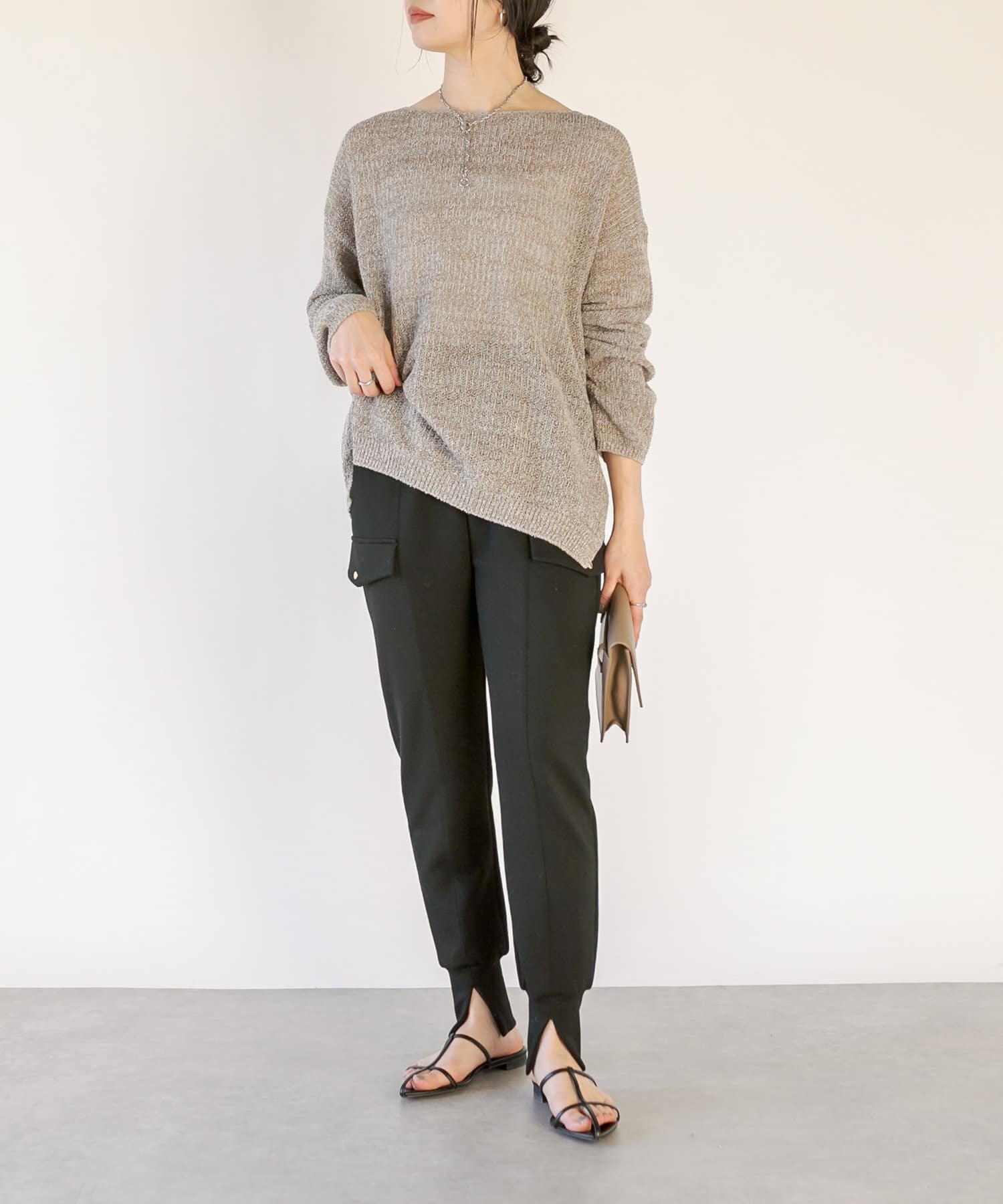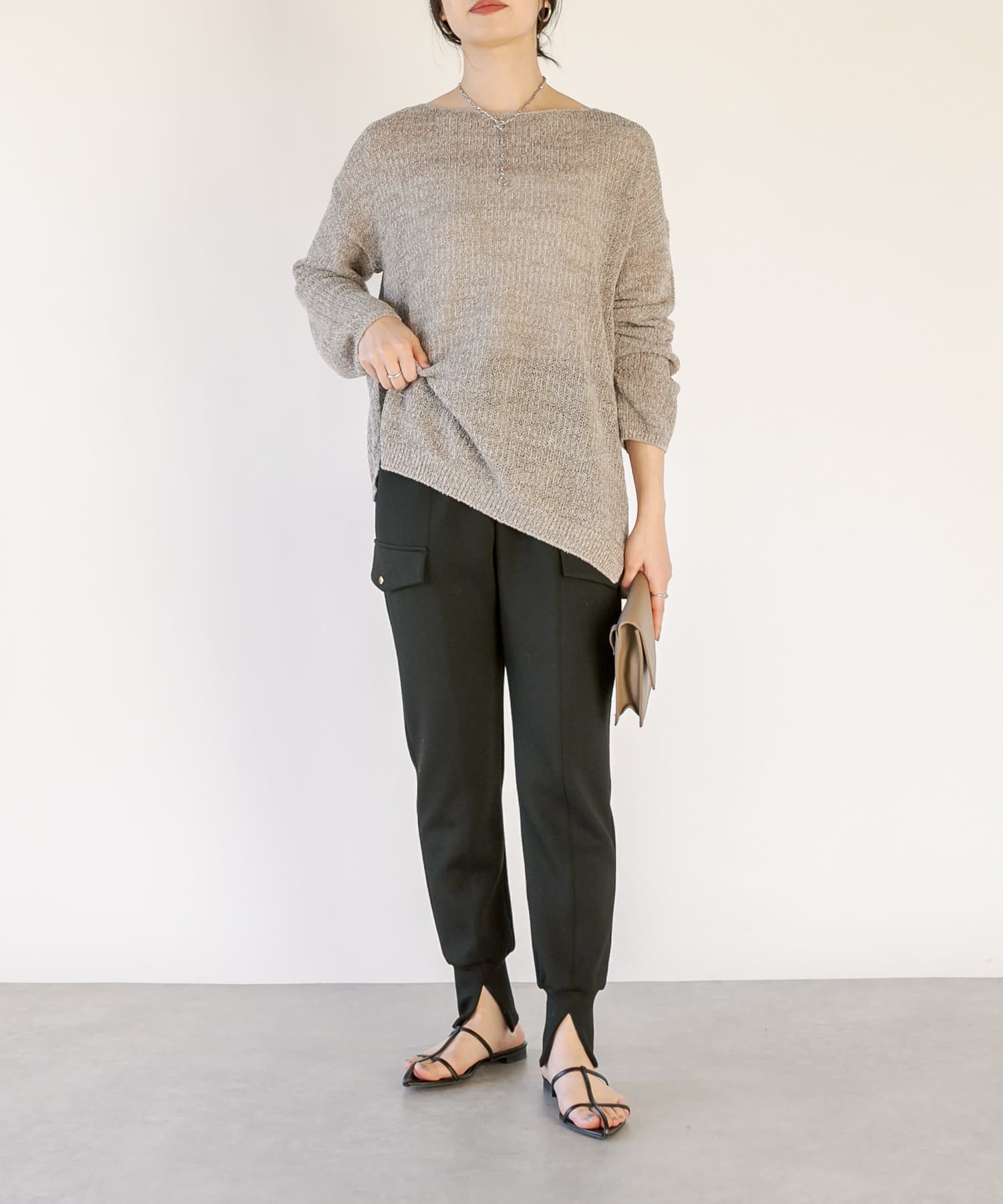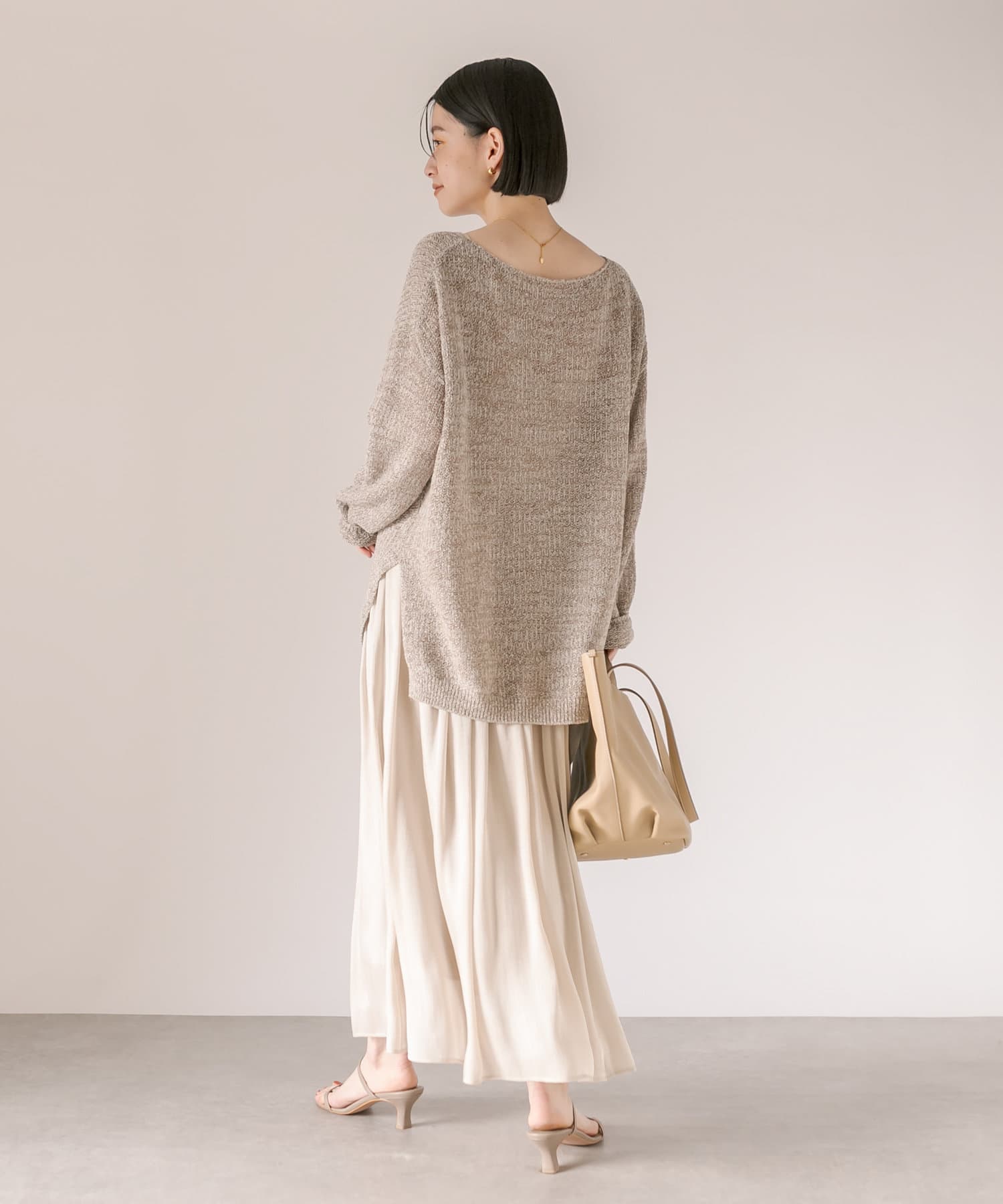 肌寒い日には薄手のタートルネックやカットソーを、暖かくなったらタンクトップやキャミソールをインしてと、ロングシーズン活躍。