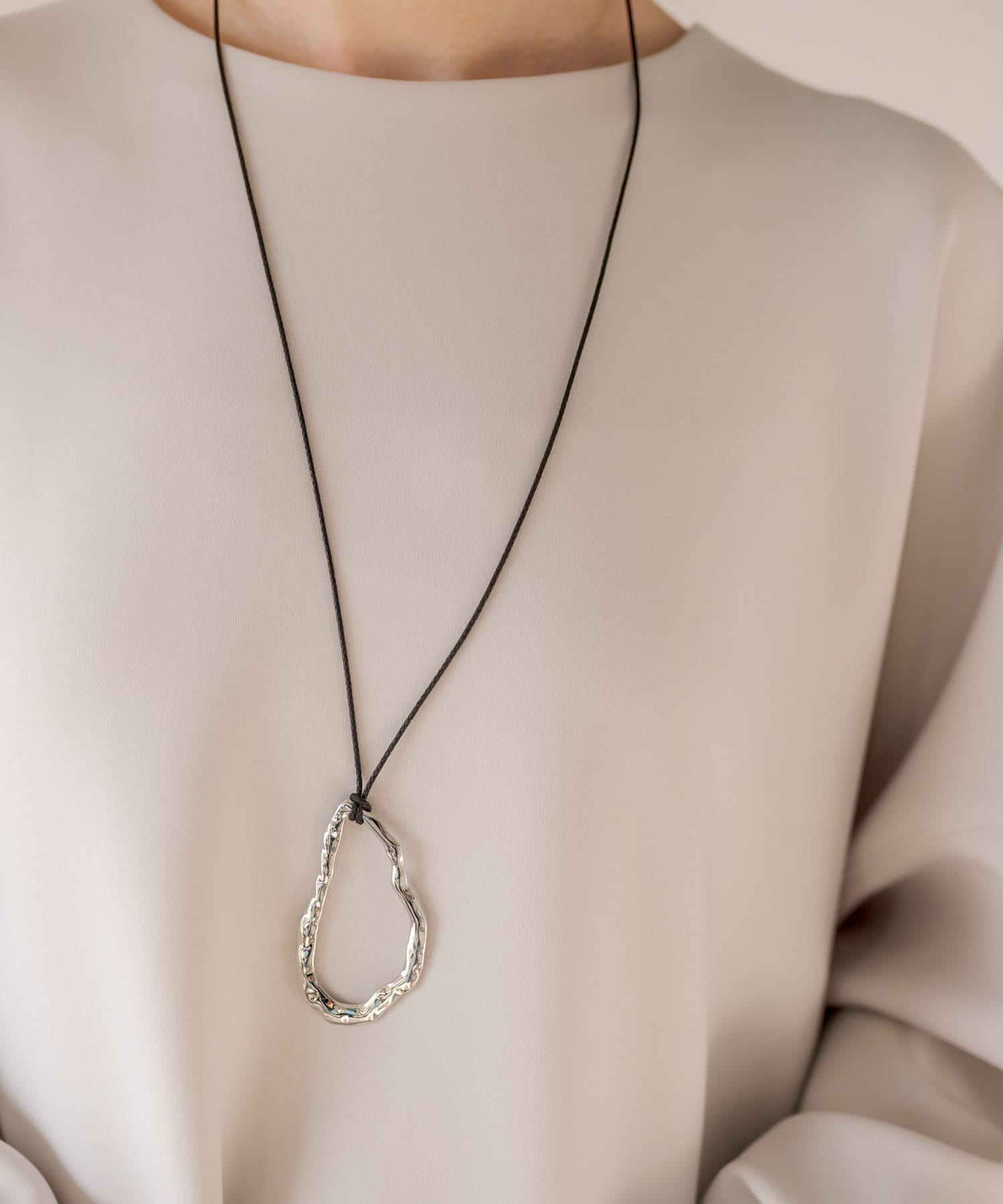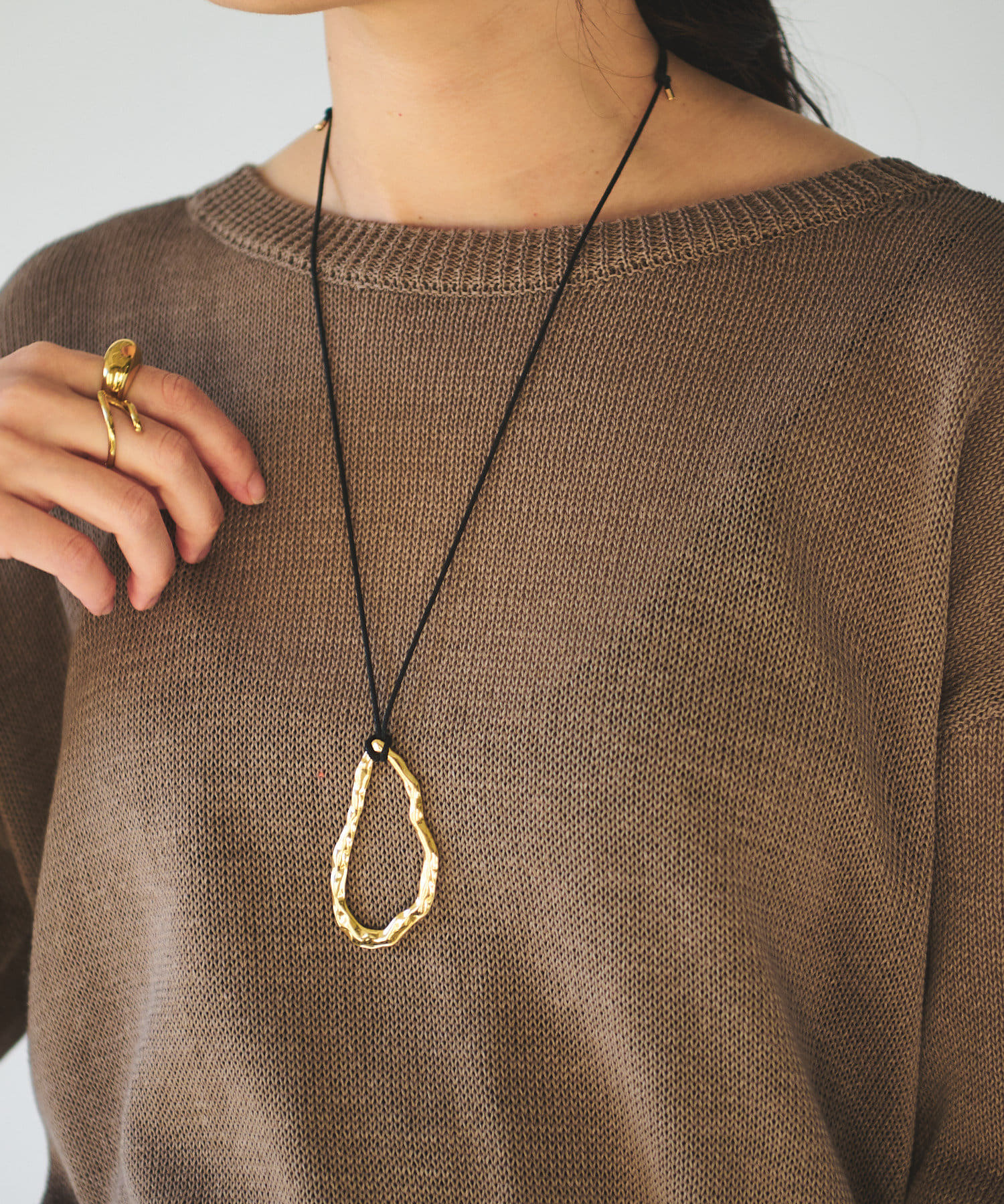 シンプルなデザインながら存在感のあるモチーフで、スタイリングのポイントになるネックレス。