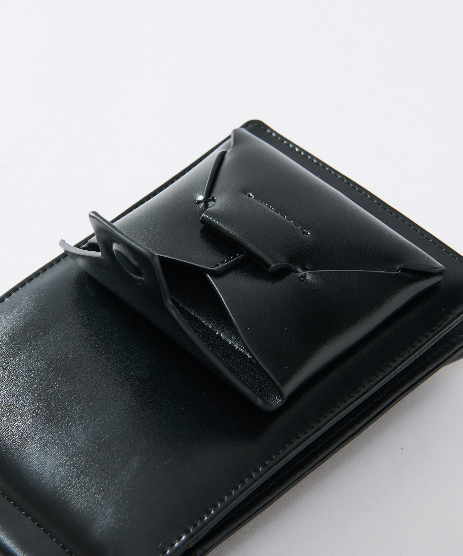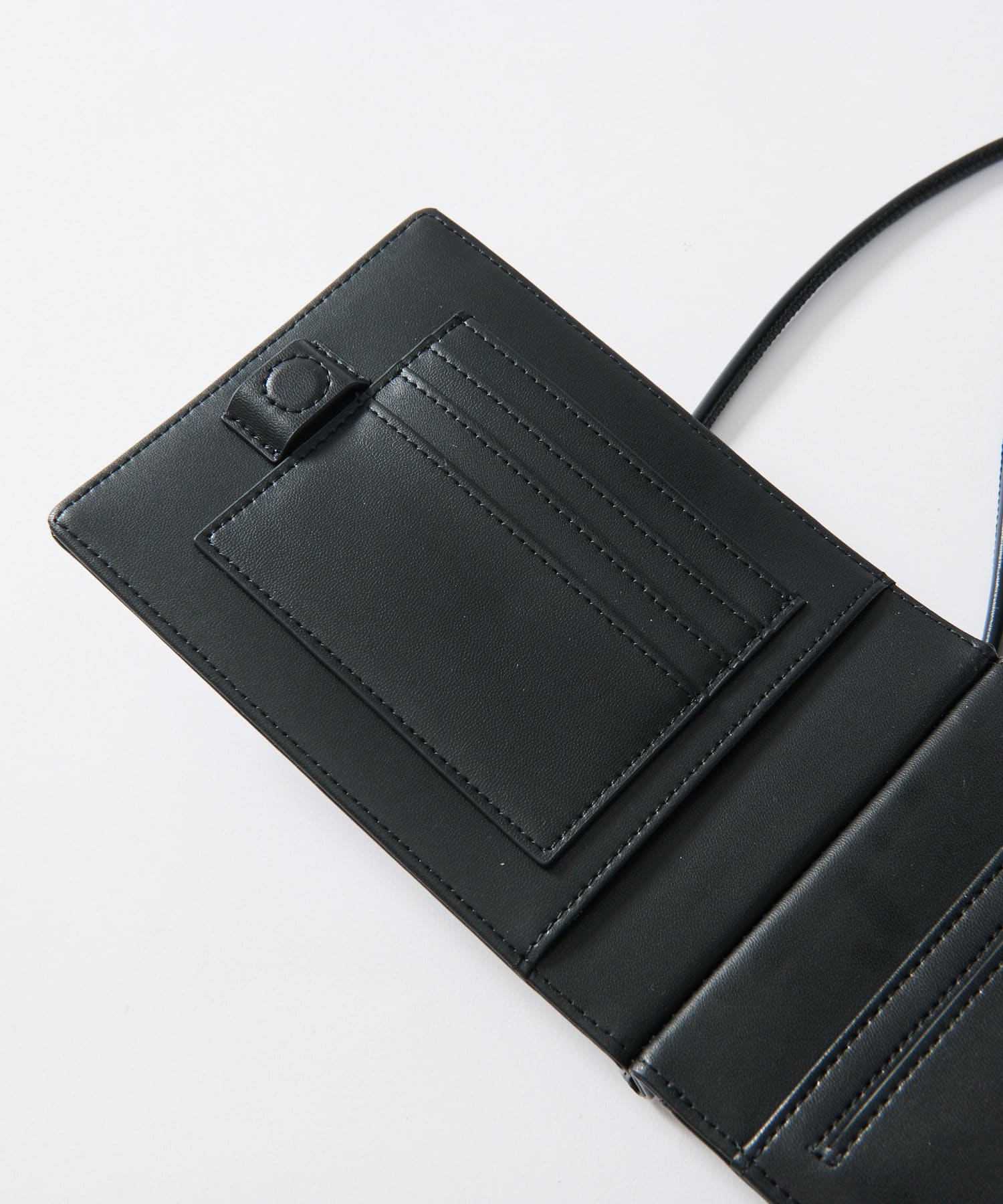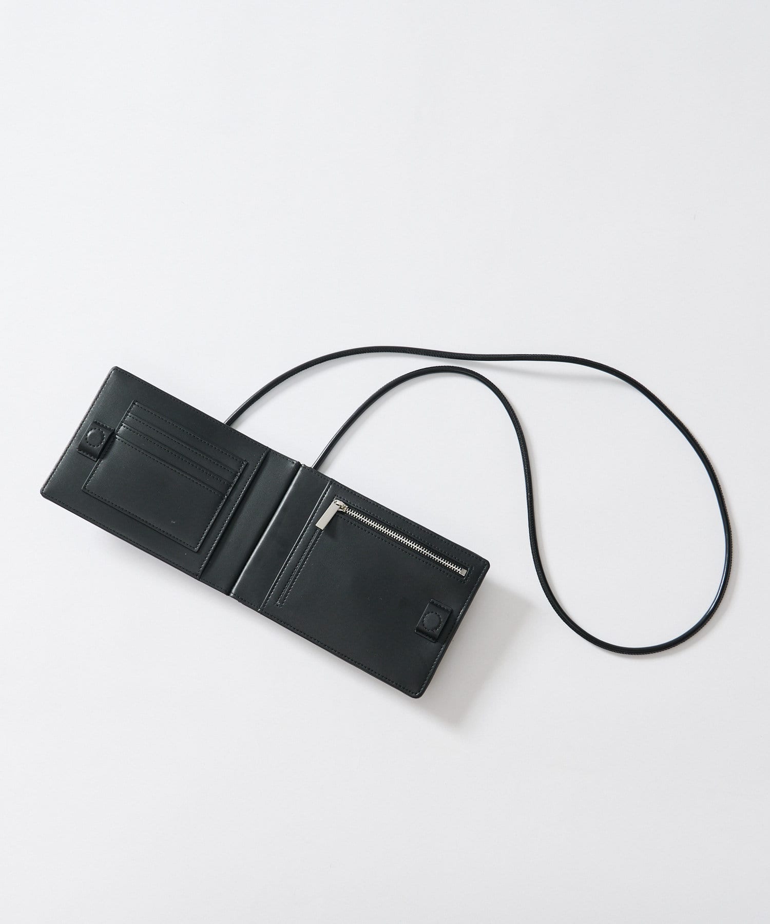 ふたつ折りになっており、中にはコイン、札、カードなどの収納が可能。
