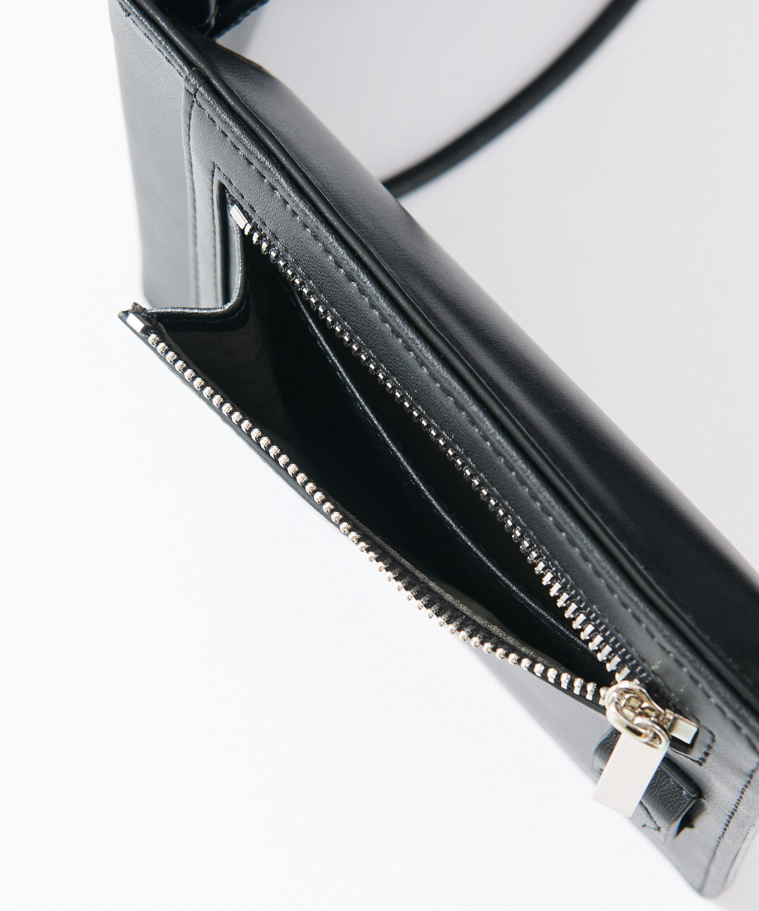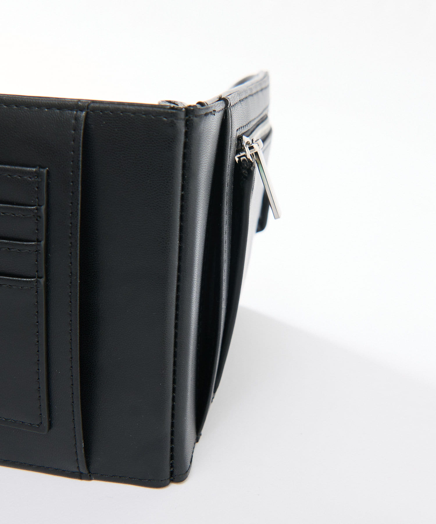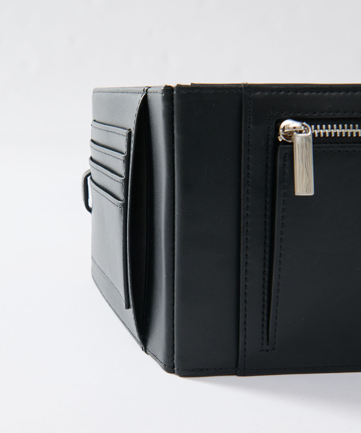 ふたつ折りになっており、中にはコイン、札、カードなどの収納が可能。