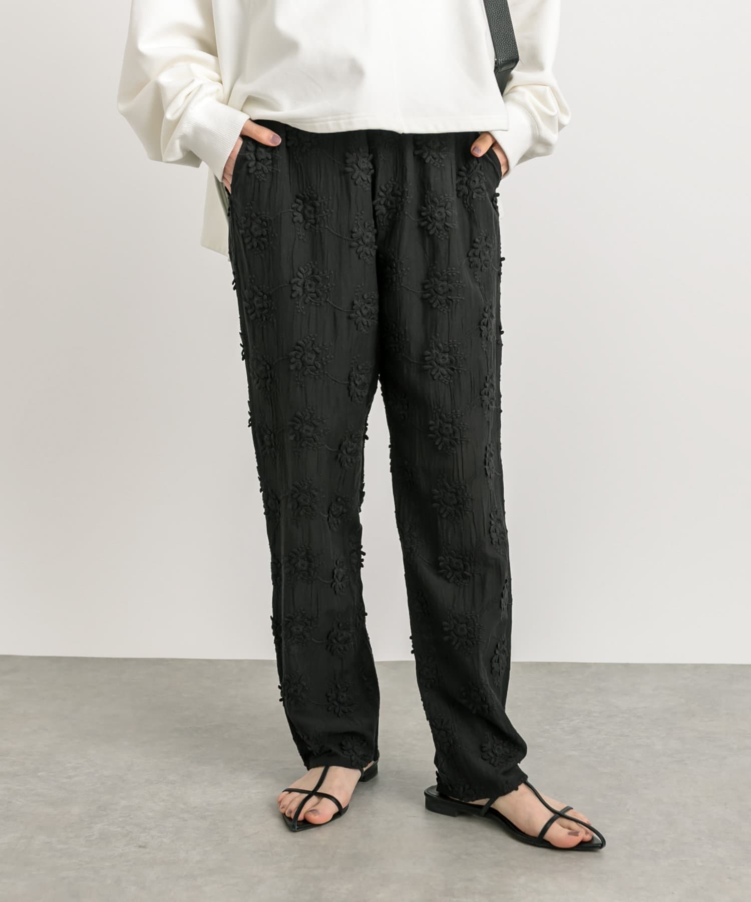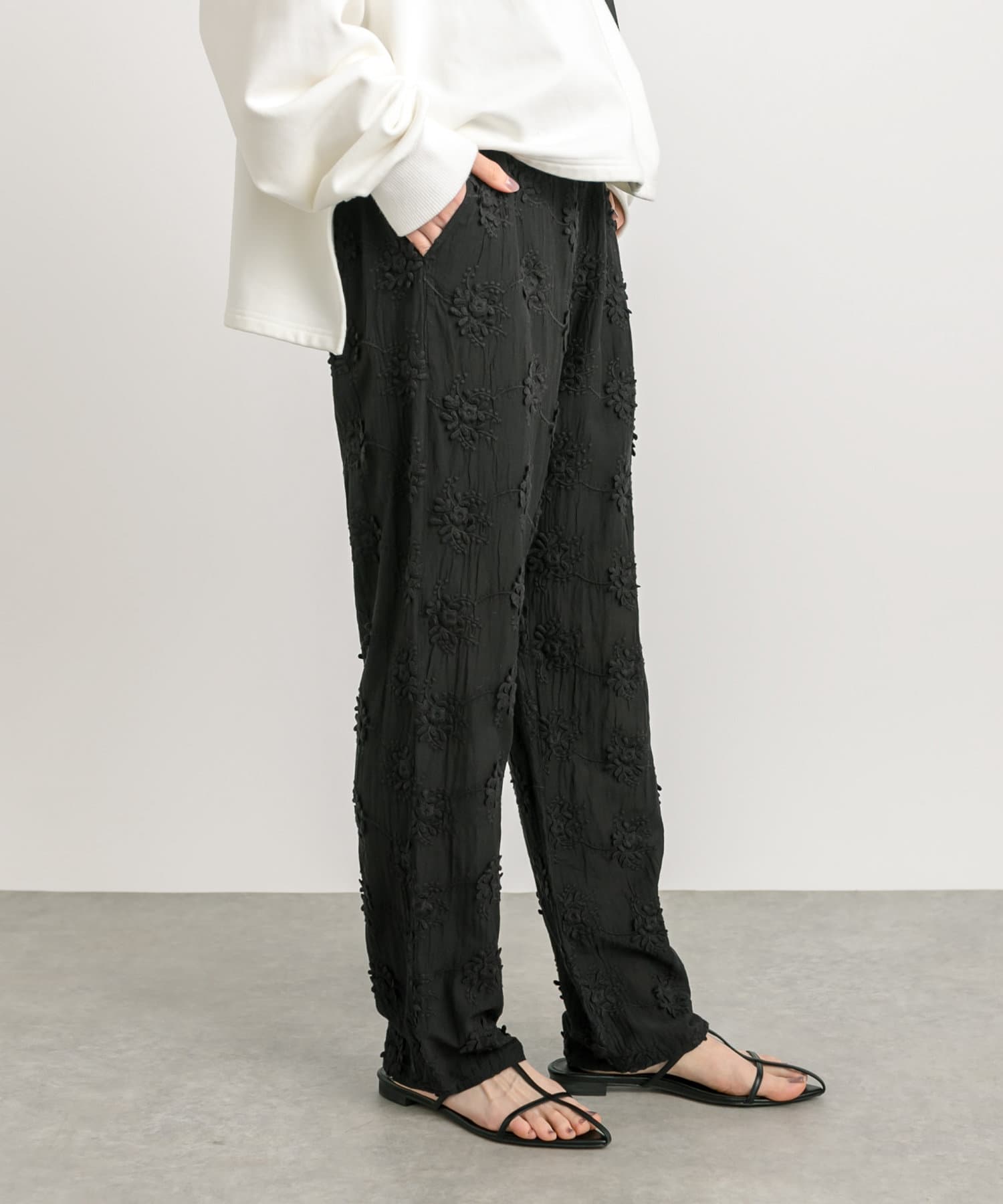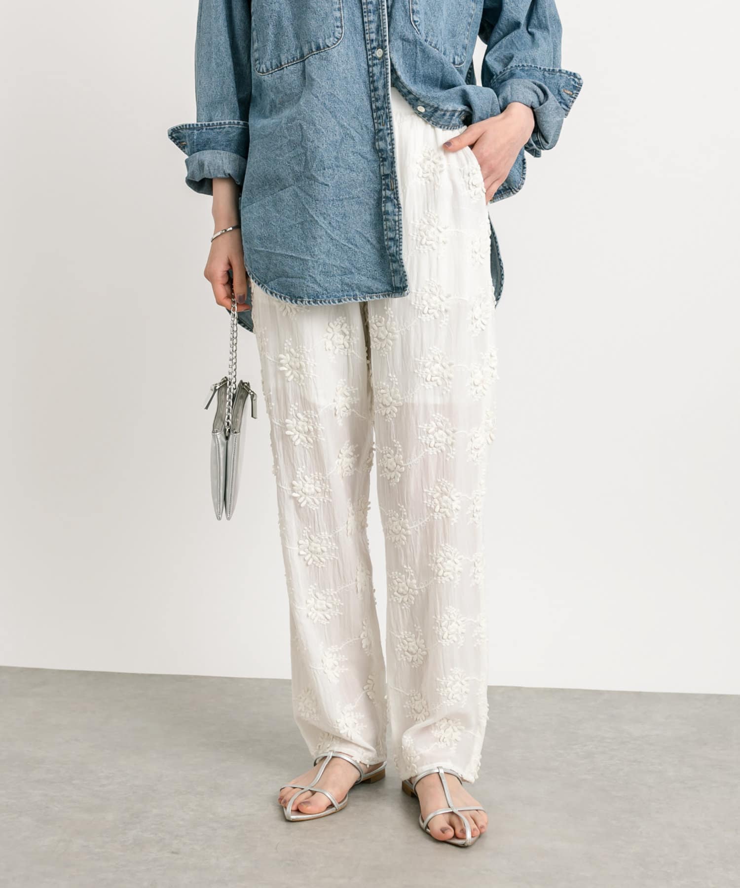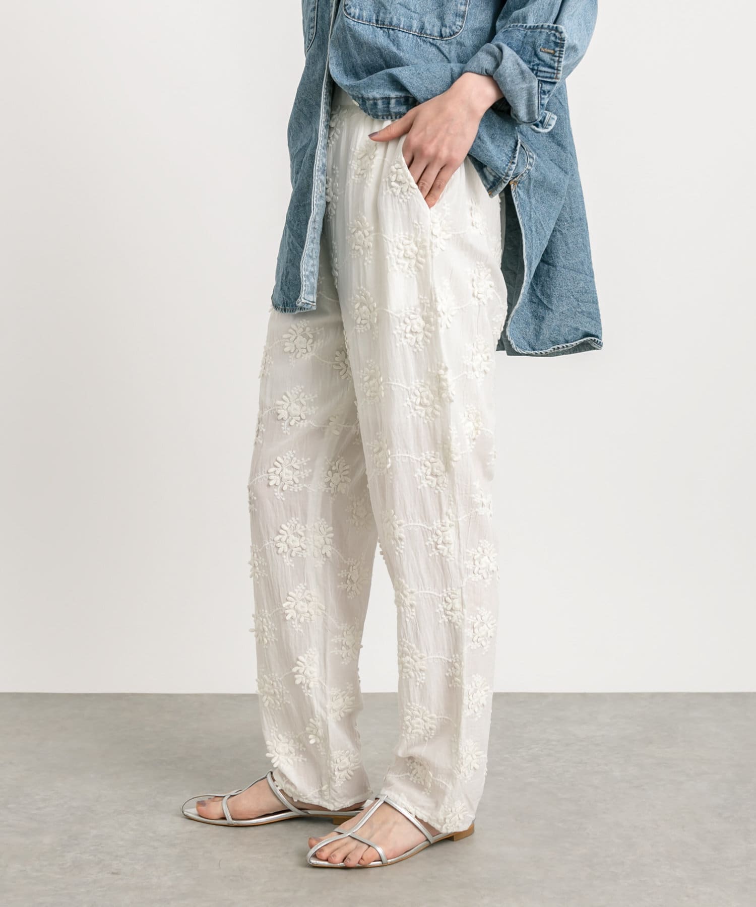 【コーデのポイントに】エンブロイダリー刺繡パンツ