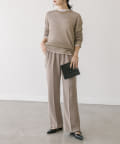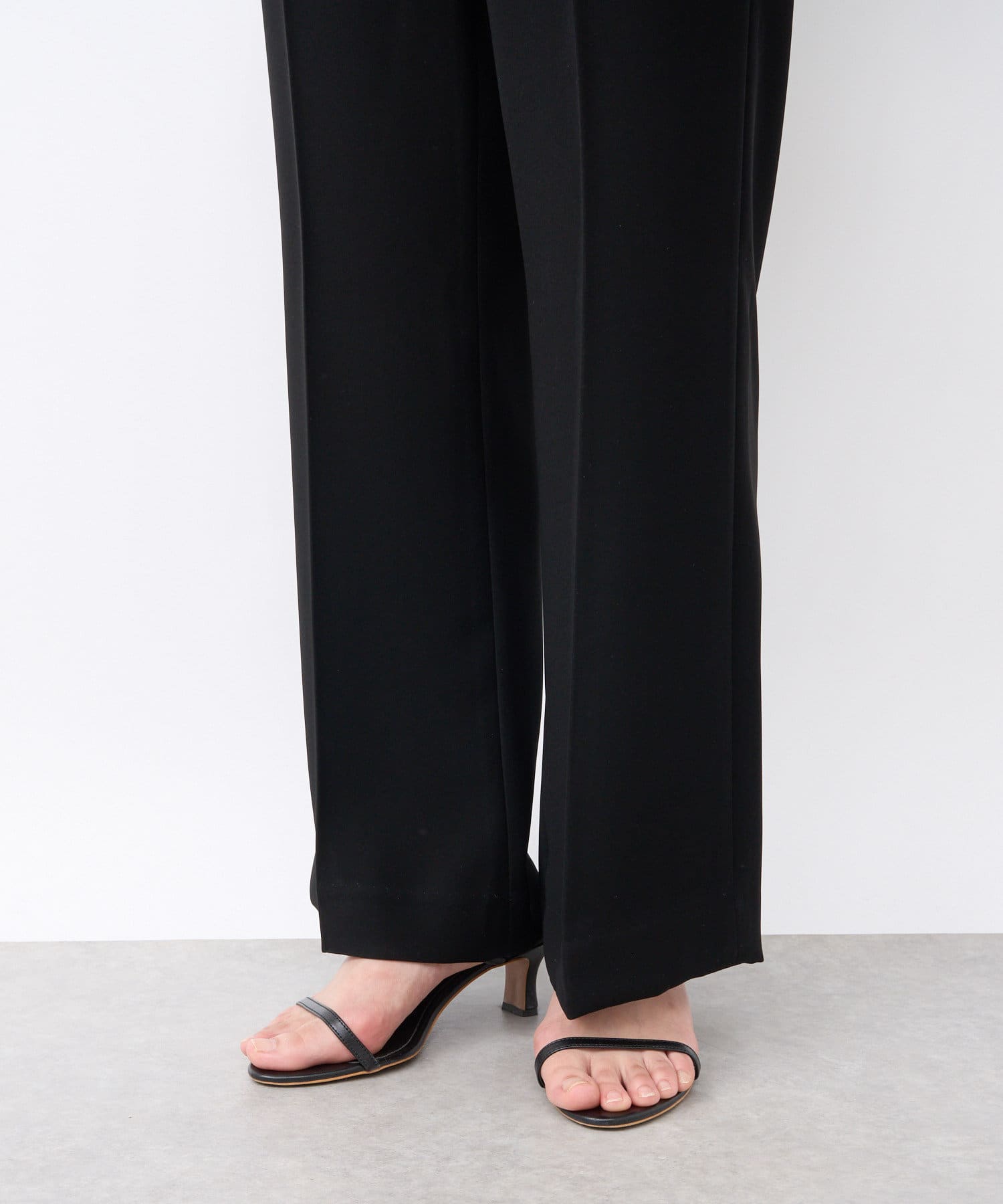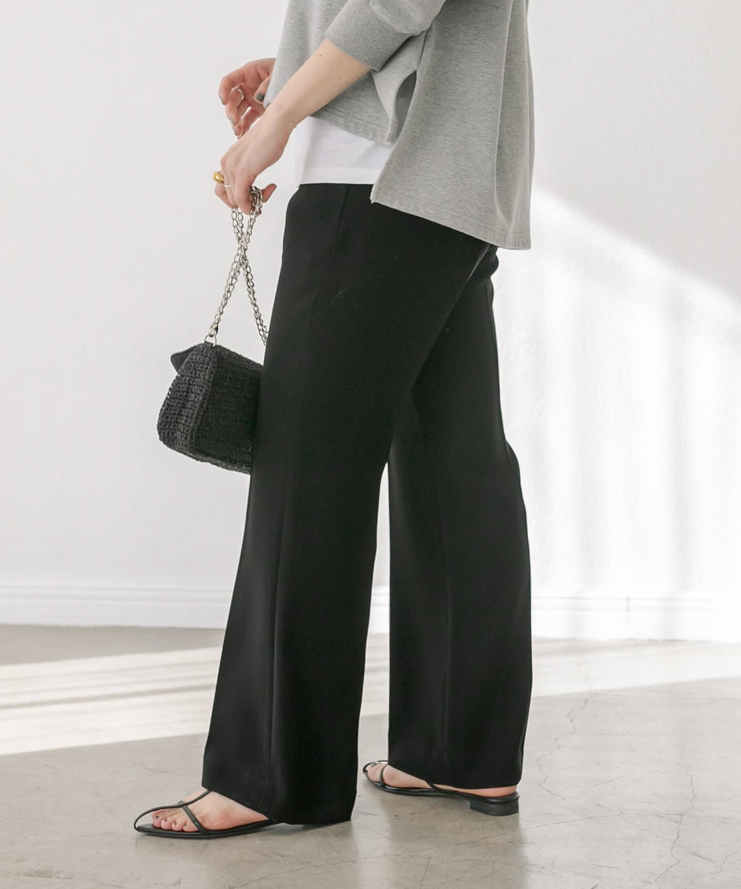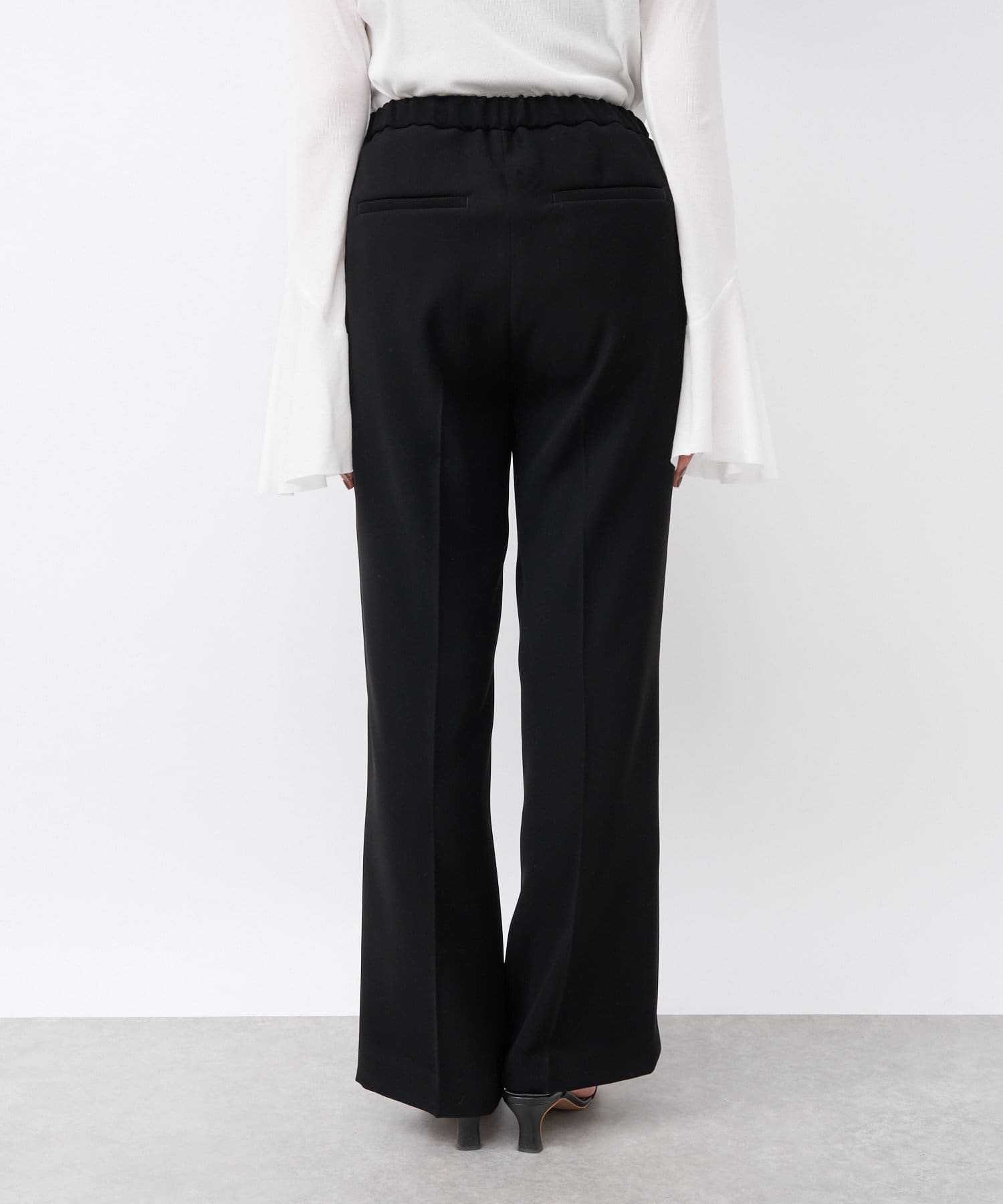 広がりすぎないフレアシルエットでスタイルアップが叶うパンツ。
