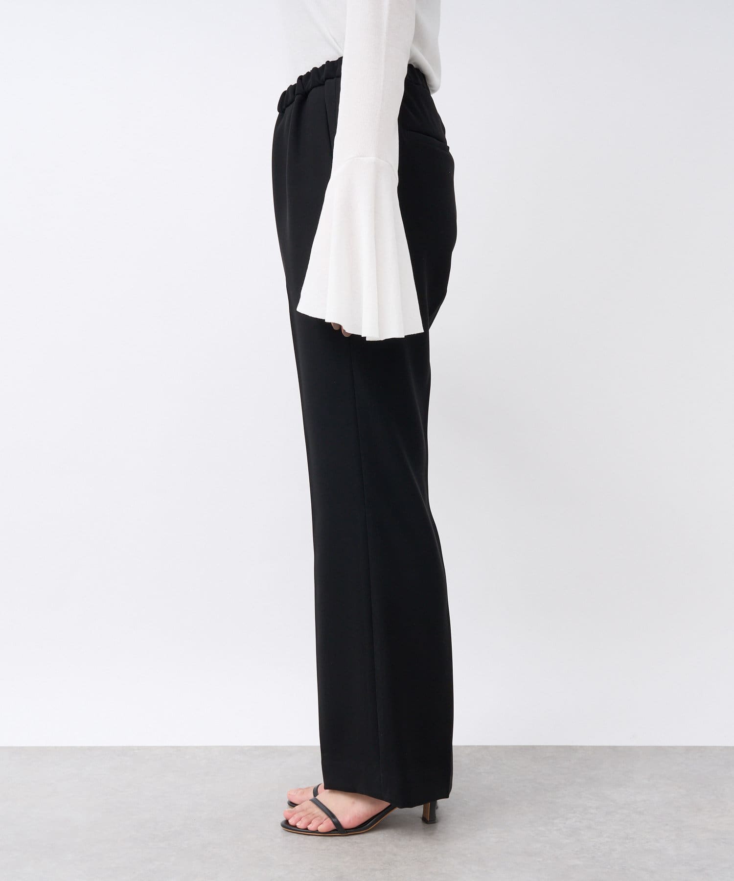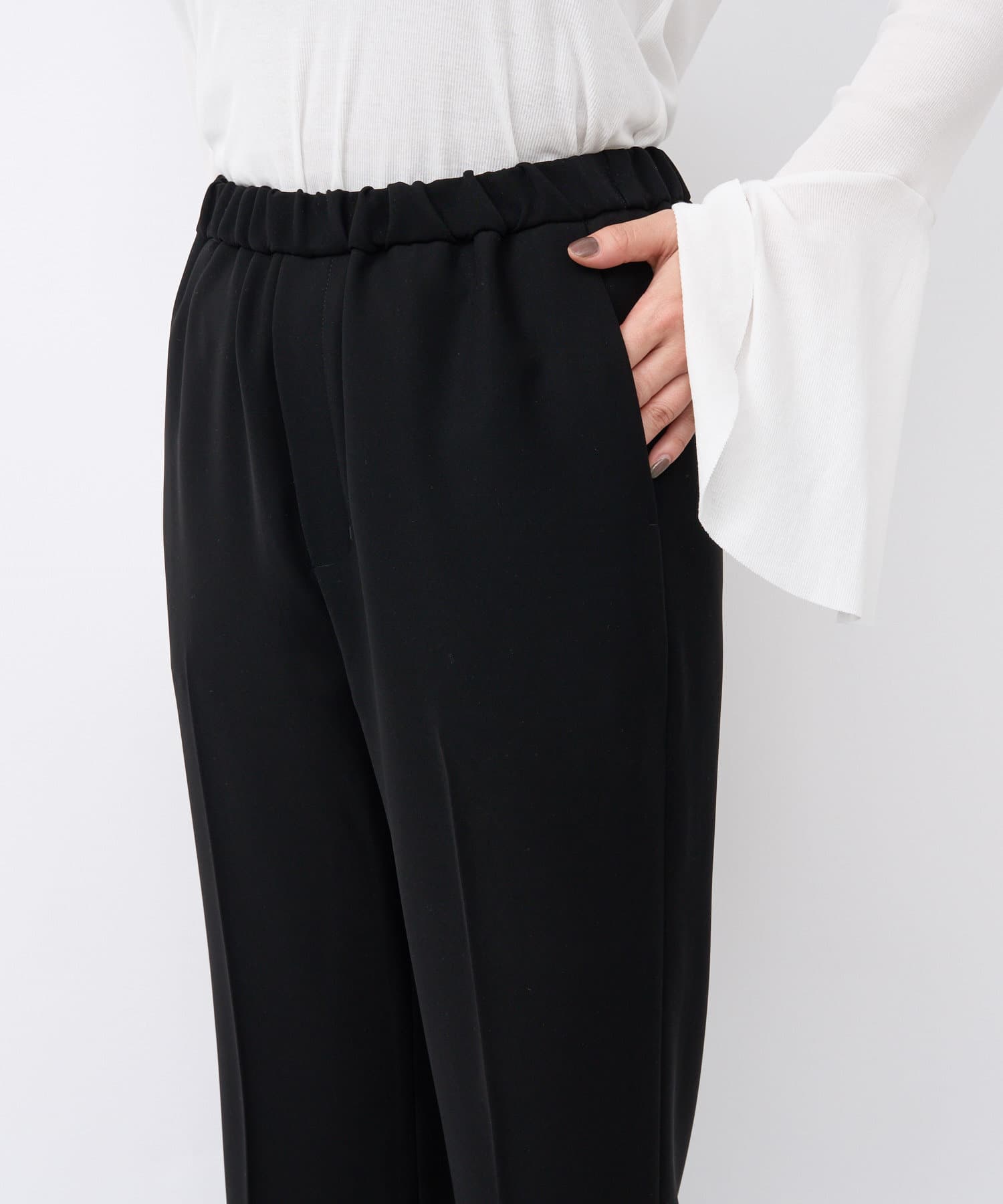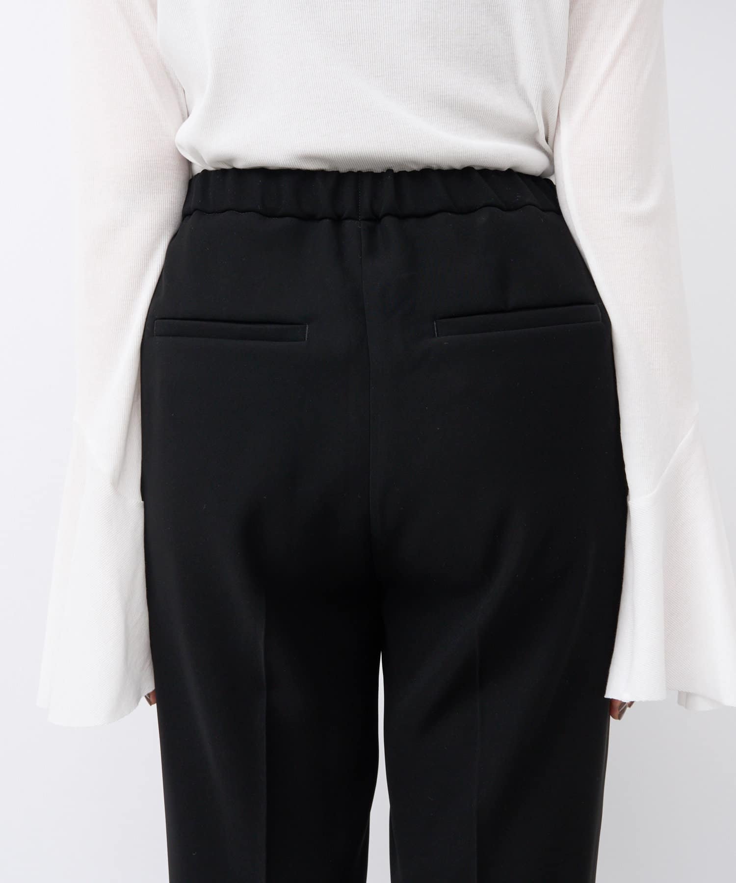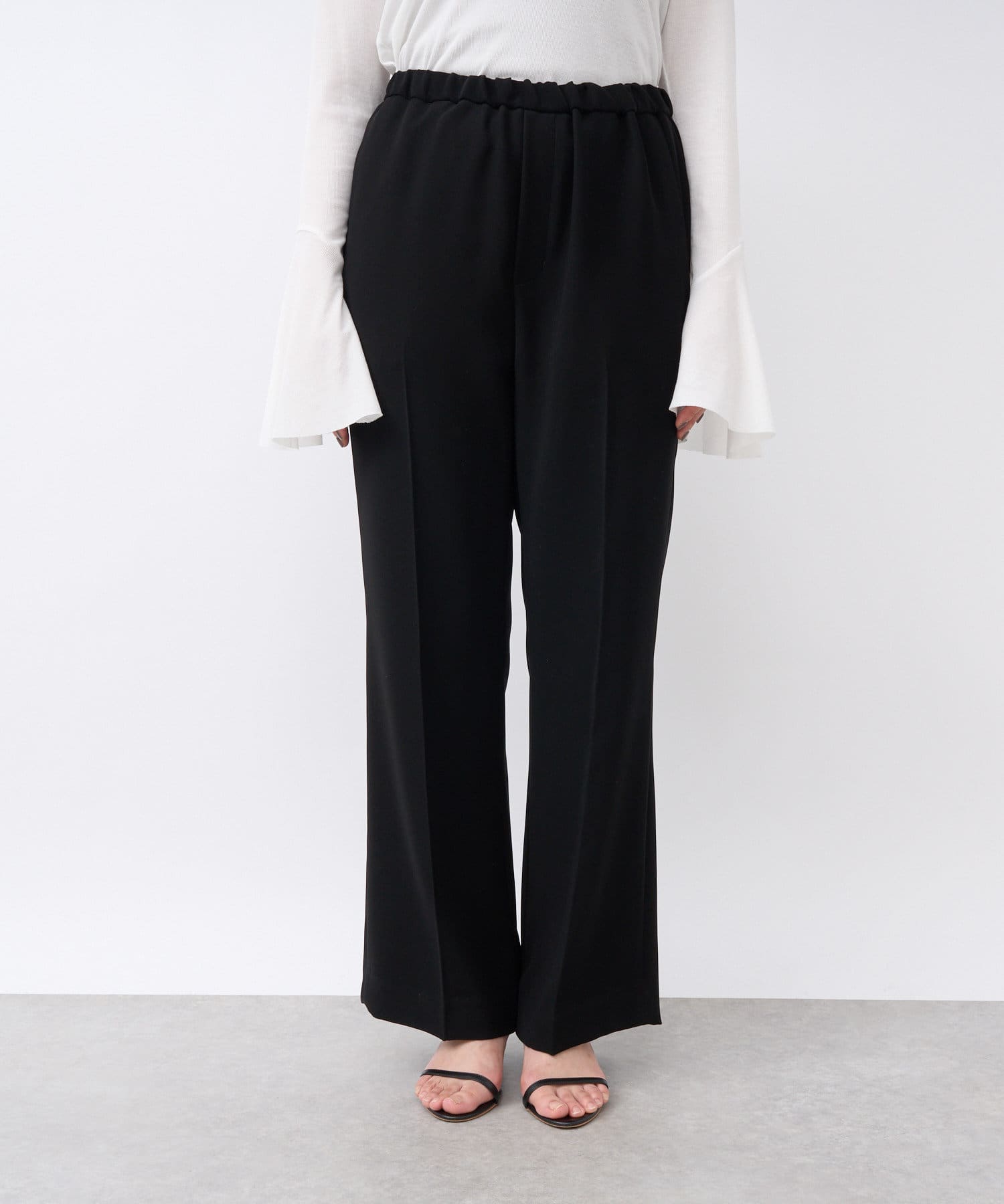 程よくストレッチ性があるので着心地も良い一枚。ウエストゴムで楽ちんキレイが叶う万能アイテムです。