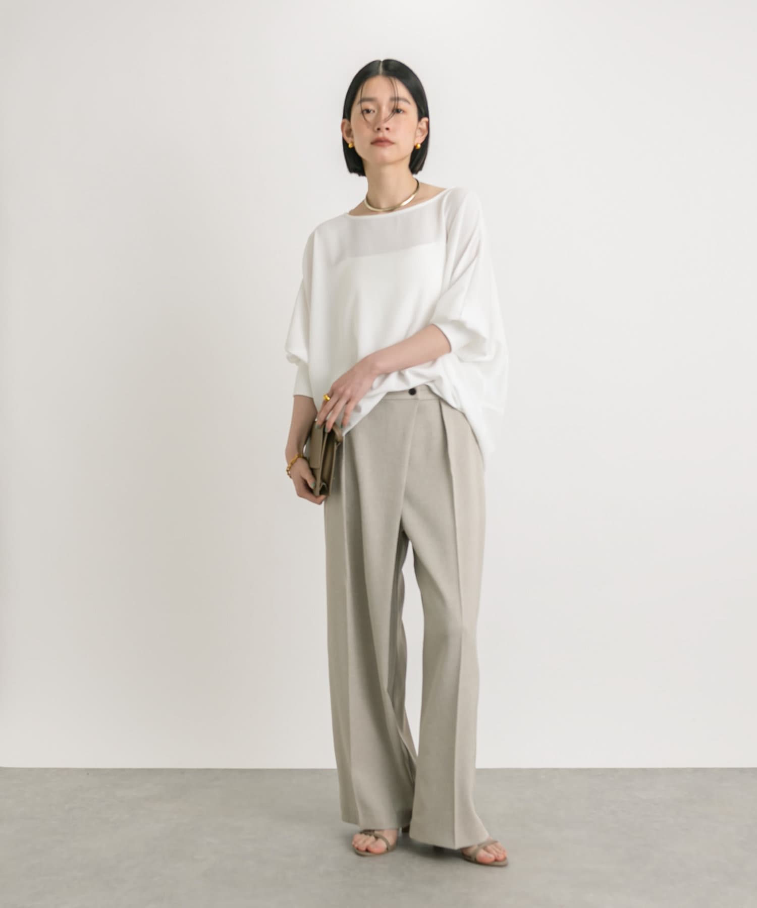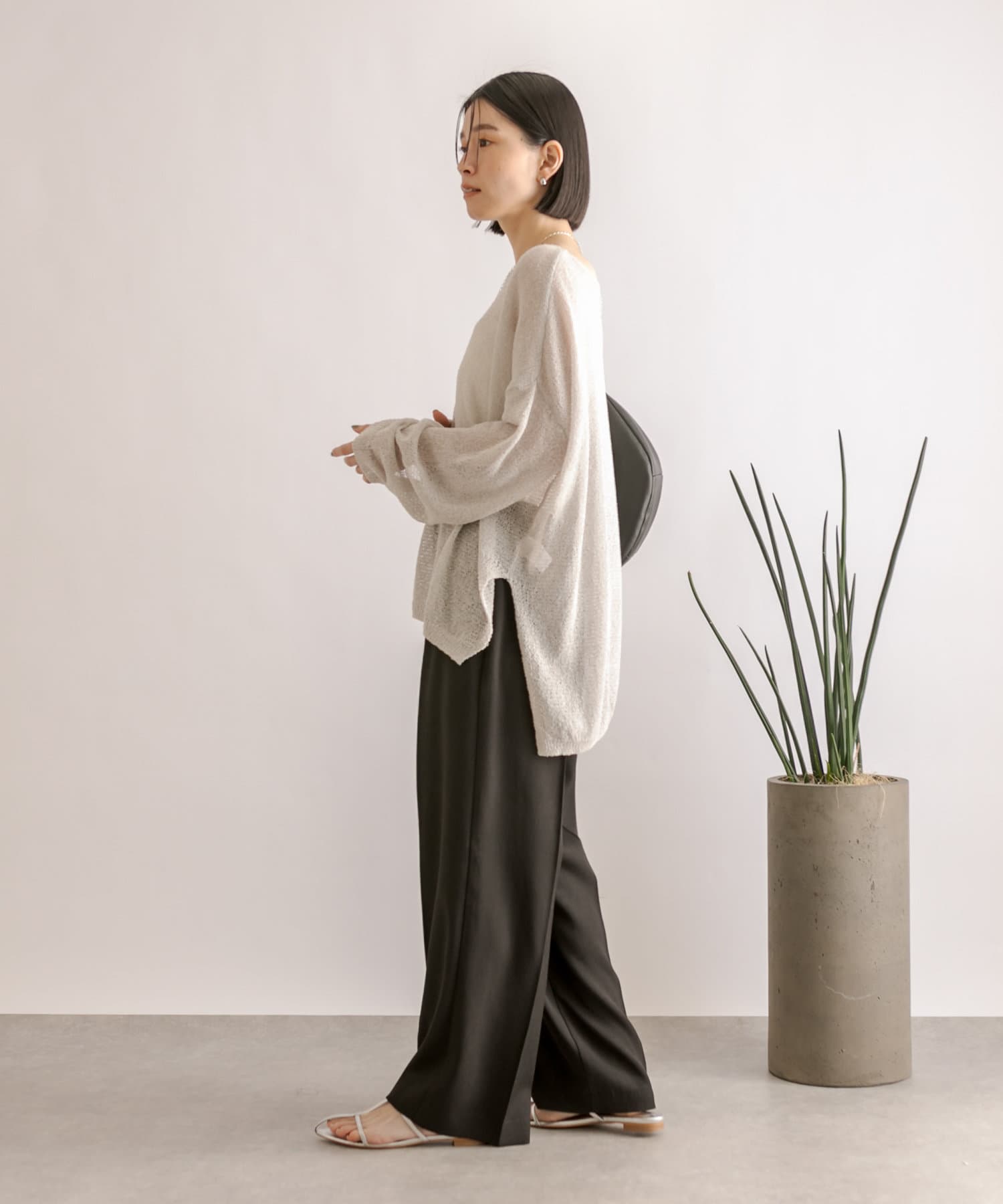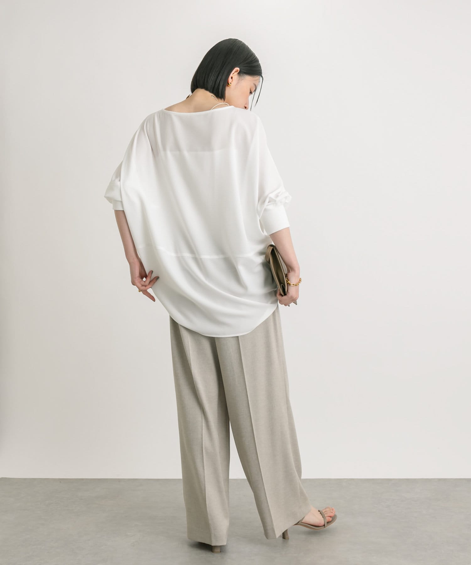 ややワイドなボリュームシルエットながら、落ち感のあるさらっとした素材感で綺麗なシルエットが魅力。