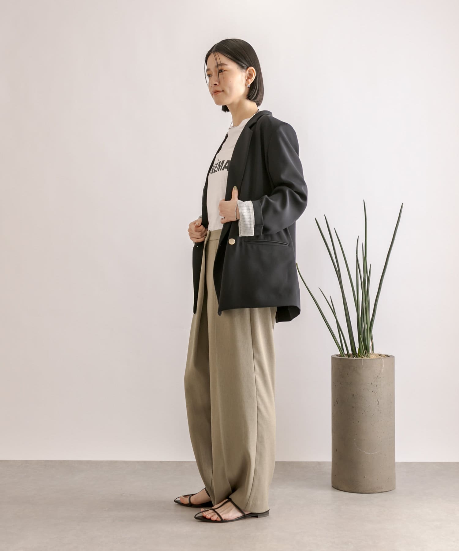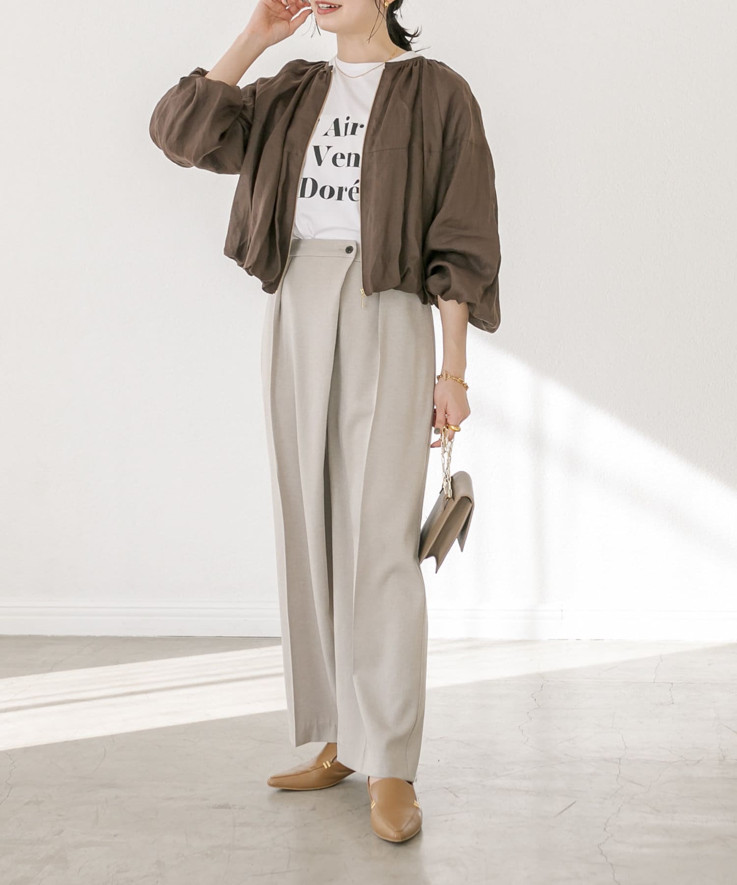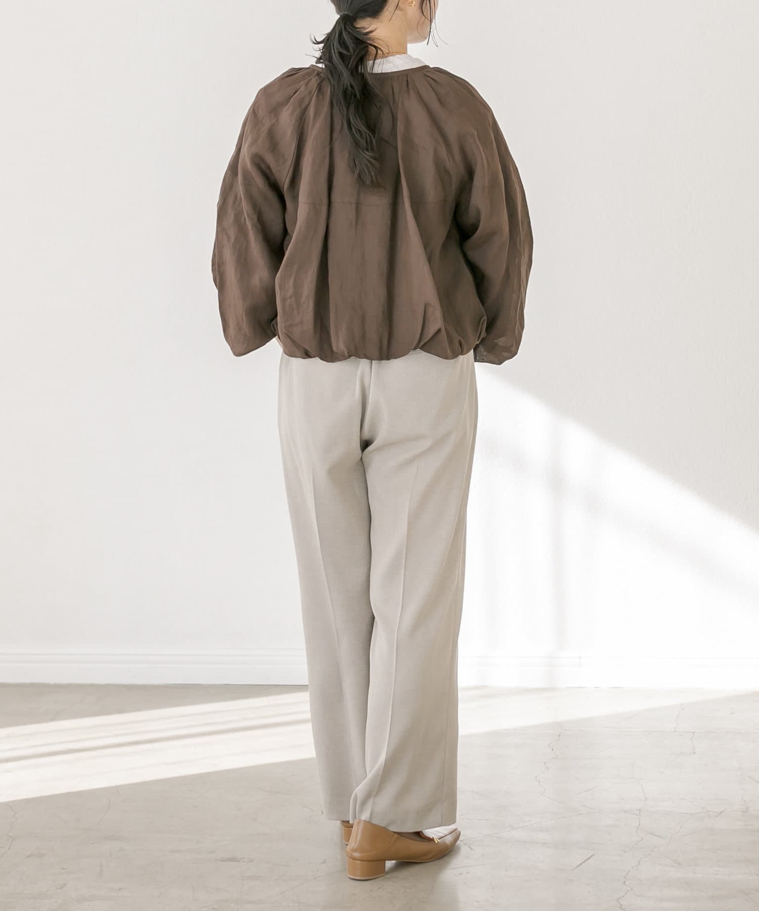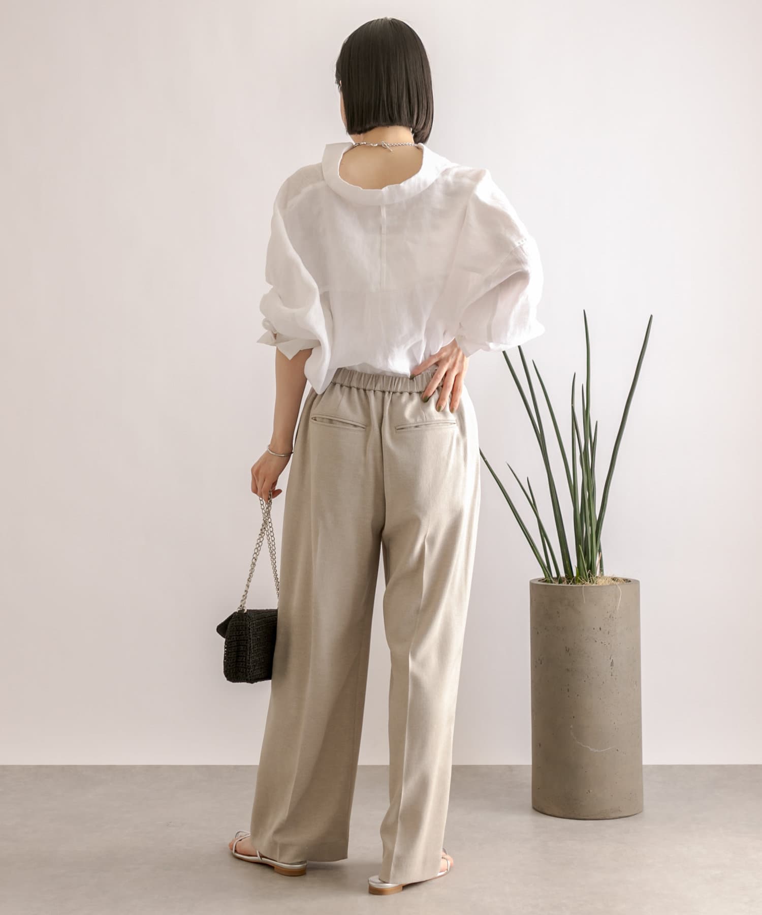 ややワイドなボリュームシルエットながら、落ち感のあるさらっとした素材感で綺麗なシルエットが魅力。