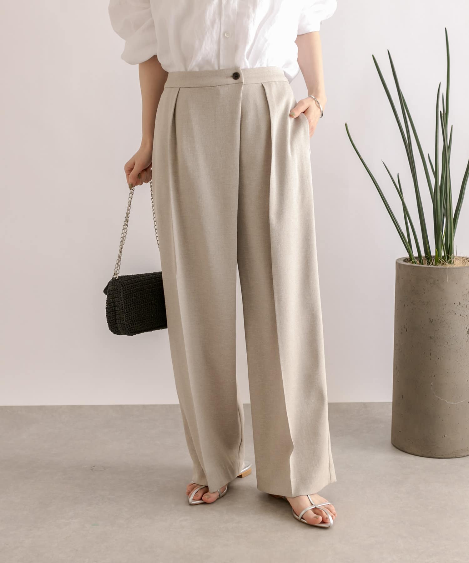 【程よい存在感】リネンライクラップパンツ