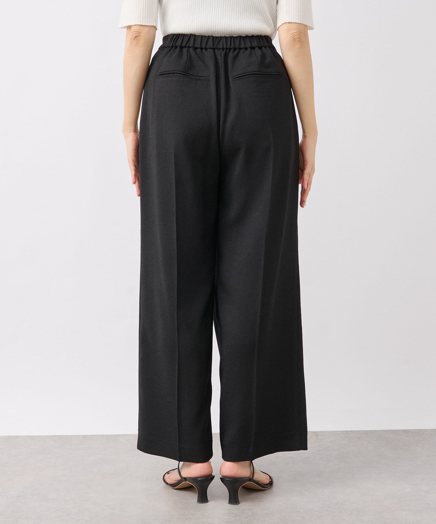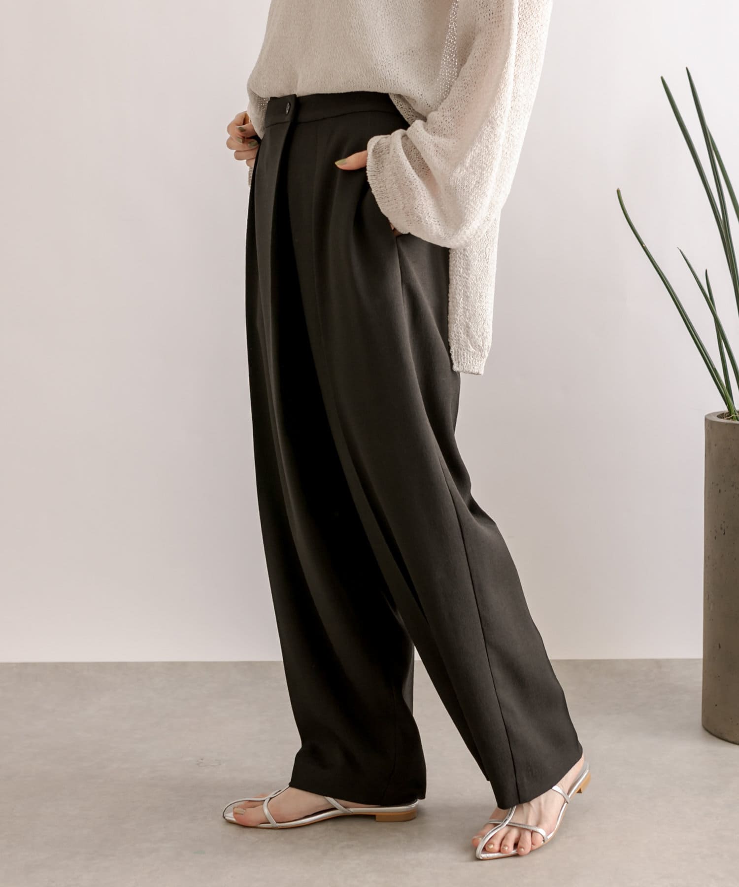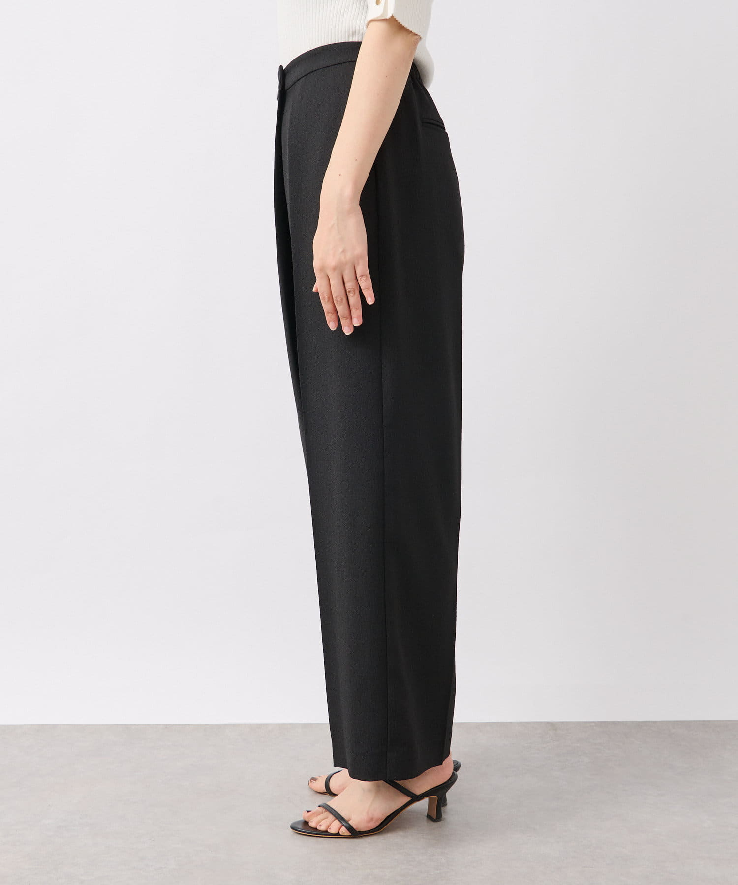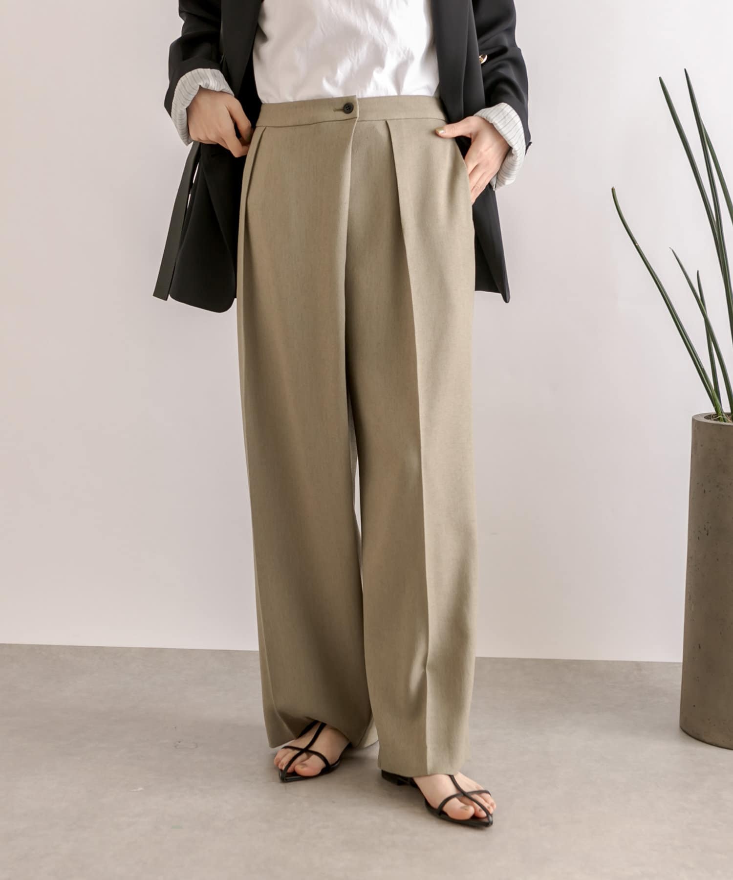 前身頃が重なったラップデザインが目を惹くスラックス。