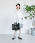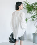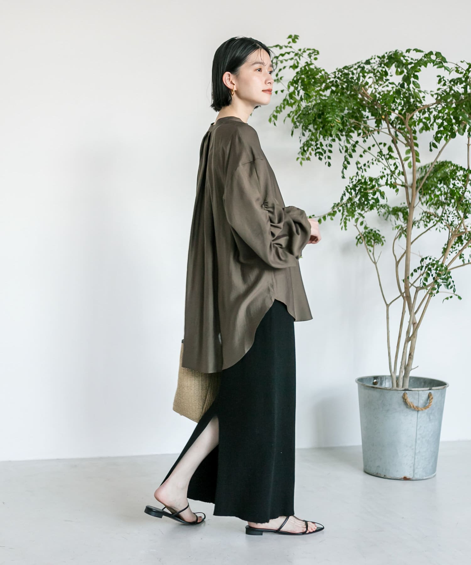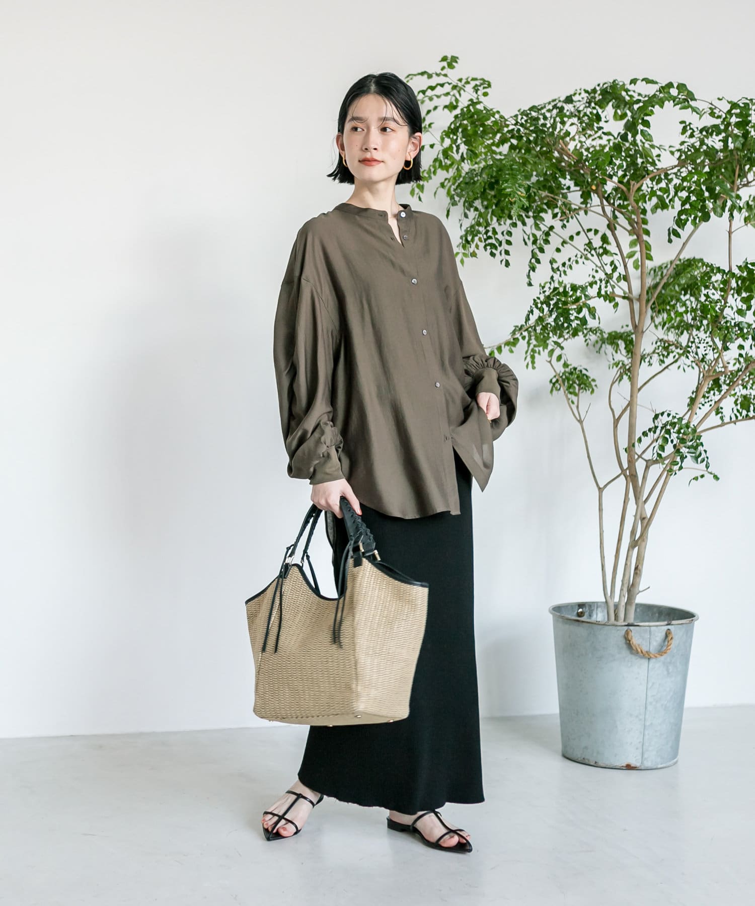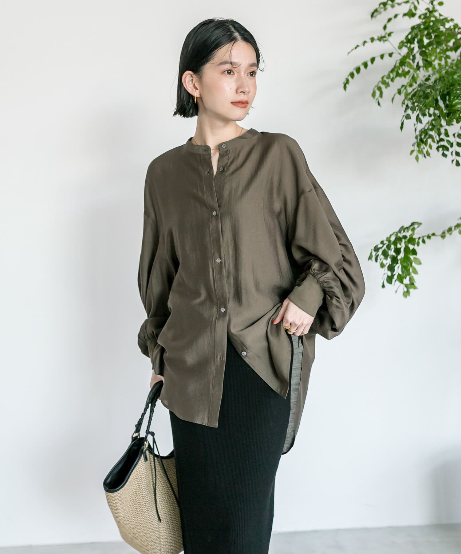 袖にはギャザーが入っており、シンプルながらもさり気無いデザインが大人カジュアルにぴったり。