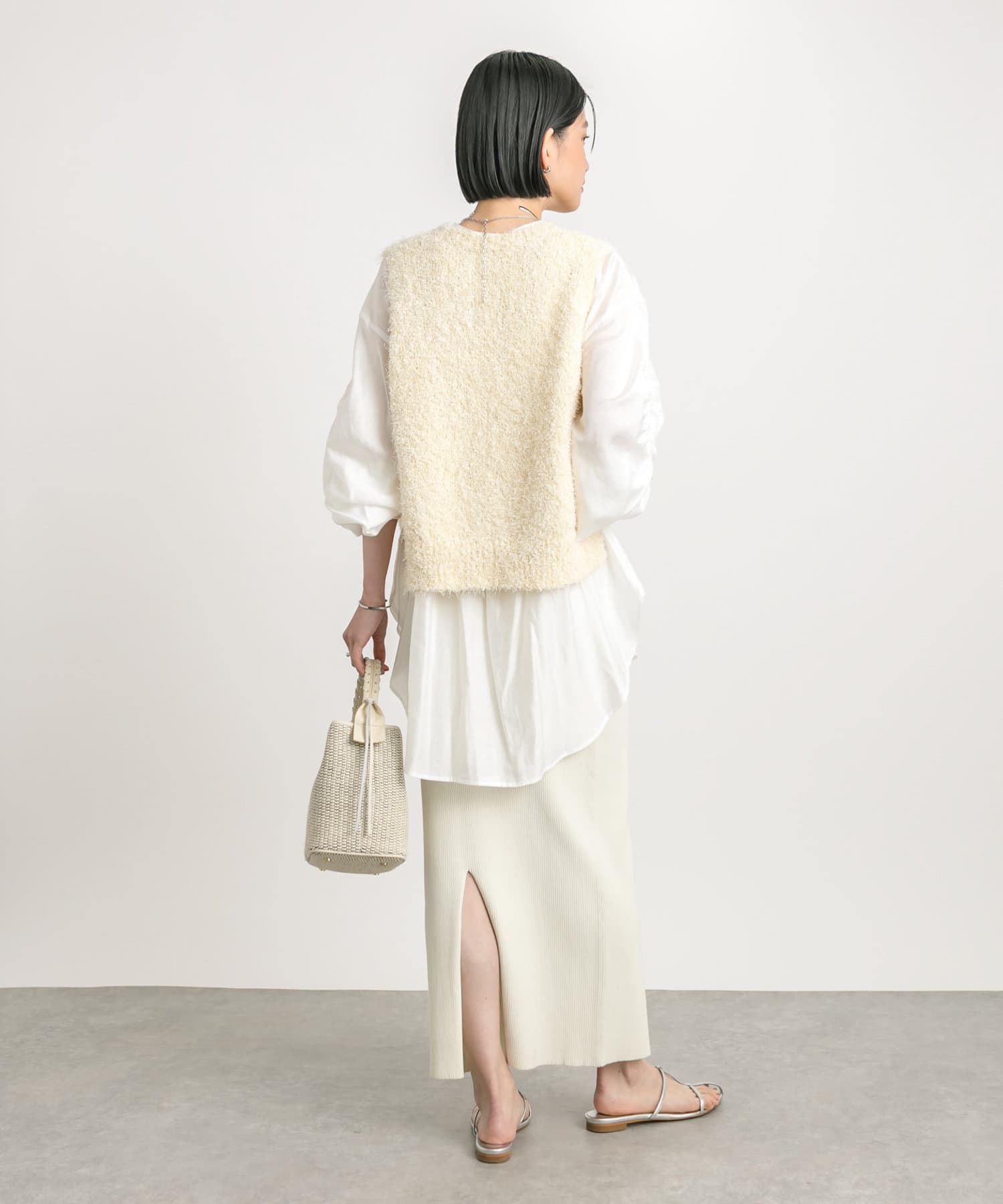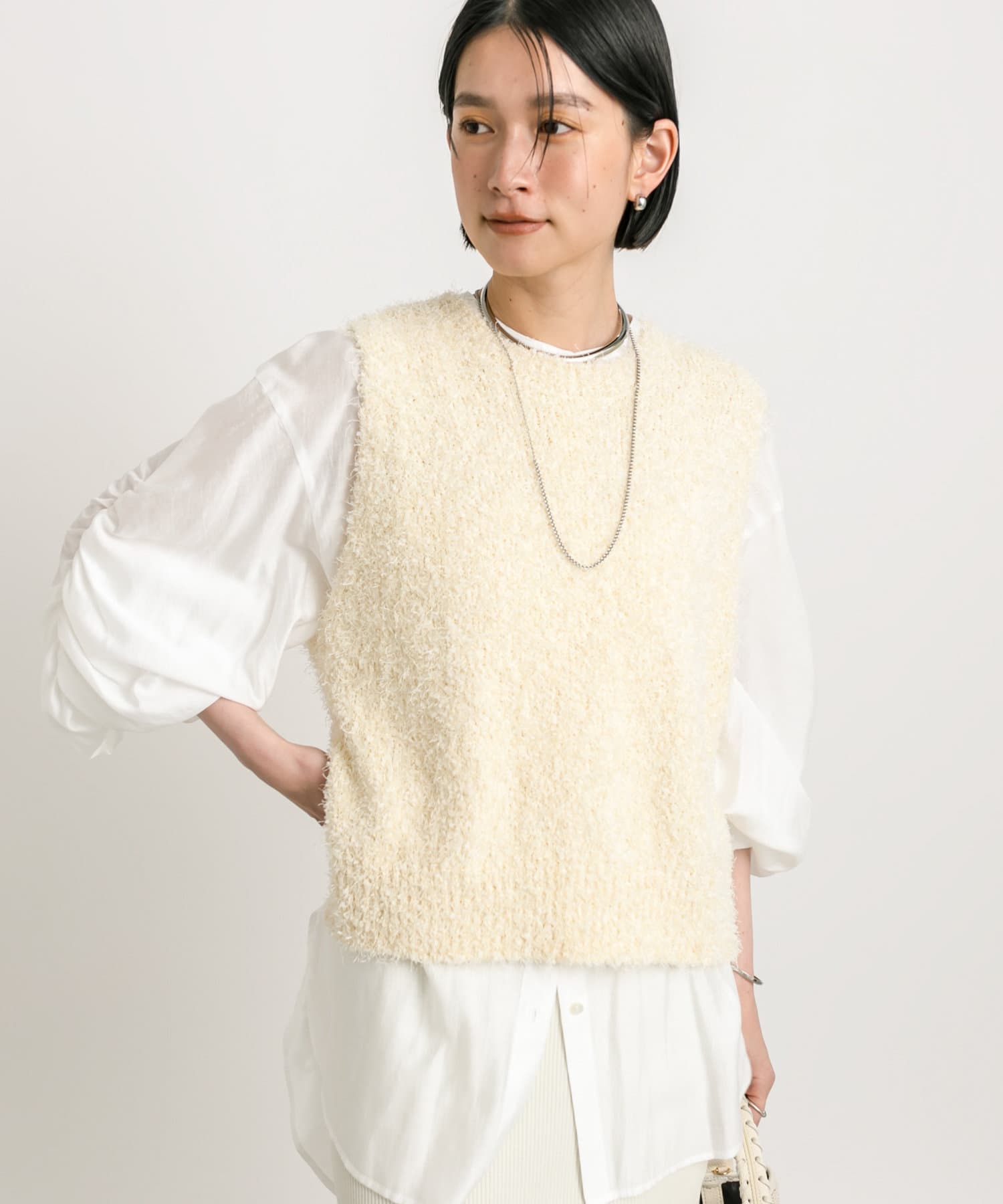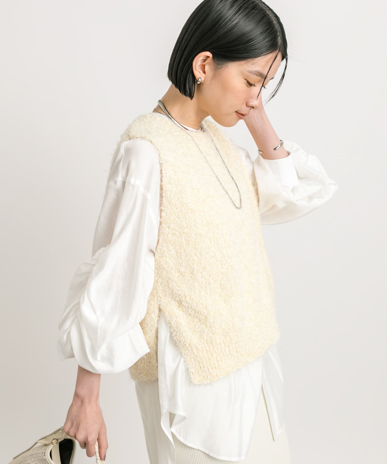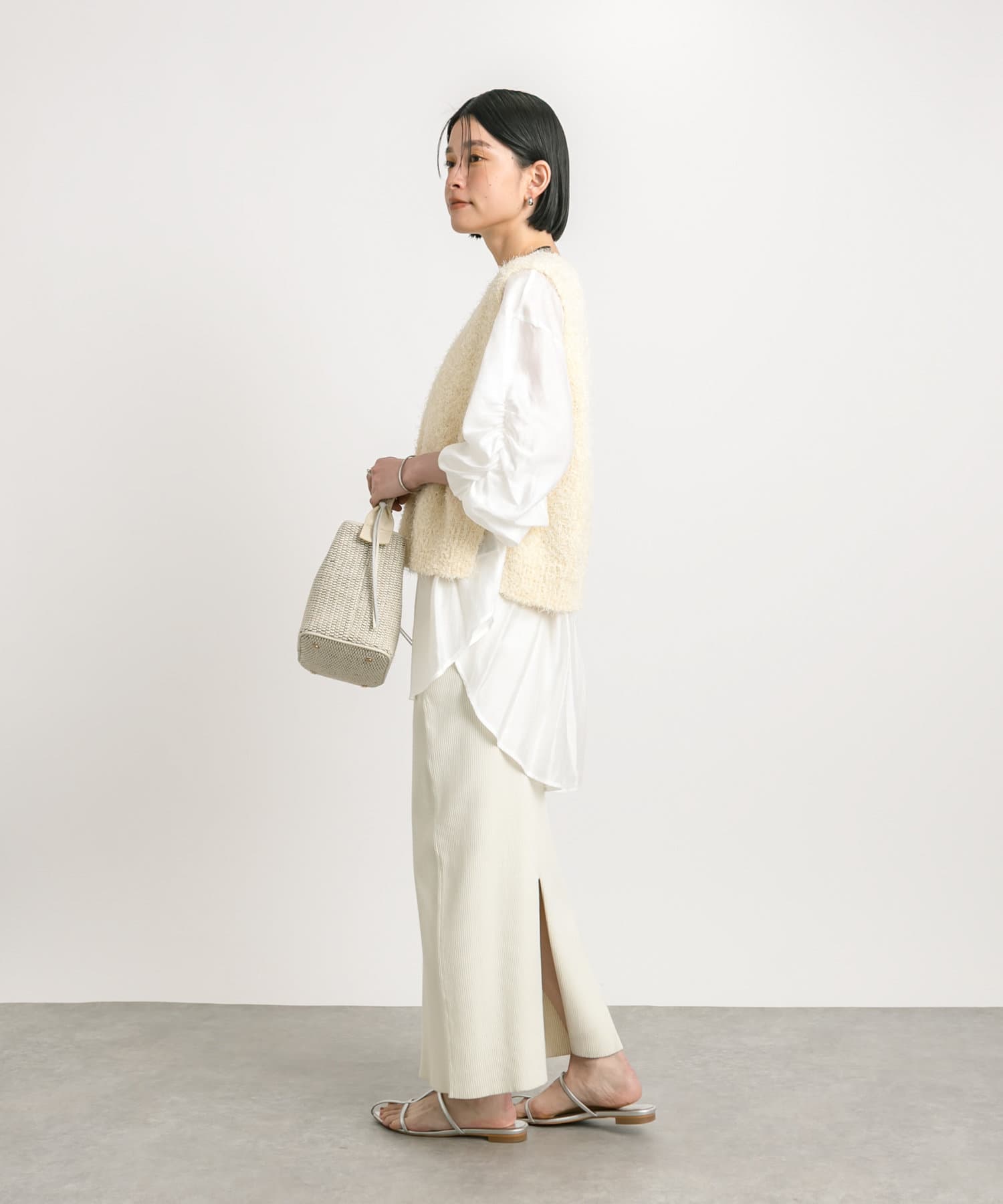 袖にはギャザーが入っており、シンプルながらもさり気無いデザインが大人カジュアルにぴったり。