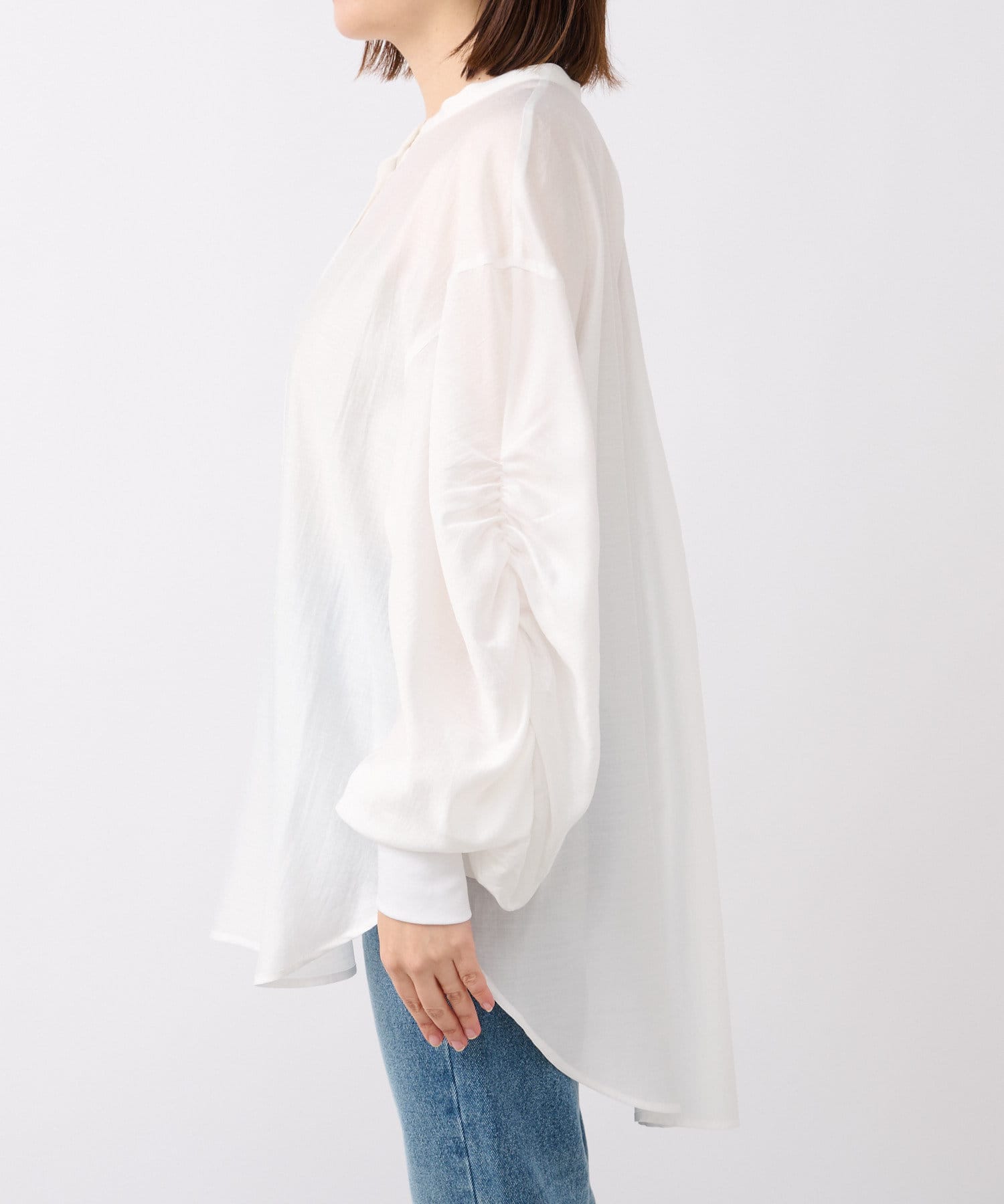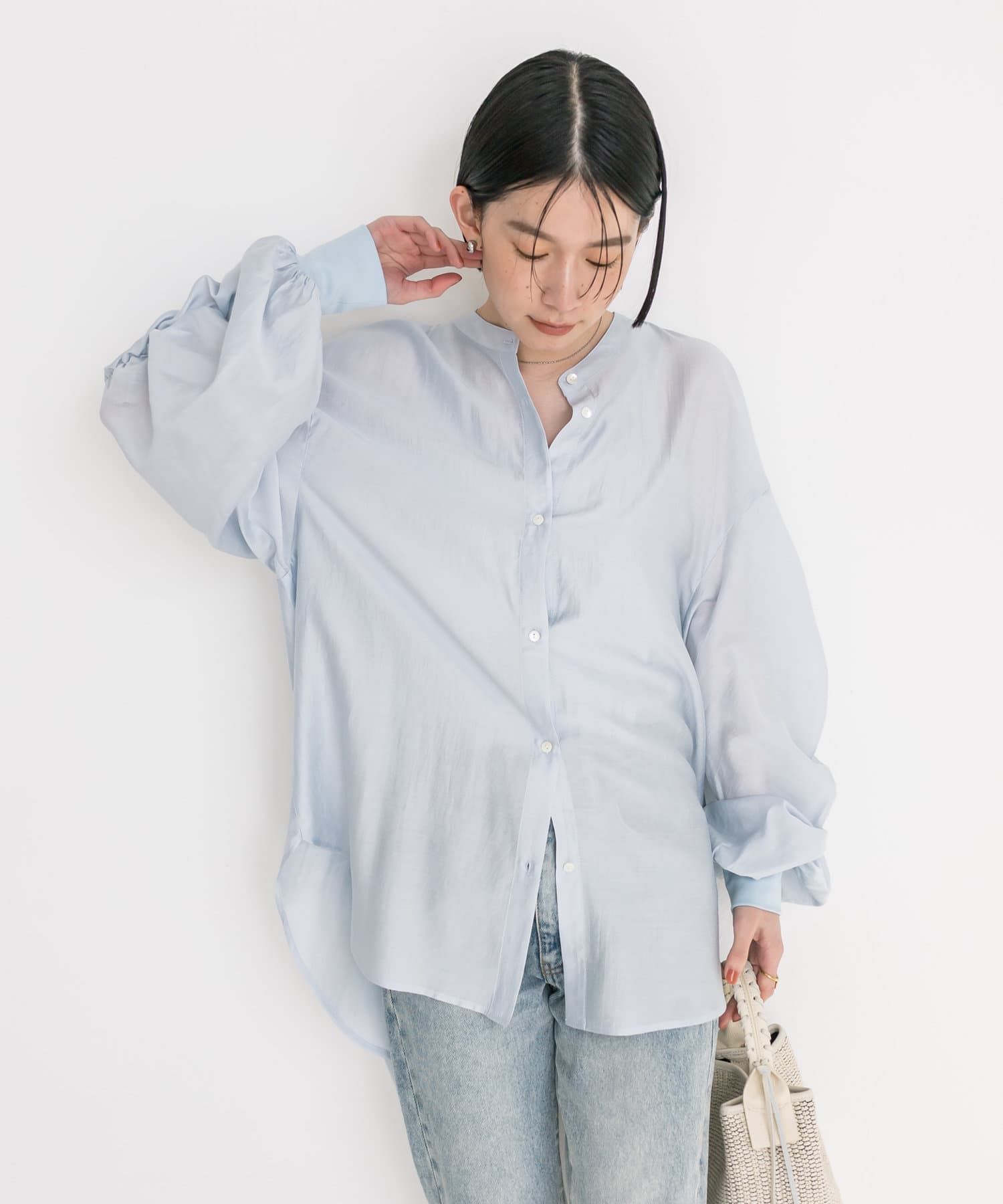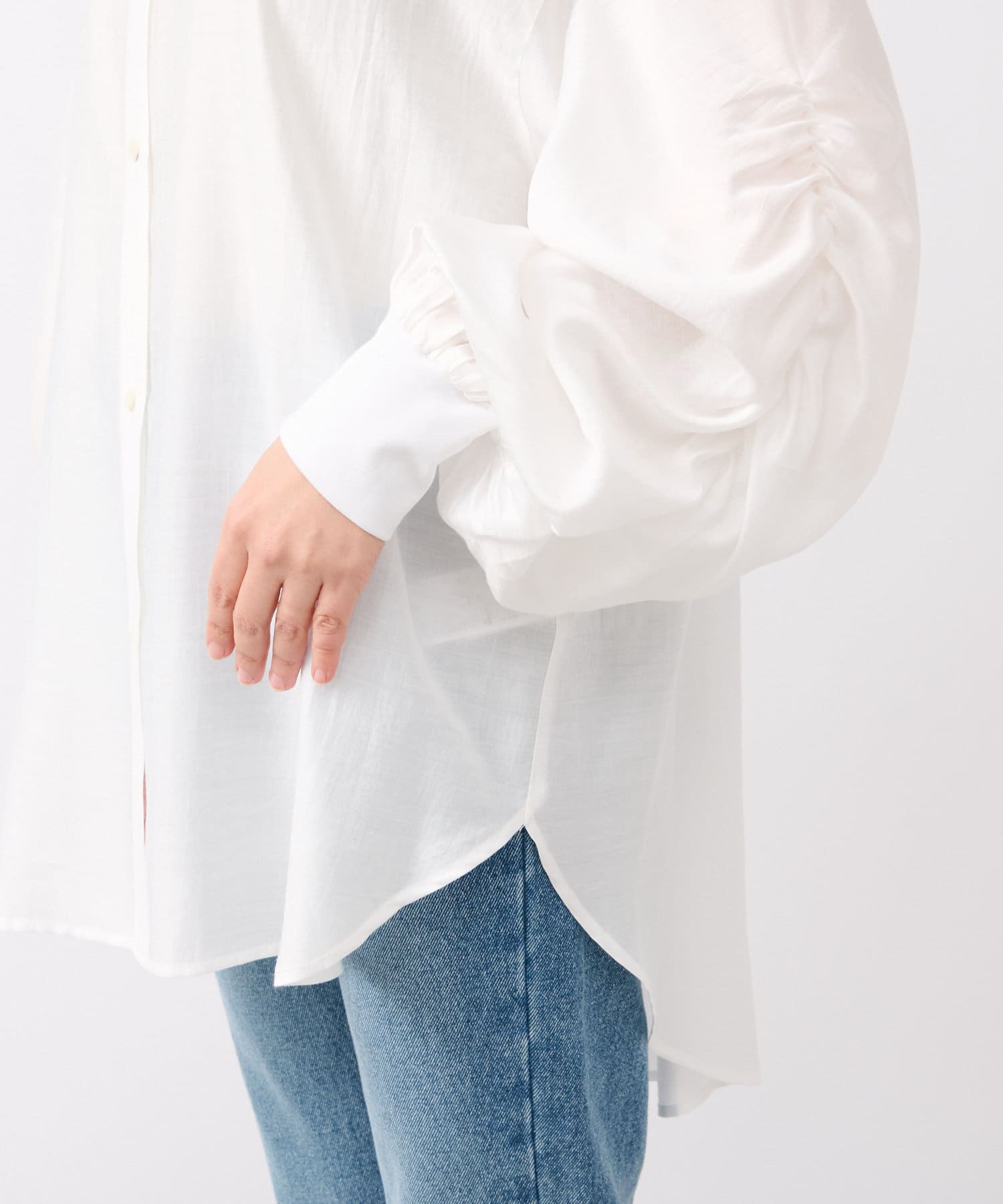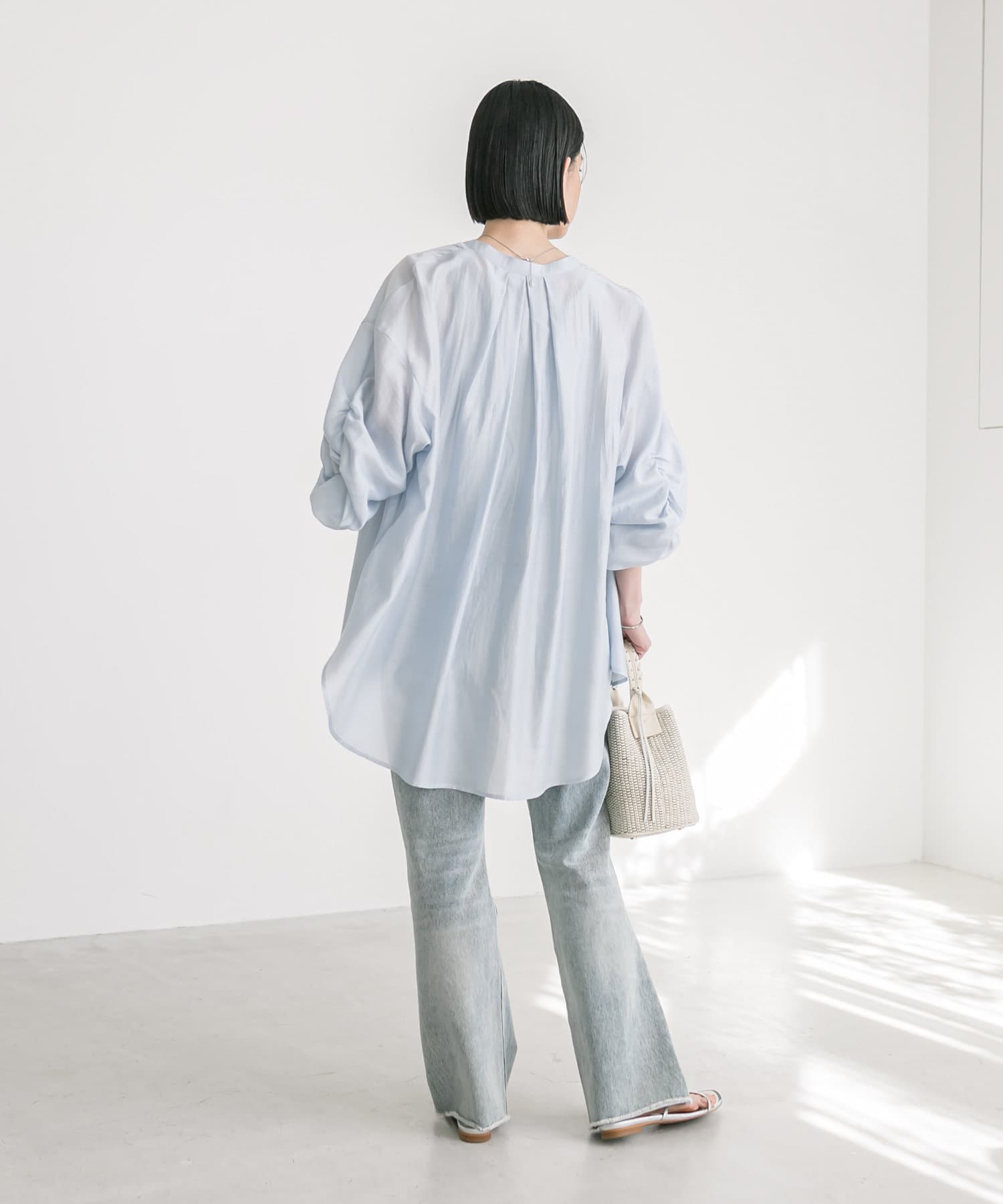 【羽織としても◎】ギャザースリーブシアーシャツ