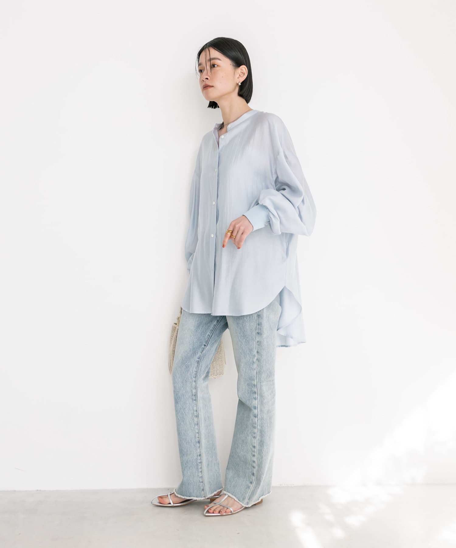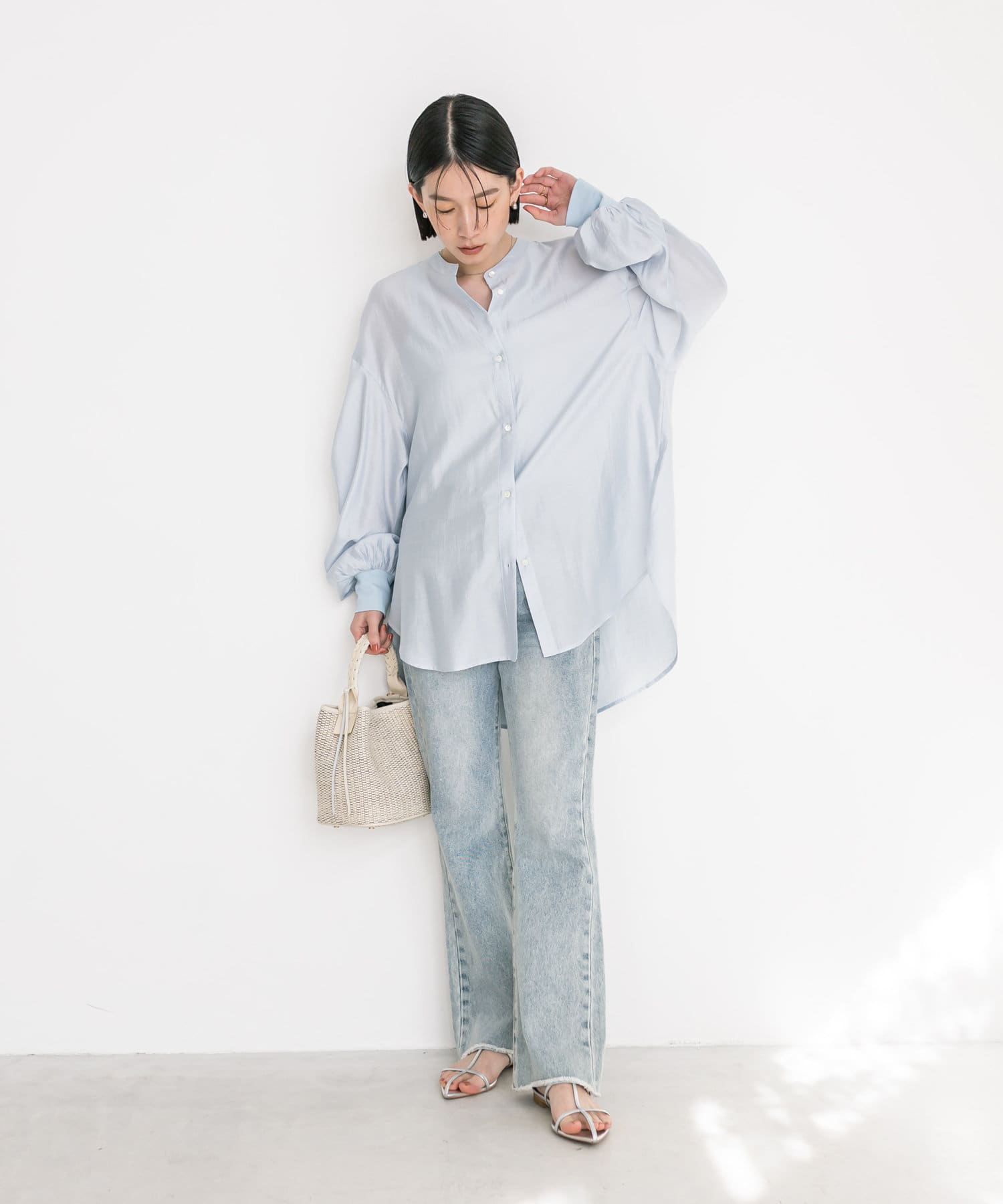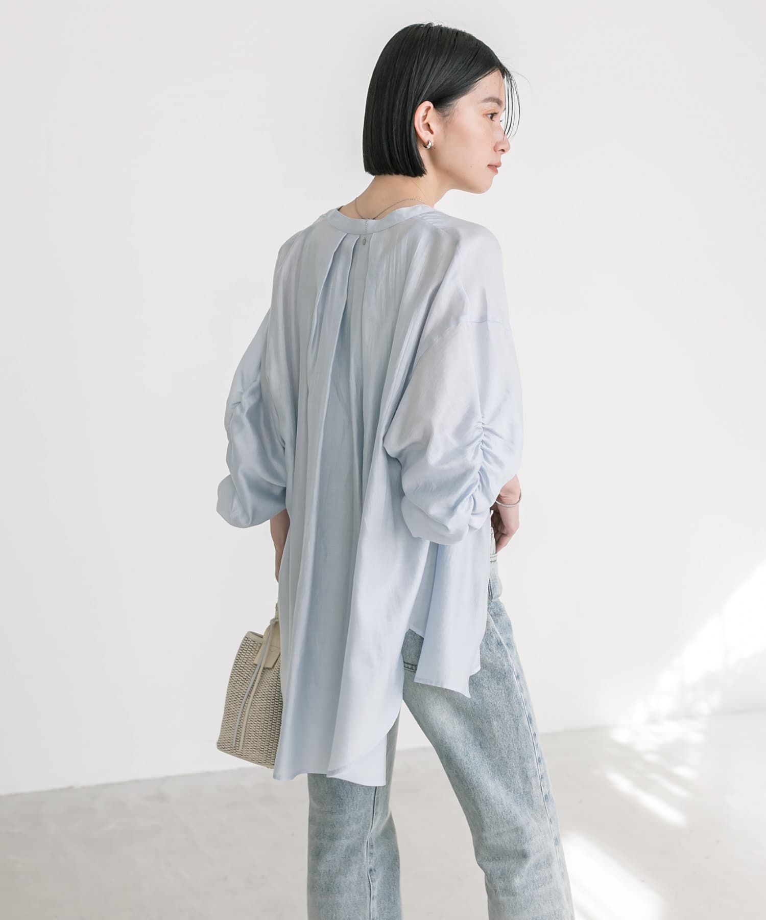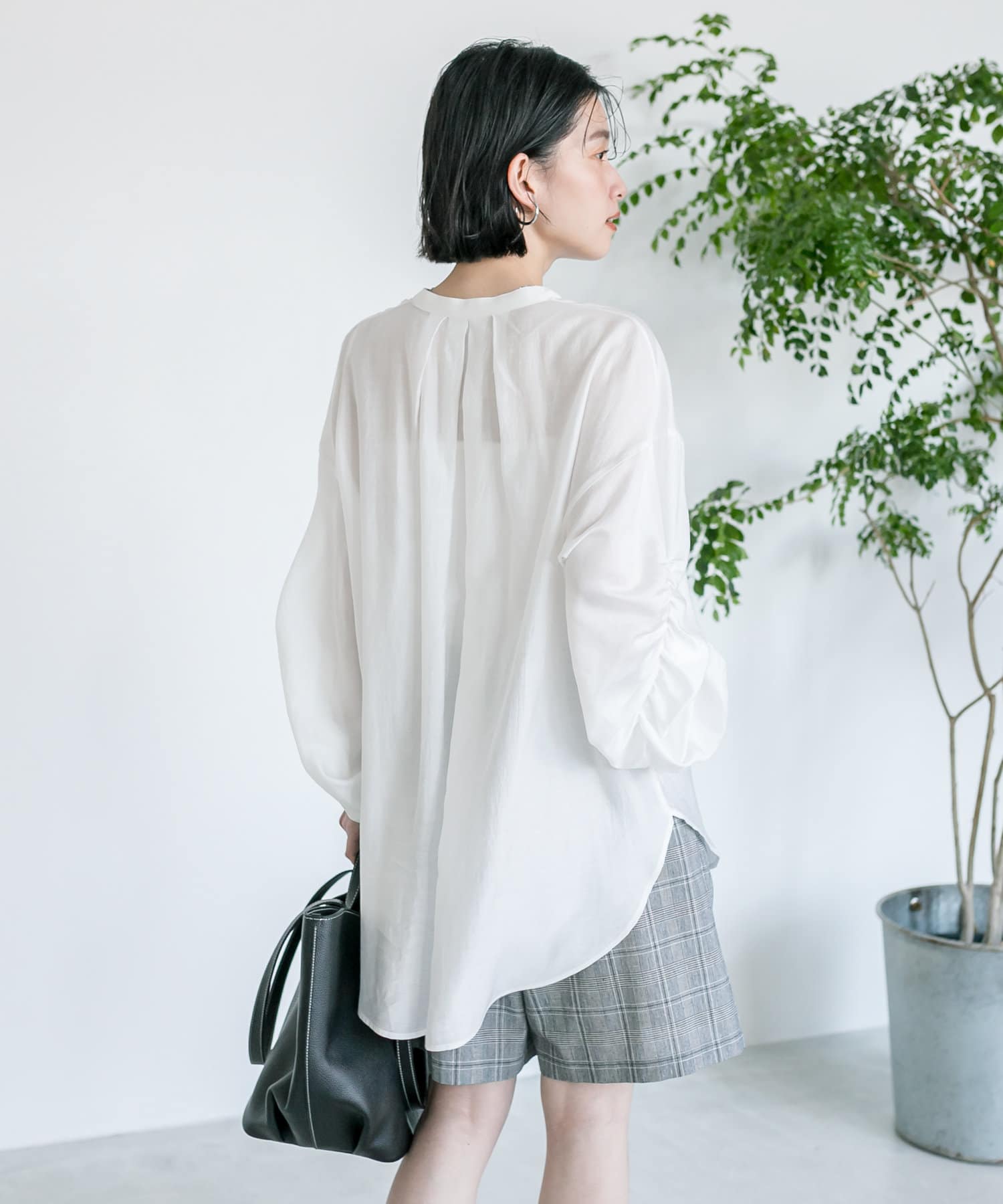 【羽織としても◎】ギャザースリーブシアーシャツ