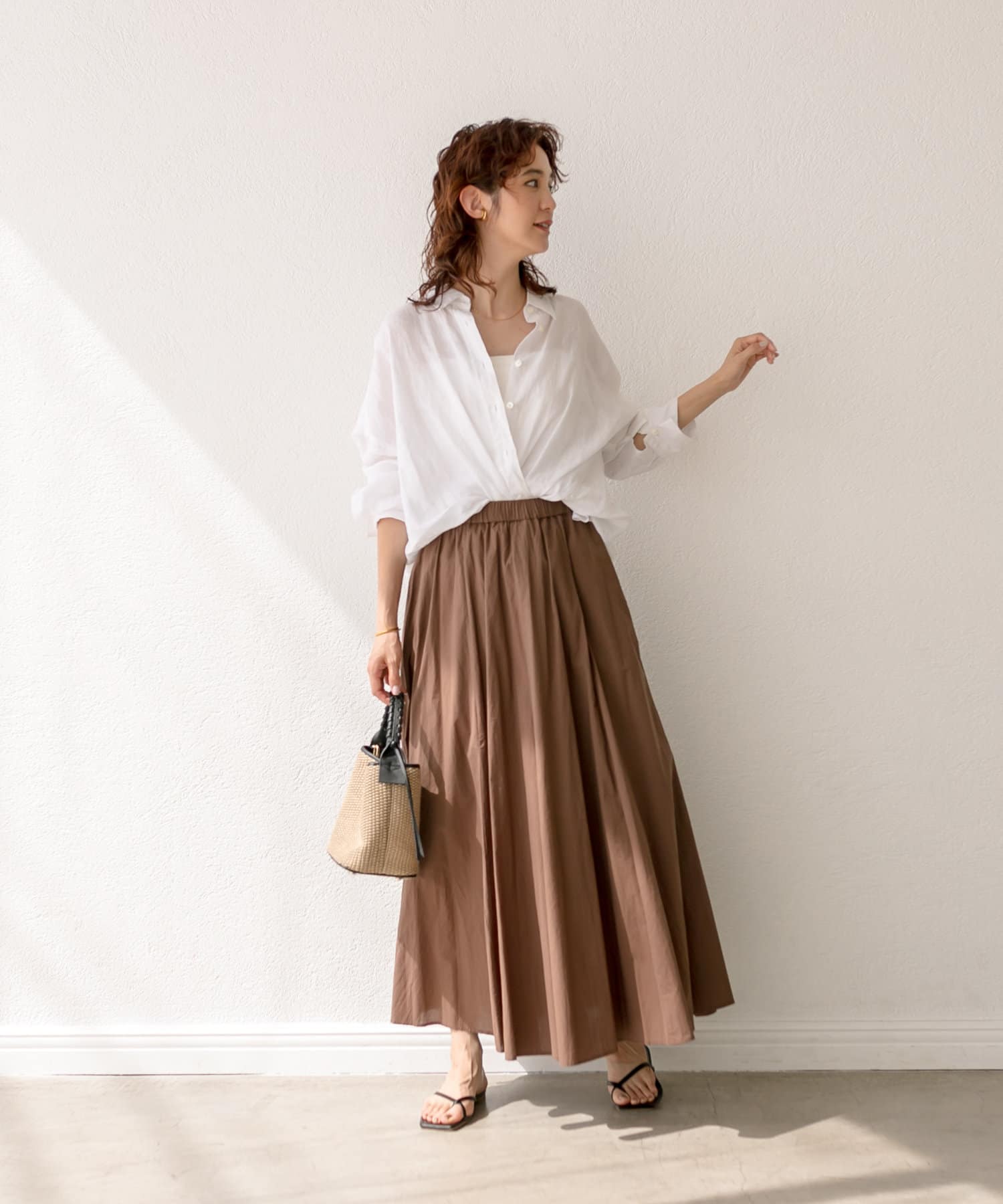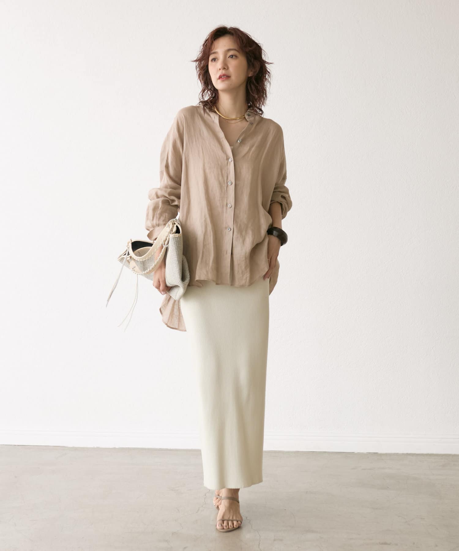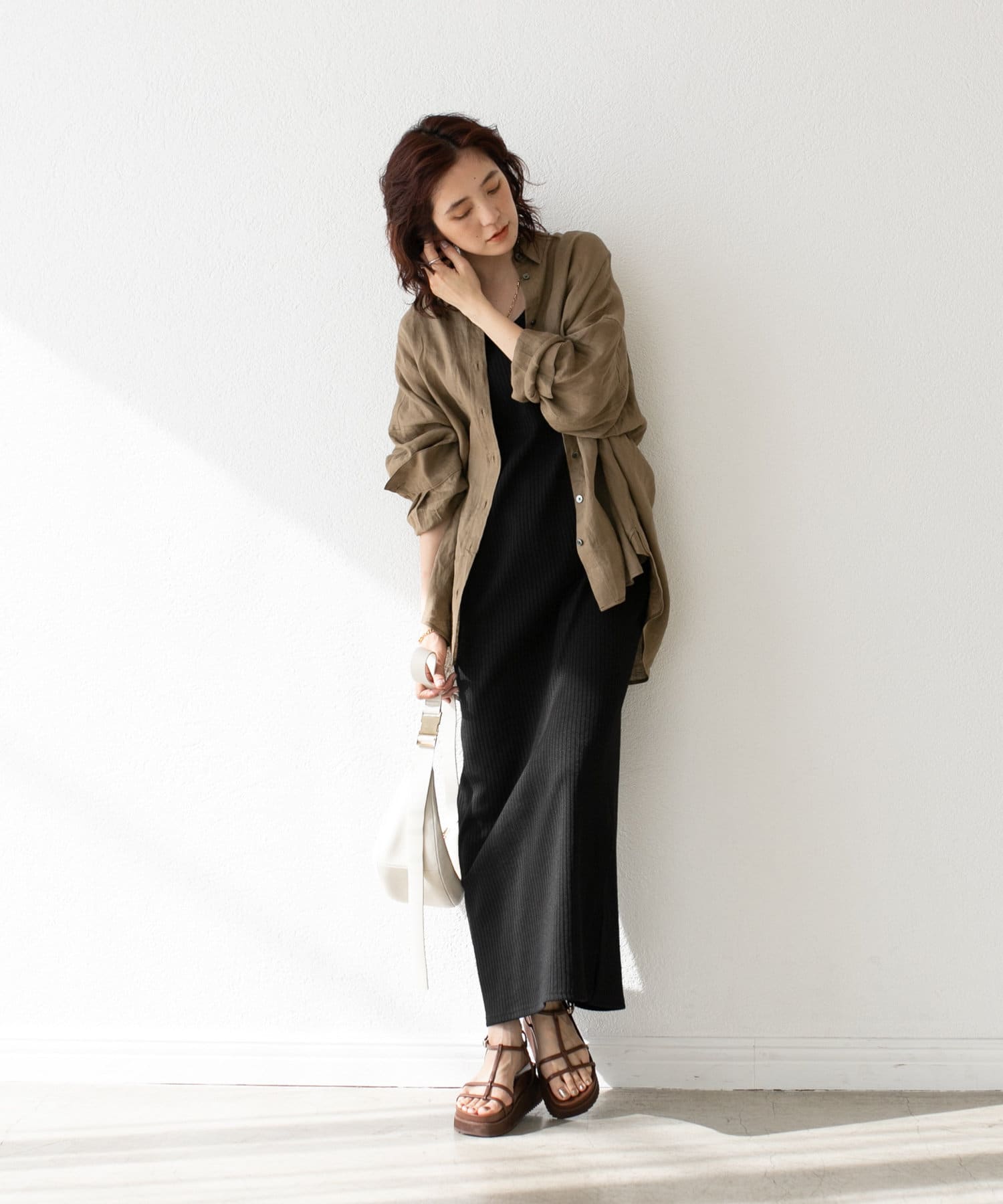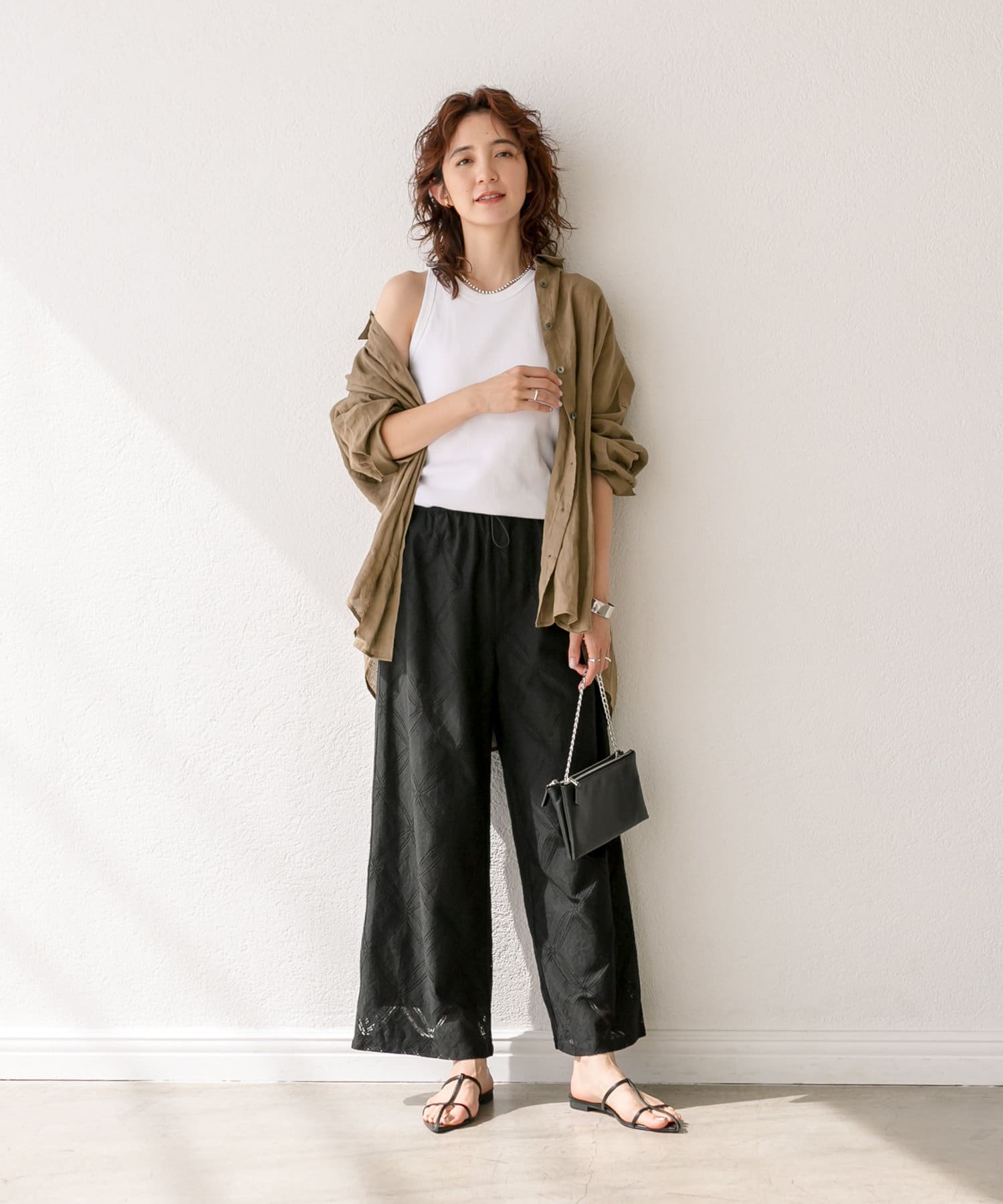 キャミソール着てボトムにシャツをインしても良いし、中にTシャツやタンクトップを着て、羽織りとしても良さそう。