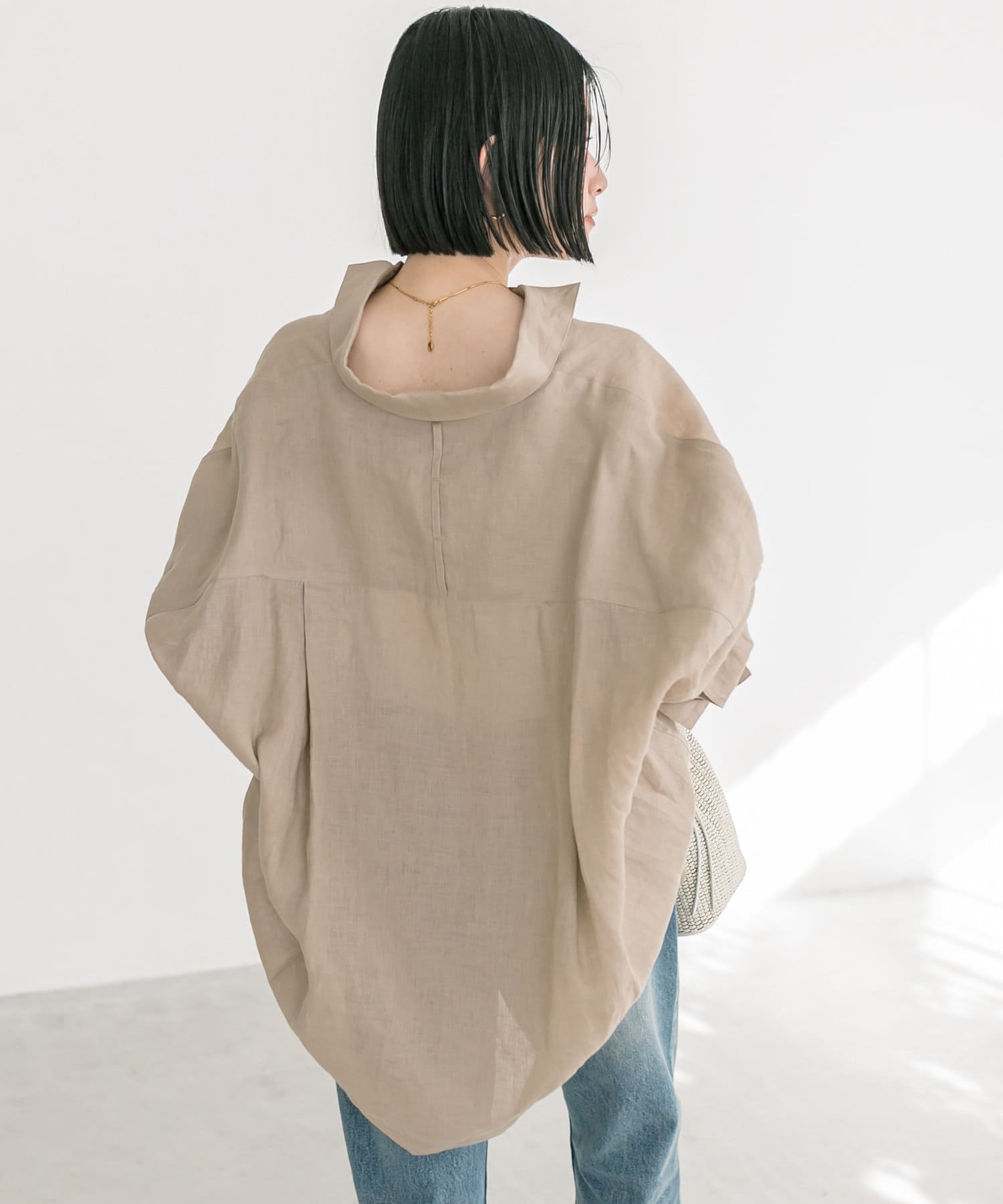 購入場所:店舗店舗で他の物を見に行ったのですがリネンシャツを羽織らせてもらい気に入って購入しました。羽織るだけでさまになる感じで後ろがふわっとして可愛い、色違いも検討してます。