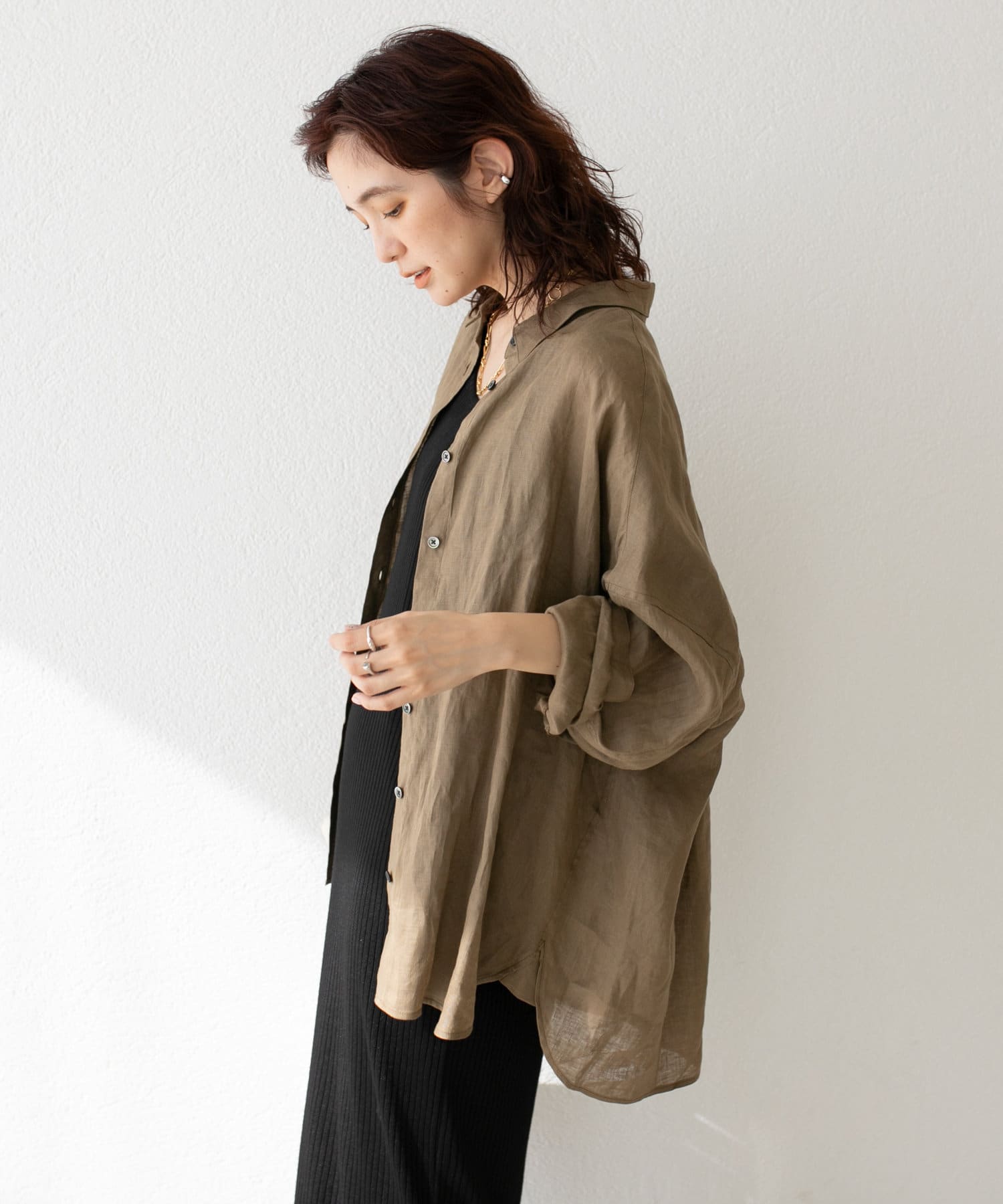 ナチュラルで程よくシアー感のある大人っぽいリネンシャツ。