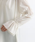 シャーリングディテールと袖口のキャンディスリーブが華やかなさを出してくれる一枚。
