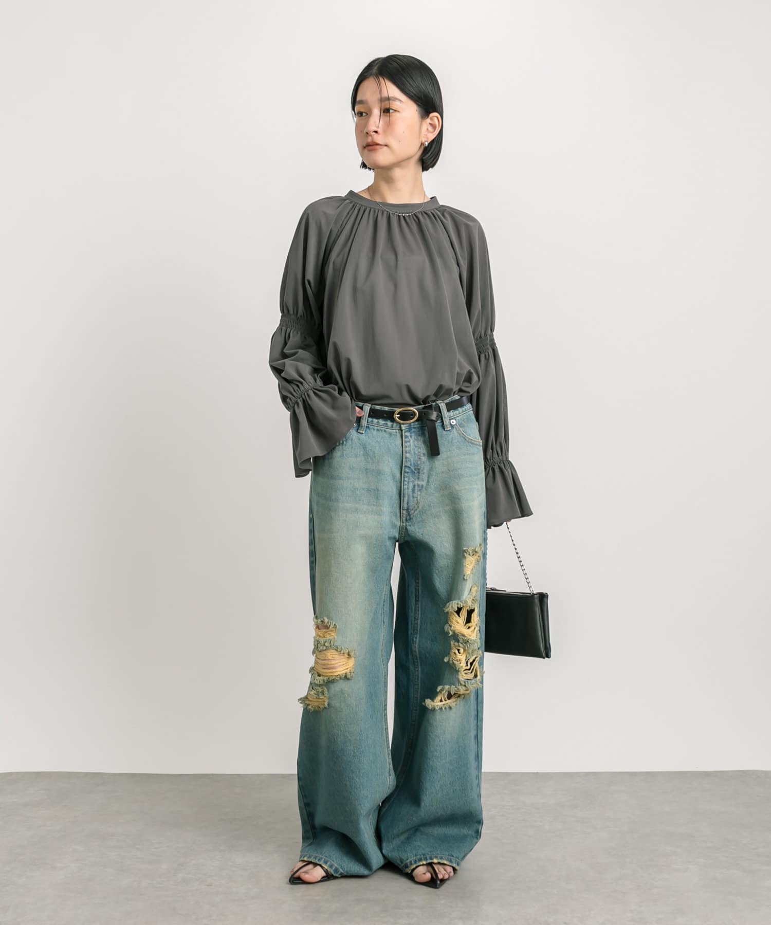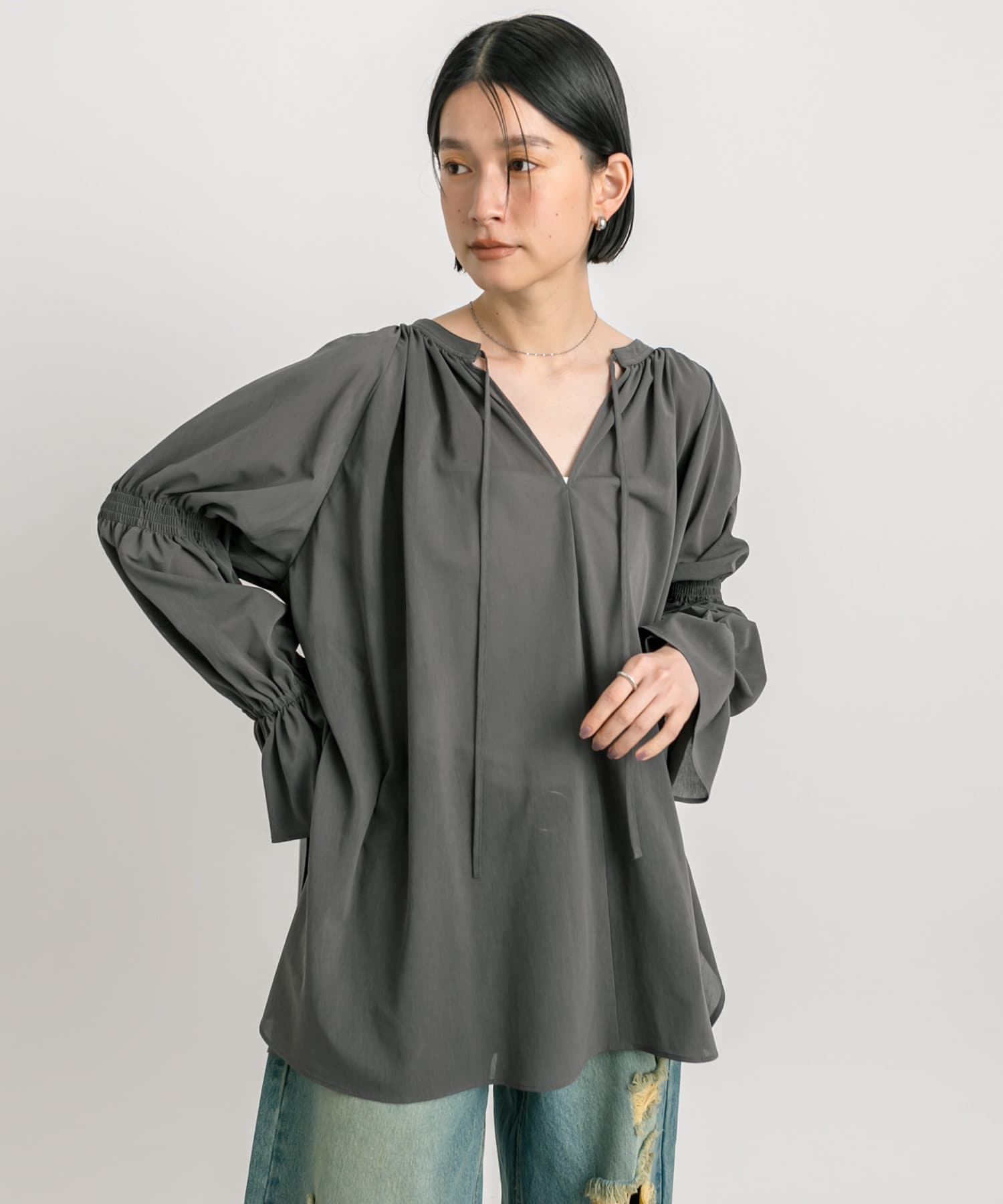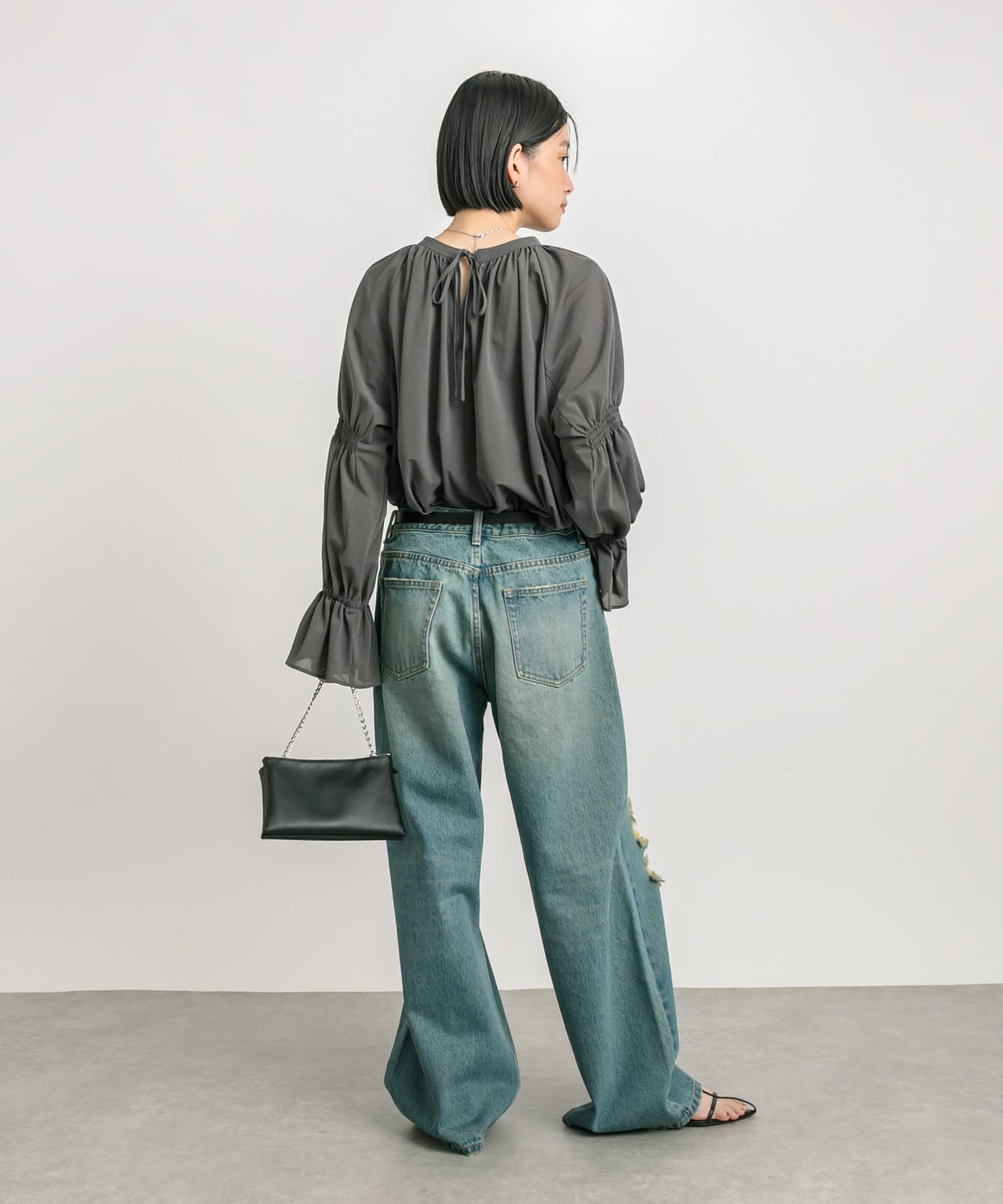 【前後2WAY】シャーリングスリーブ2wayブラウス