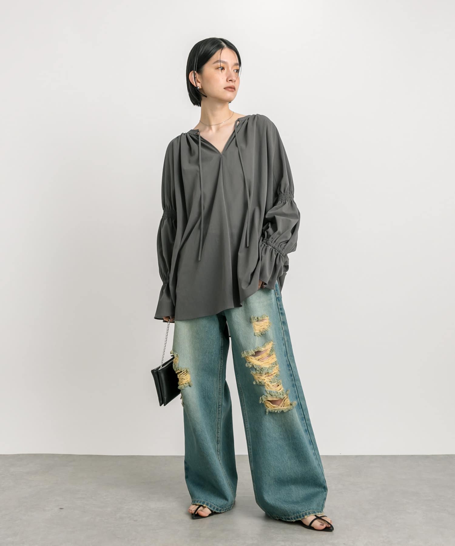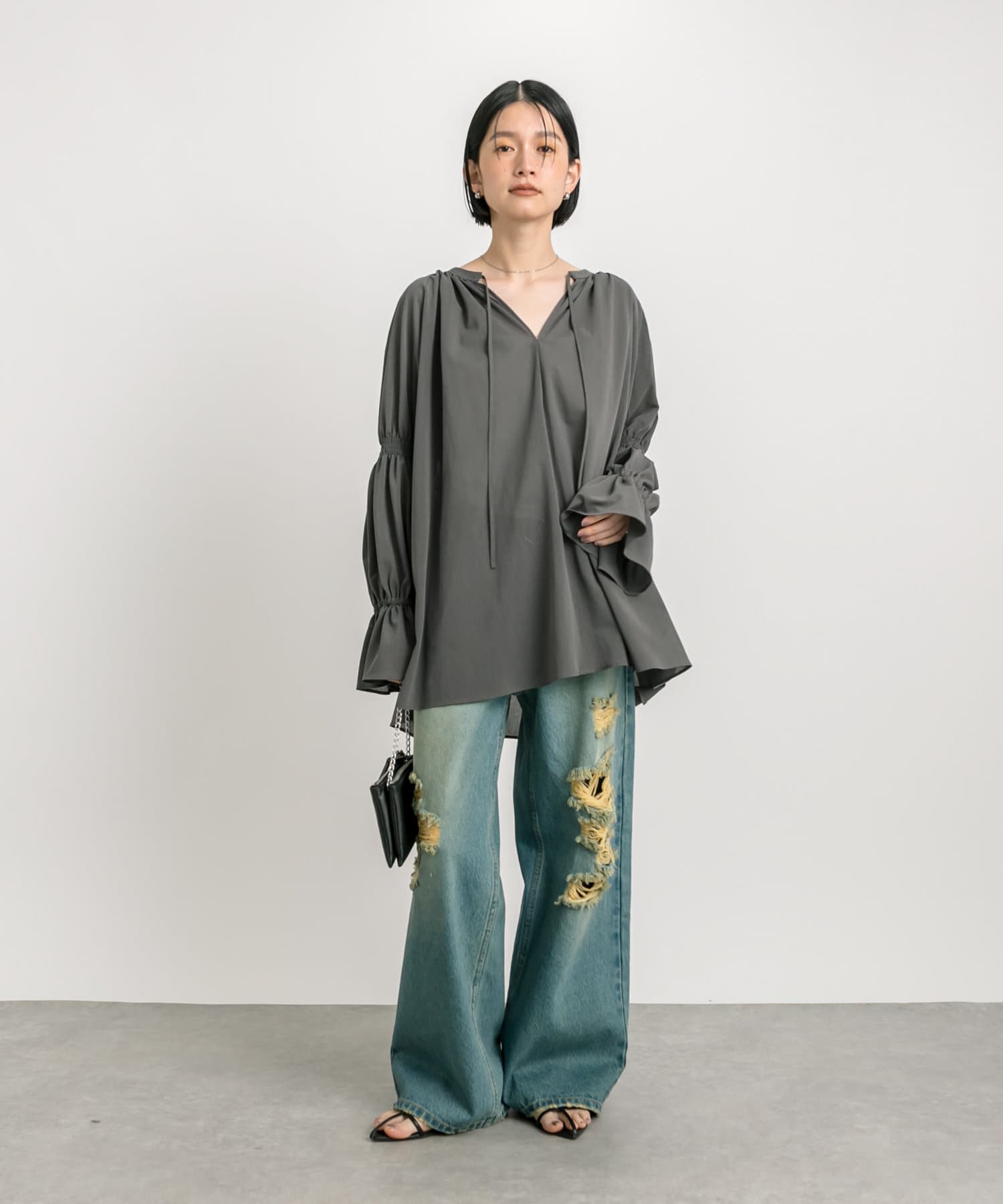 前後2wayで着用いただける、袖のディテールがポイントのブラウスです。