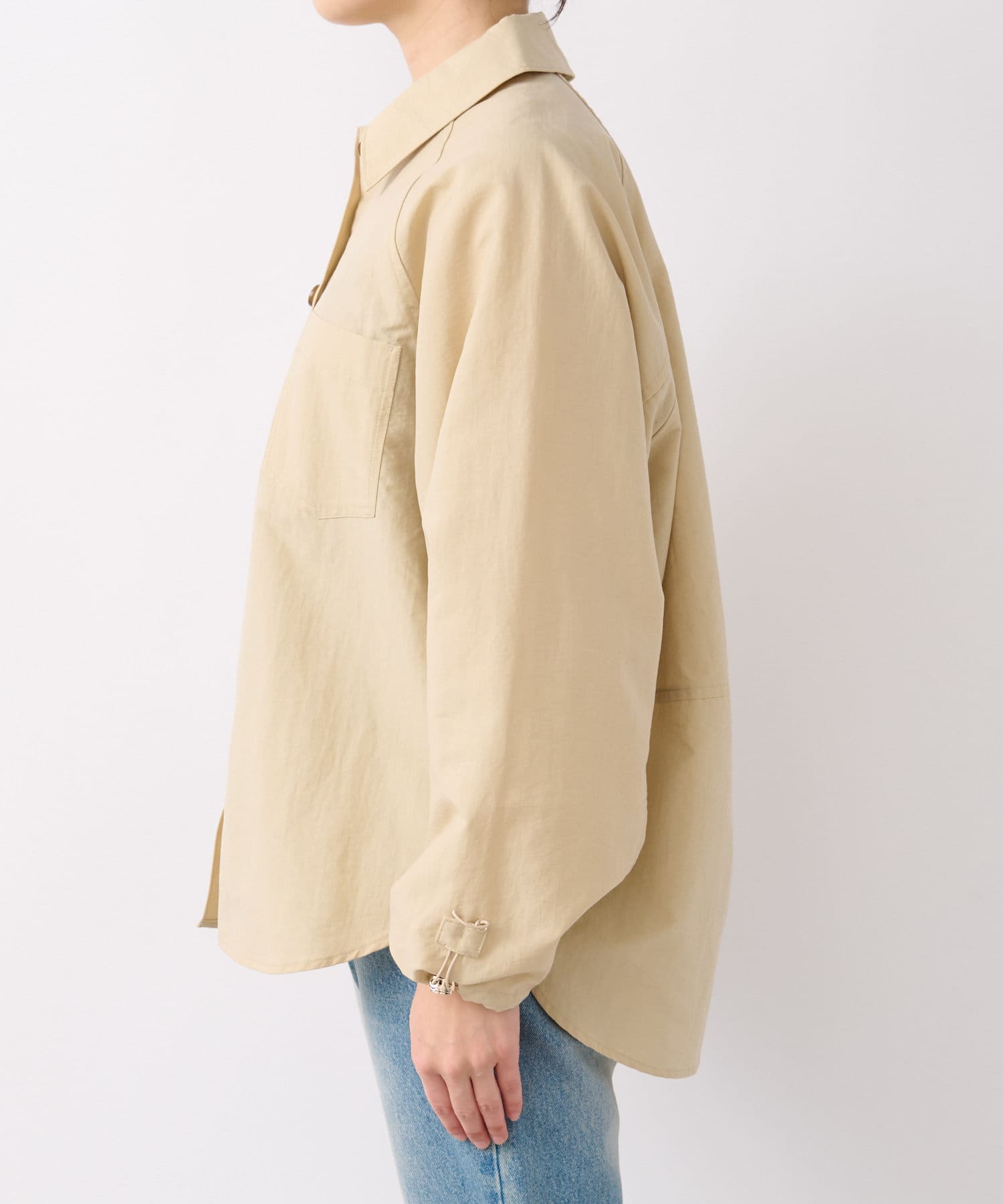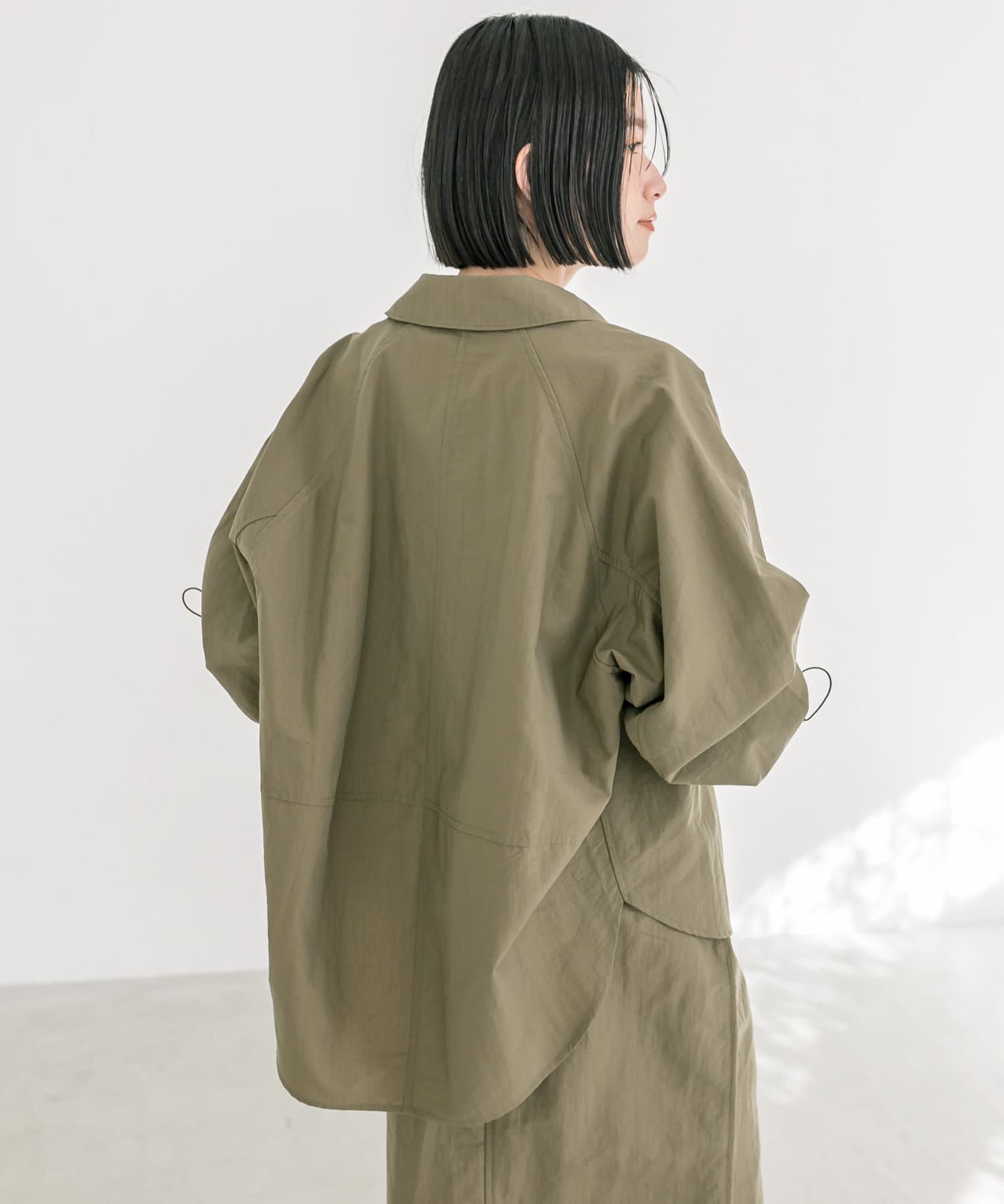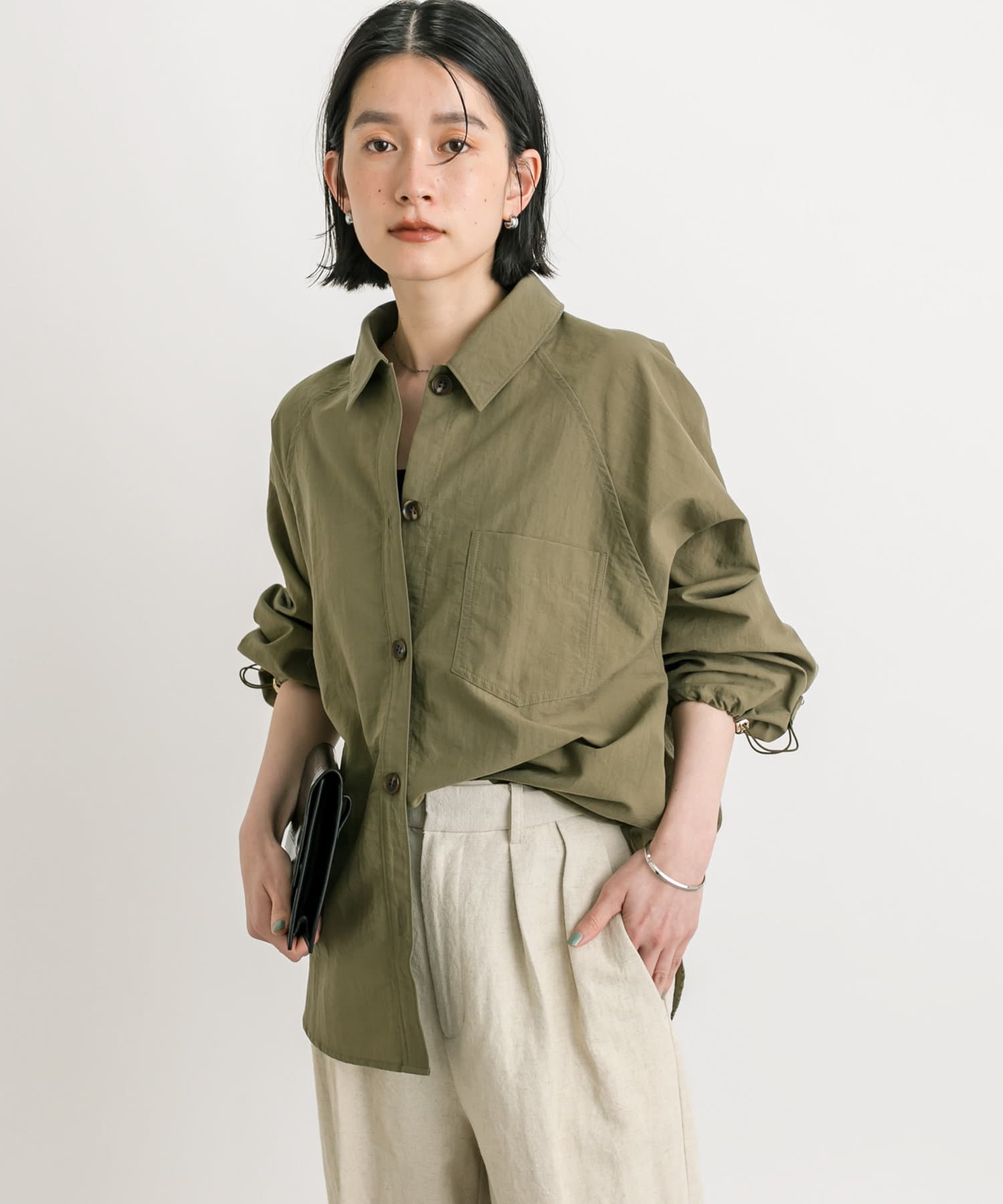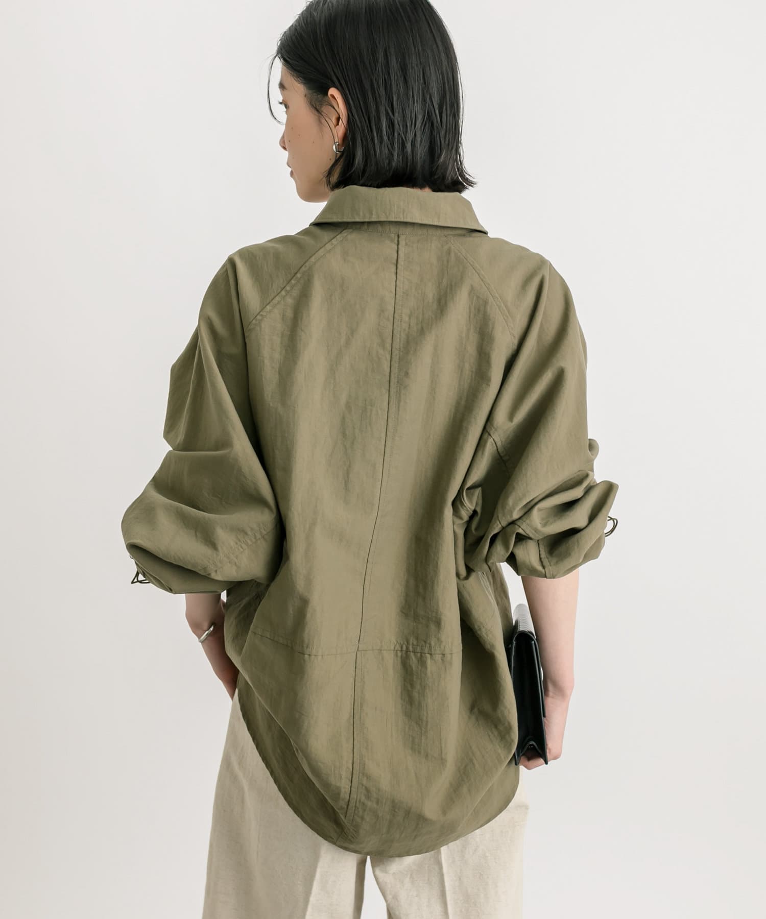 袖の部分はドロストになっており、裾をきゅっと絞っていただくと袖をまくらなくても袖丈を調整できます。