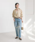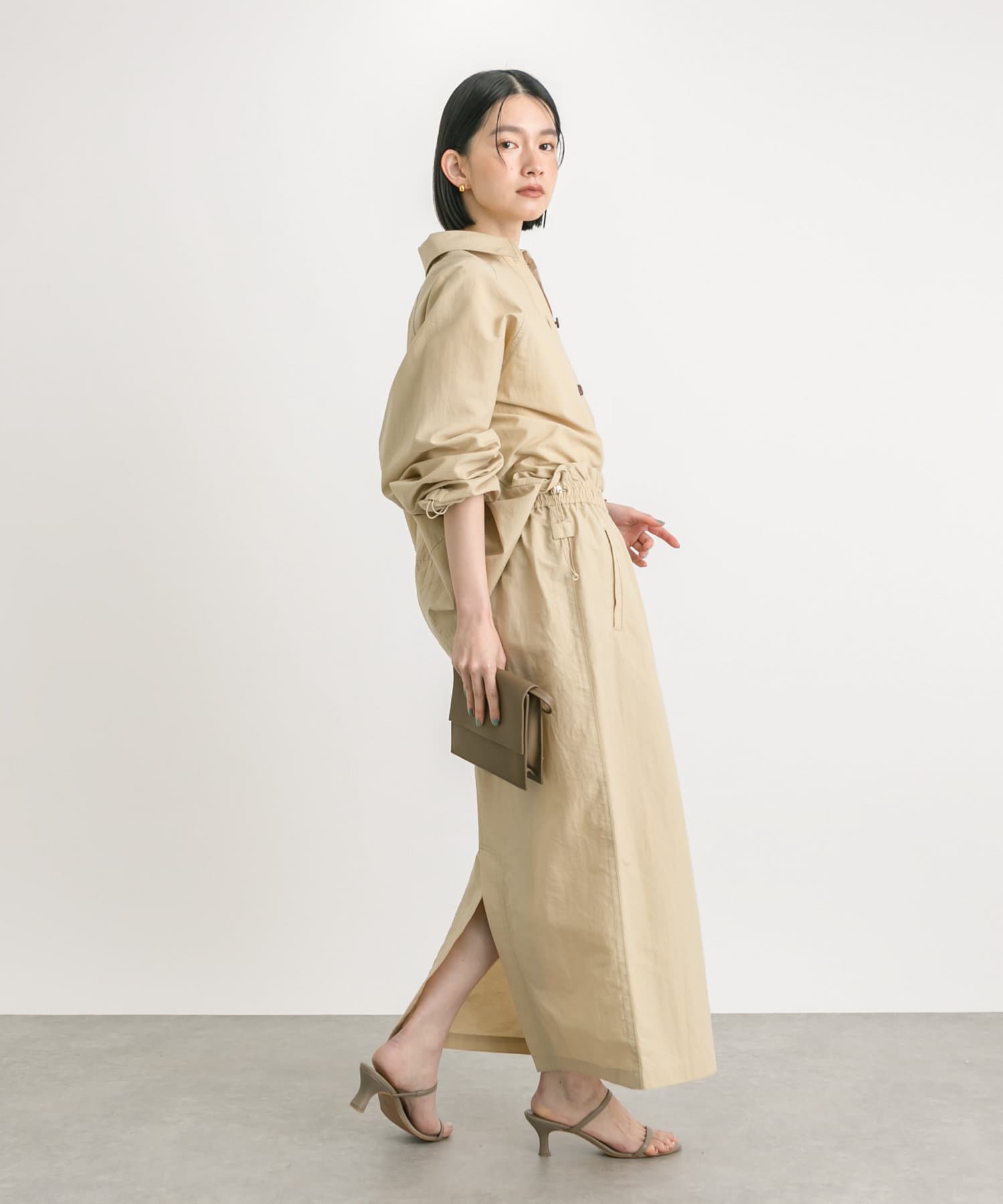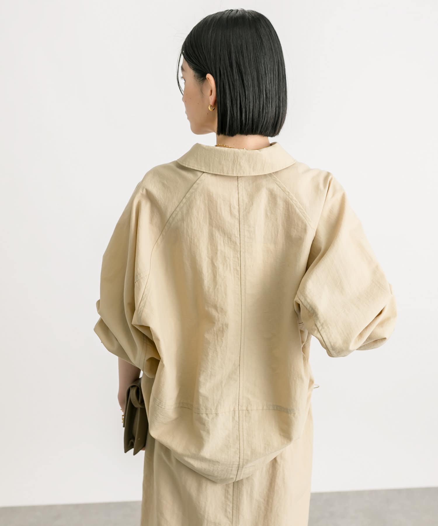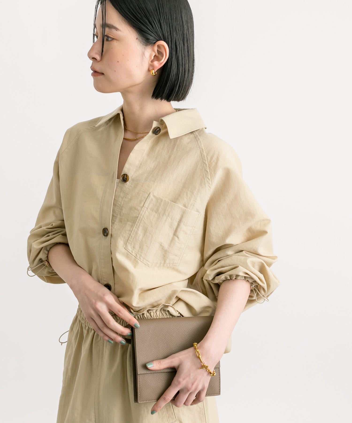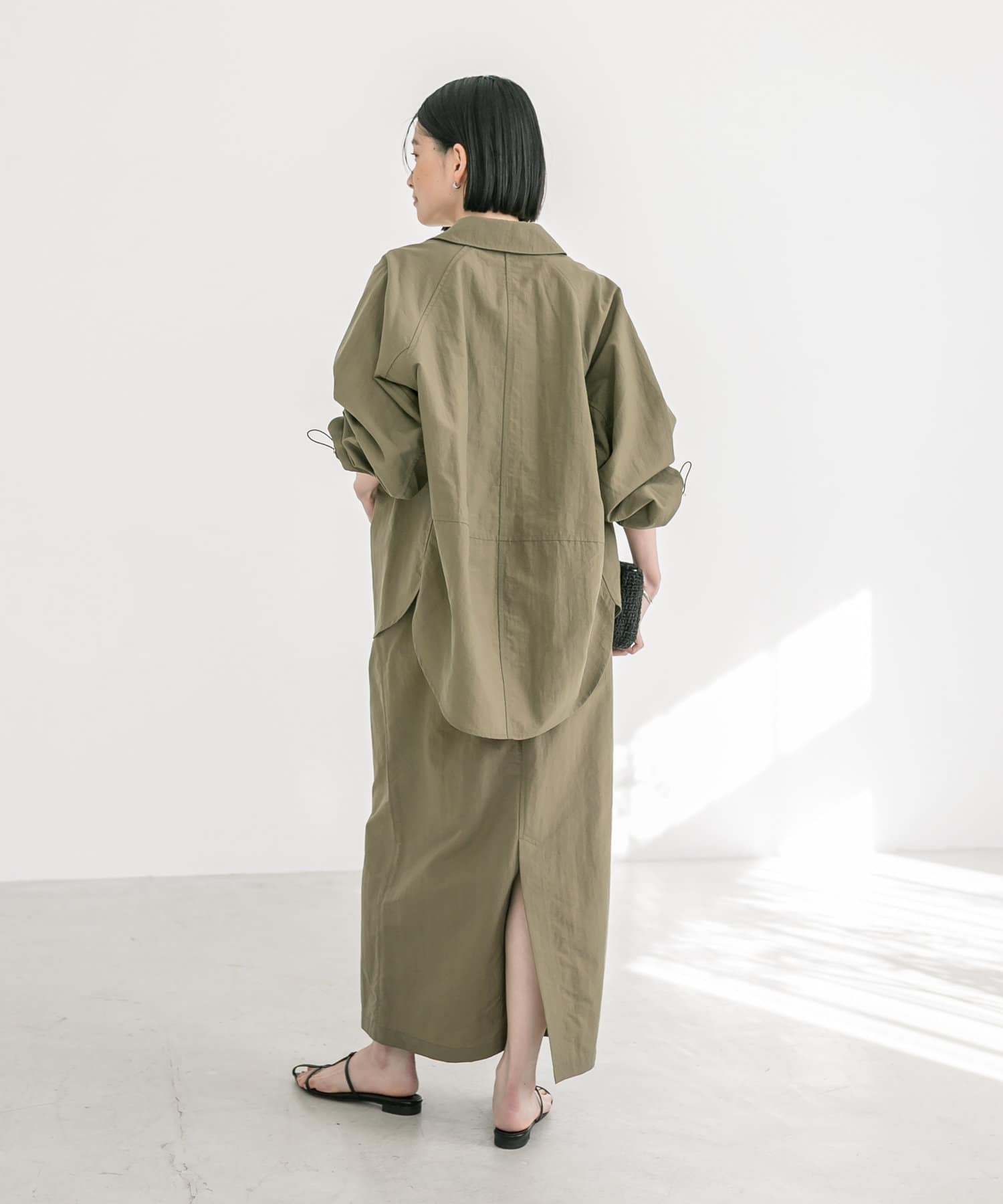 袖の部分はドロストになっており、裾をきゅっと絞っていただくと袖をまくらなくても袖丈を調整できます。