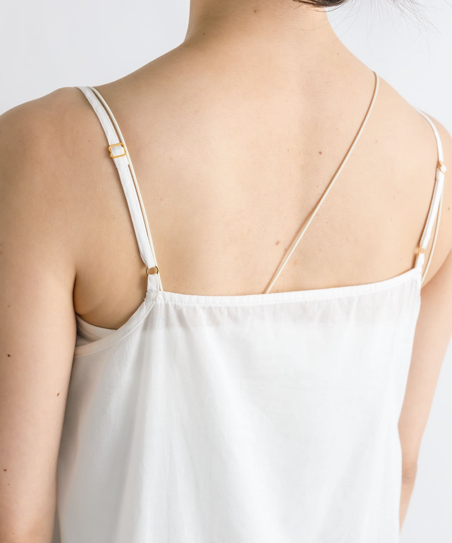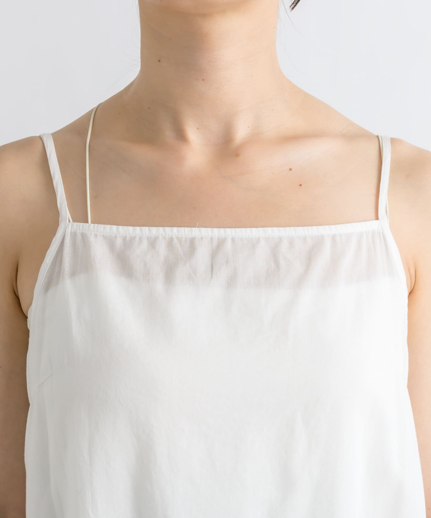 調節可能なストラップ仕様でお好みの着丈に調節が可能。手持ちのブラトップやタンクトップ、シアーTシャツとのレイヤードに使っていただけます。
