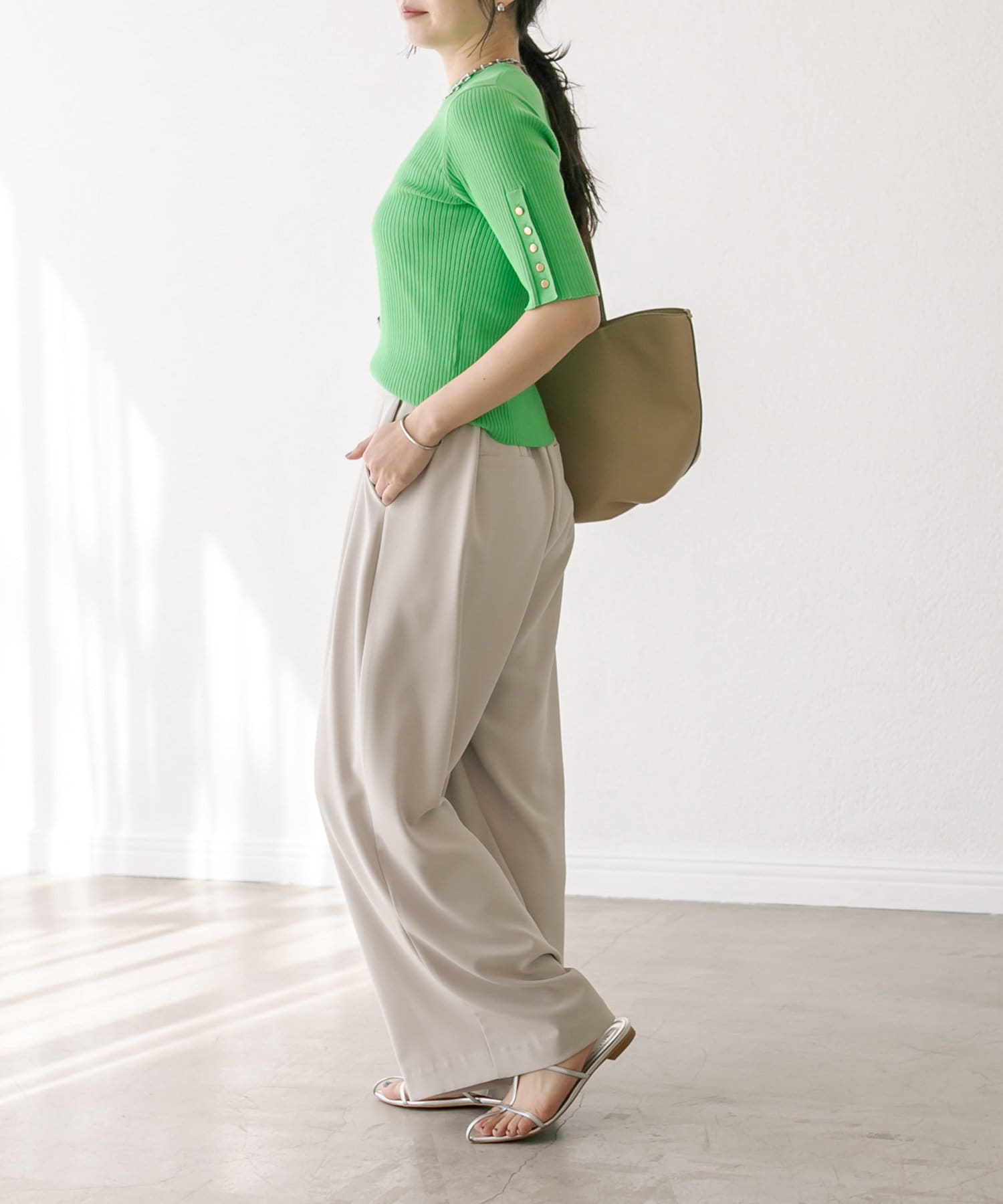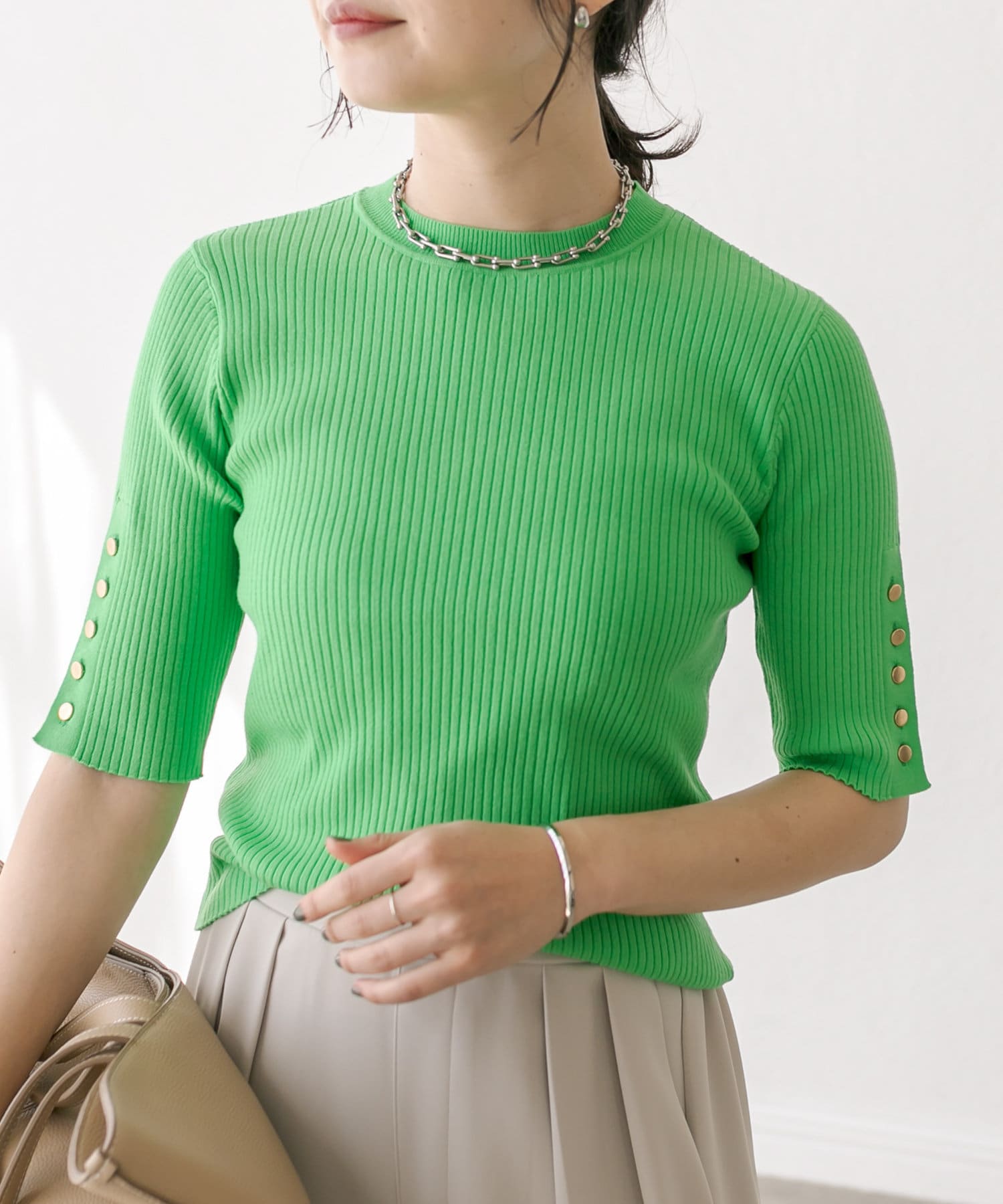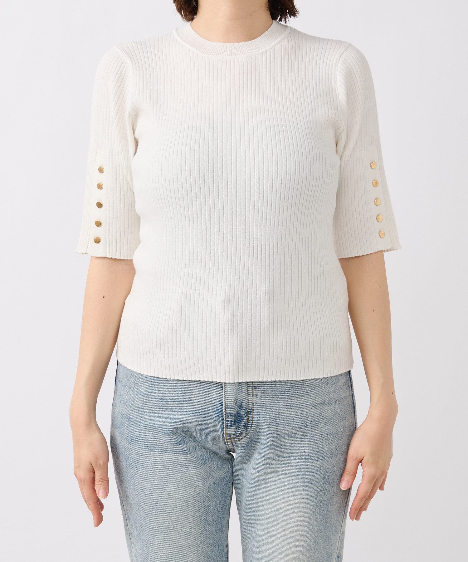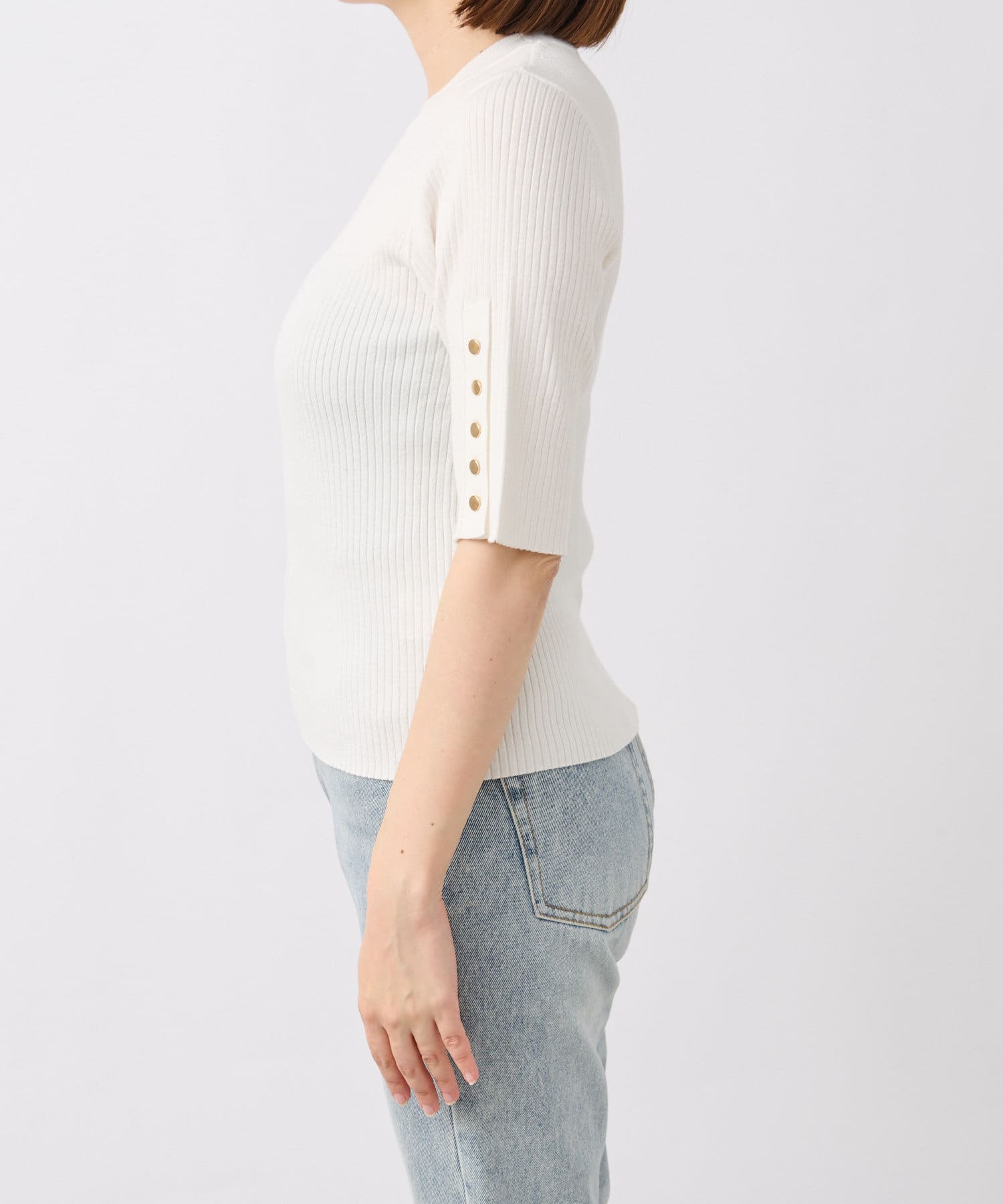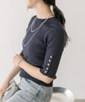 【オンオフ着れる】ハーフスリーブボタンニット