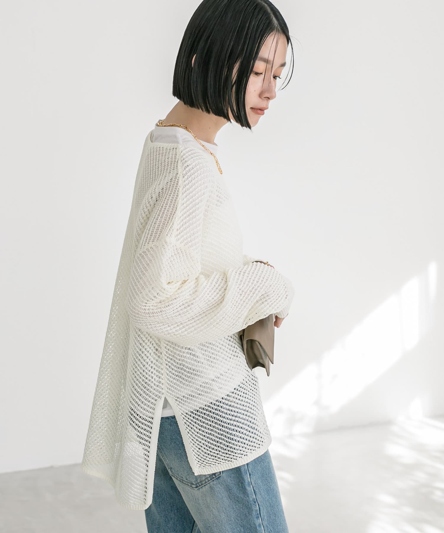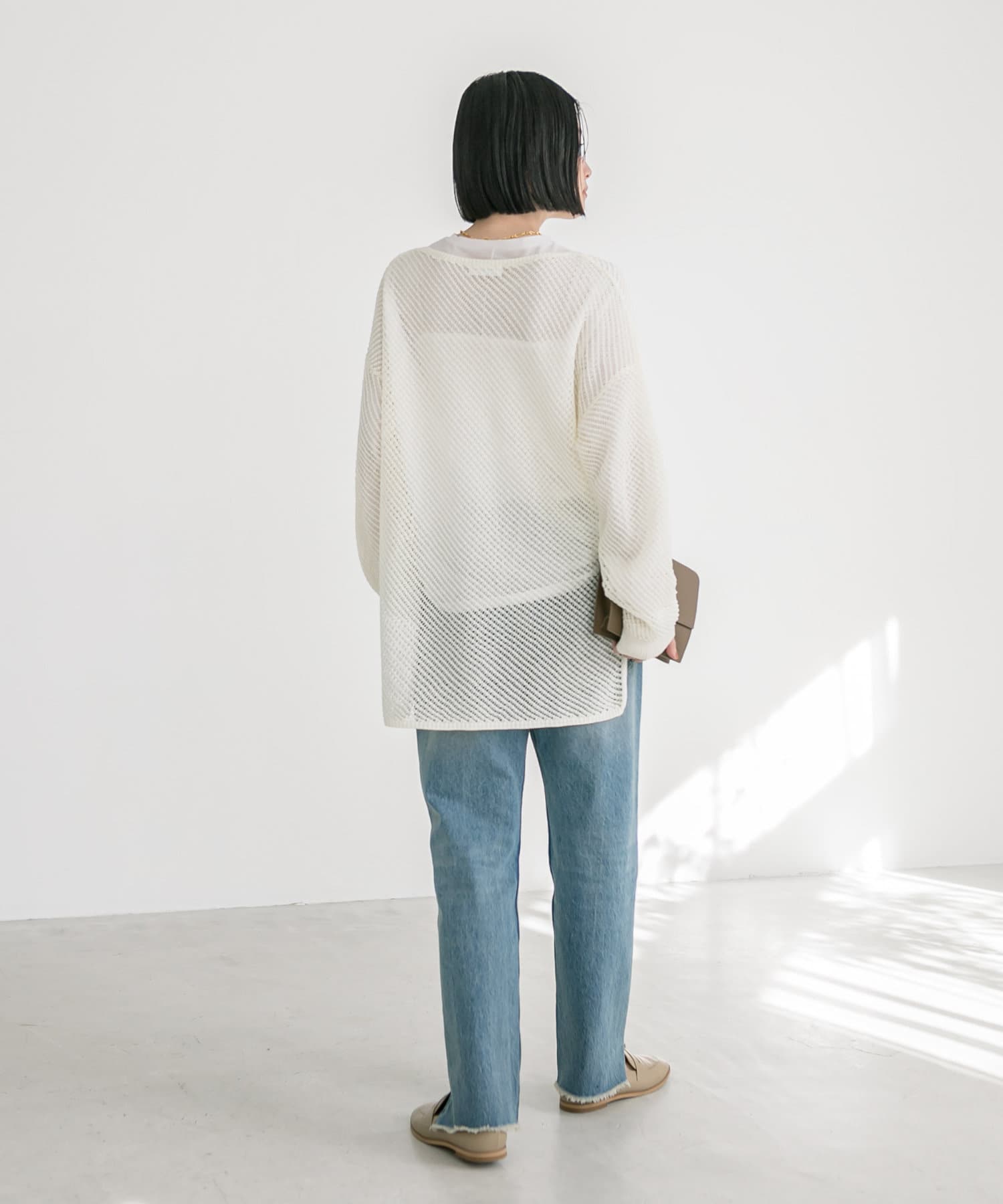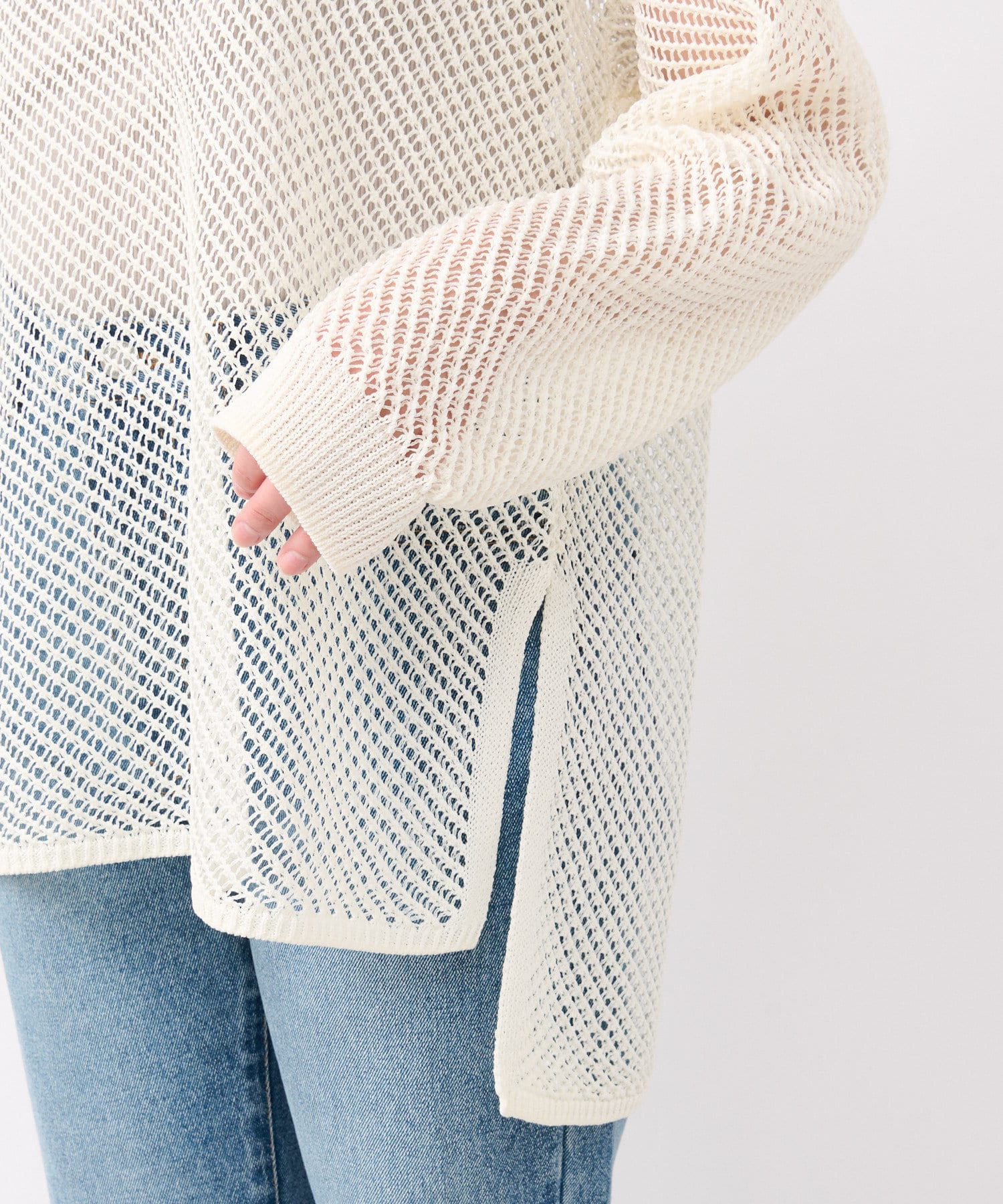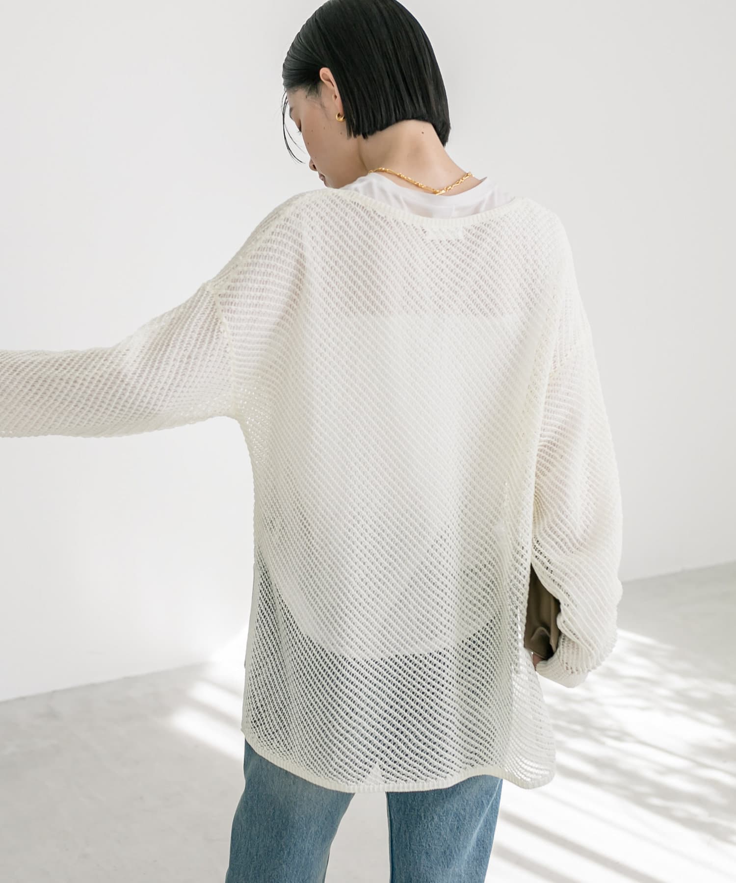 ざっくりとラフなメッシュのナチュラルな透け感と、体型カバーできる着丈が大人にピッタリ。