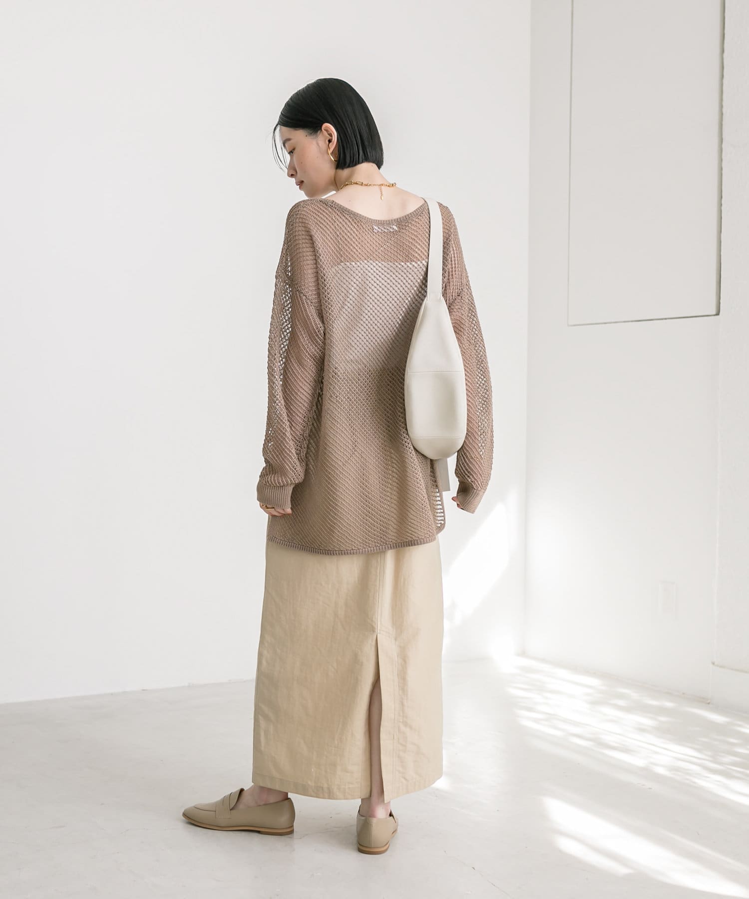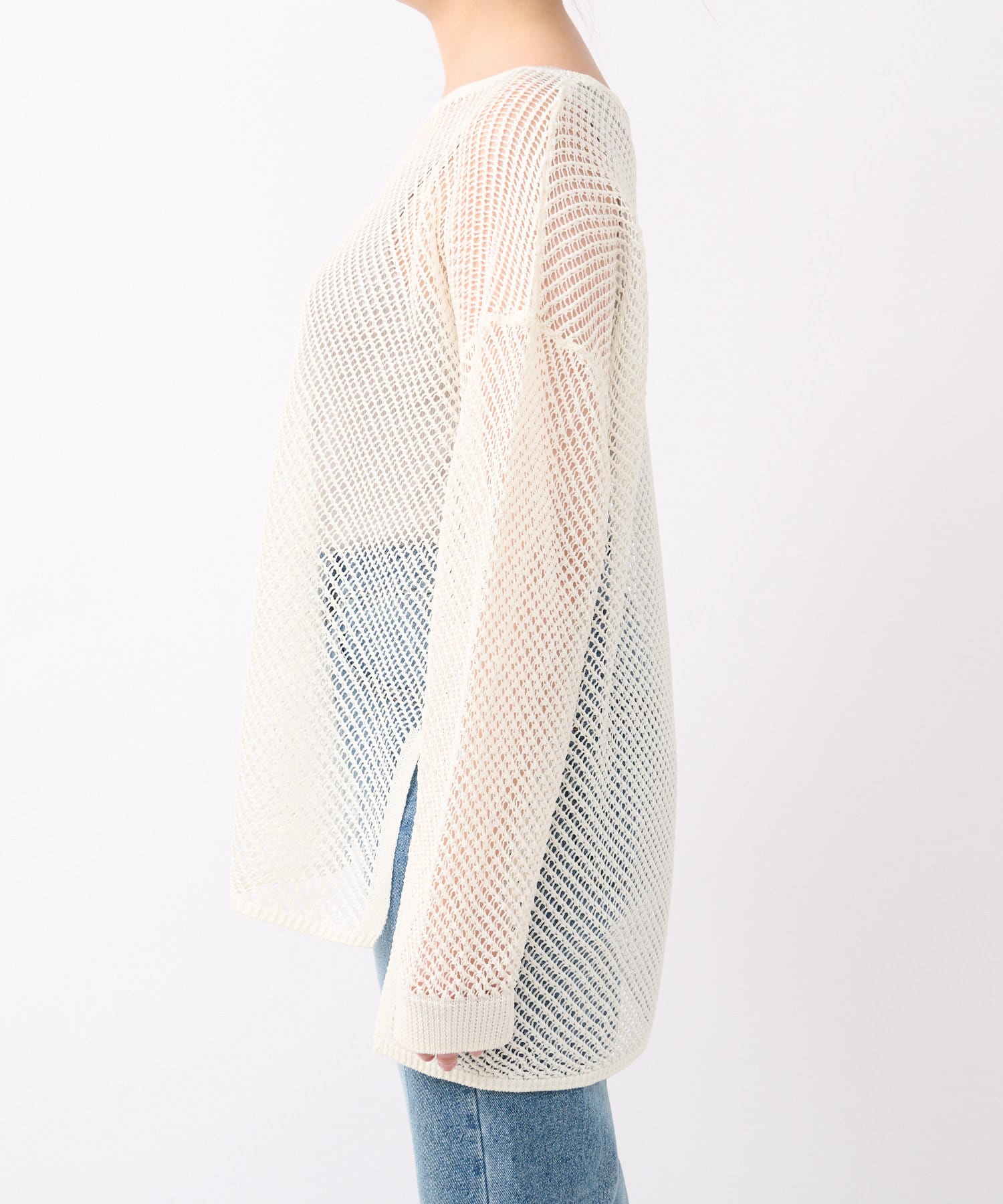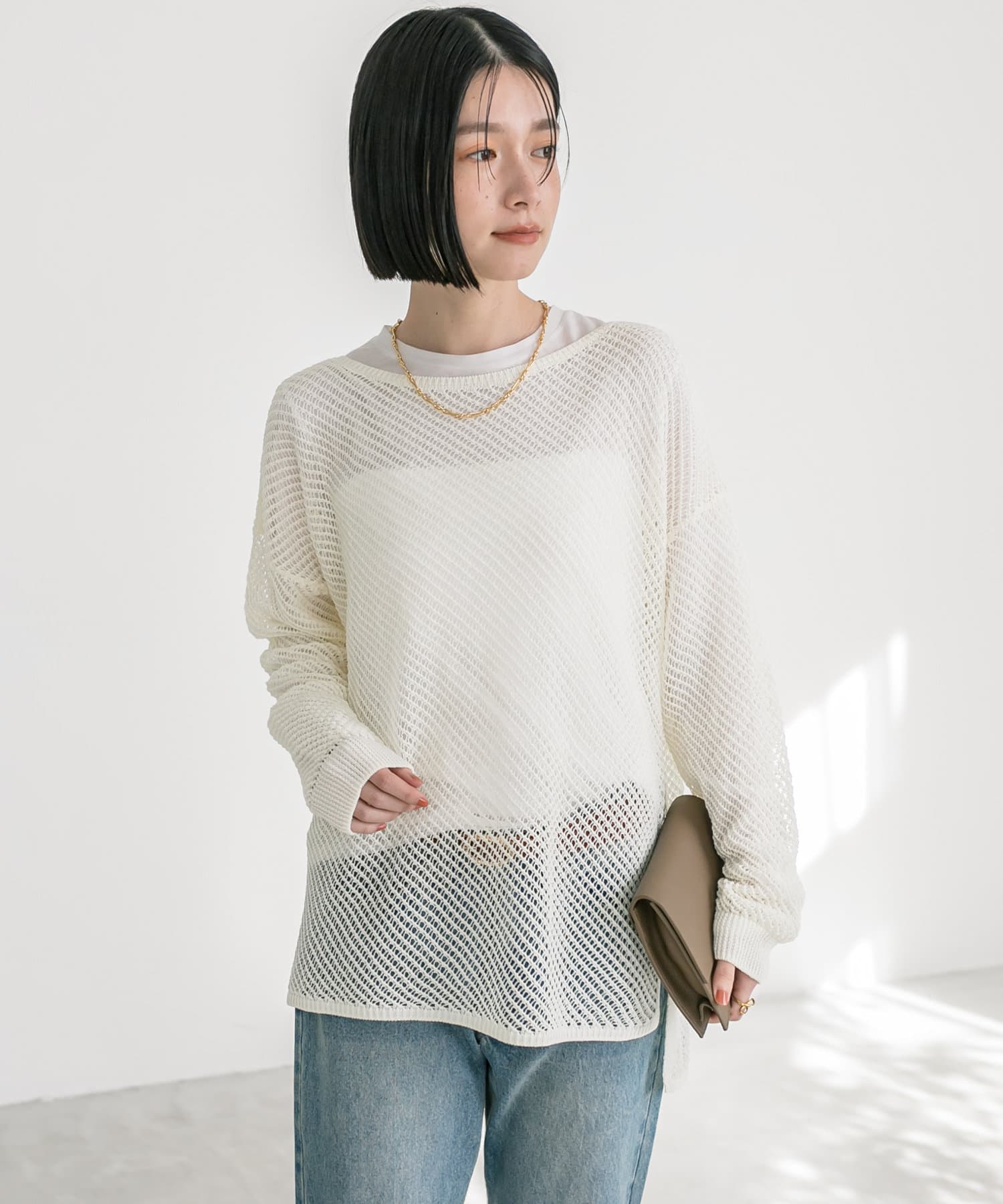 ざっくりとラフなメッシュのナチュラルな透け感と、体型カバーできる着丈が大人にピッタリ。