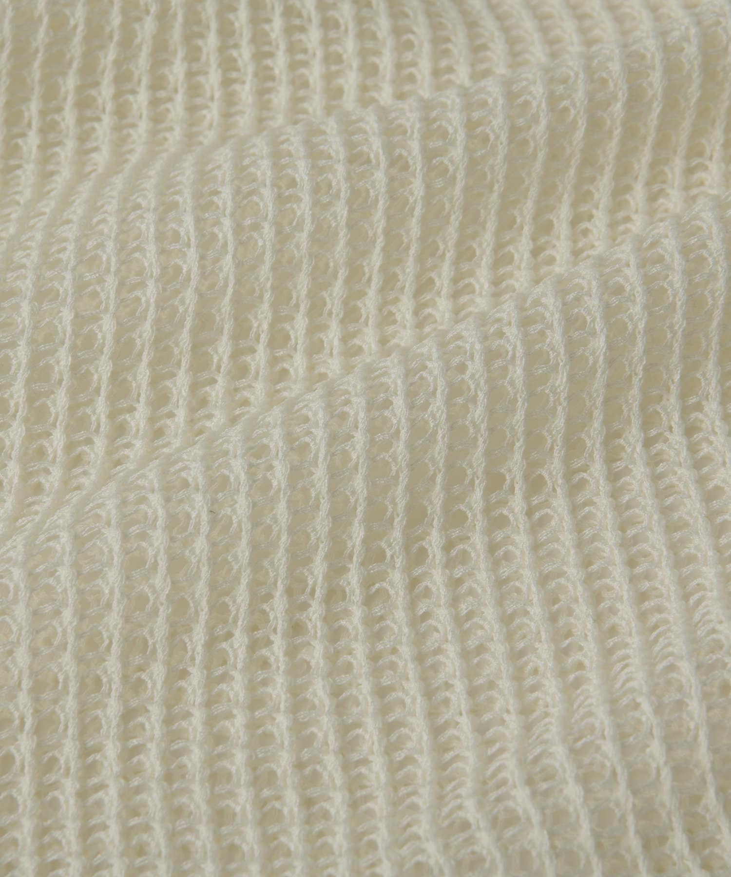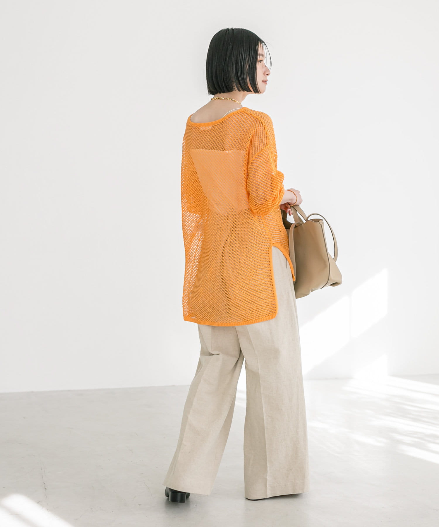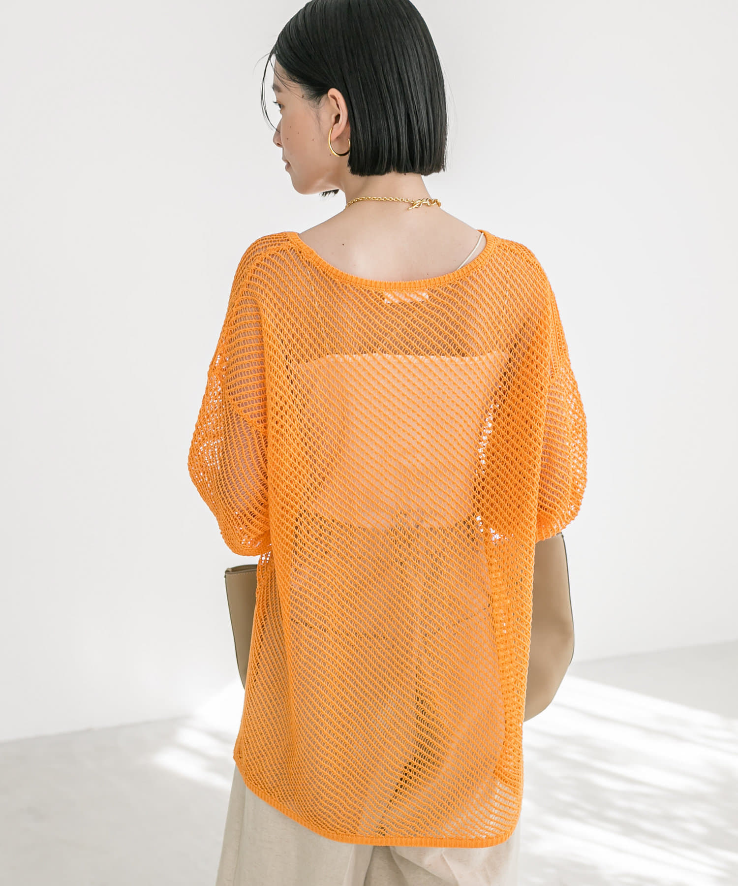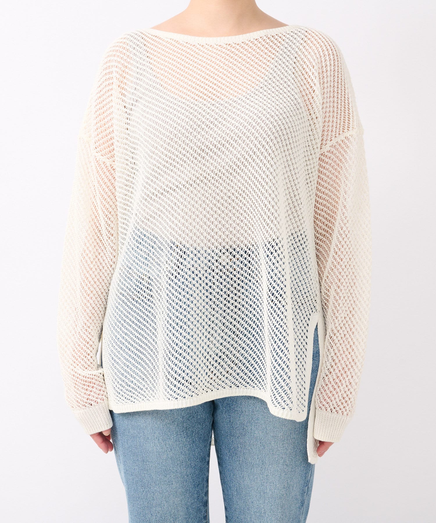 ざっくりとラフなメッシュのナチュラルな透け感と、体型カバーできる着丈が大人にピッタリ。