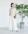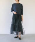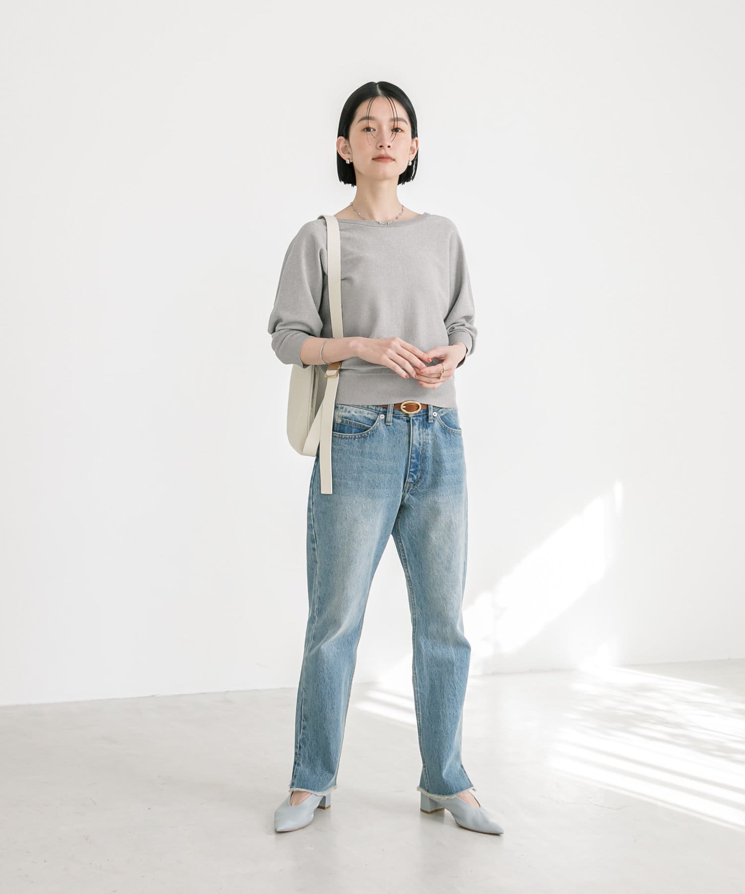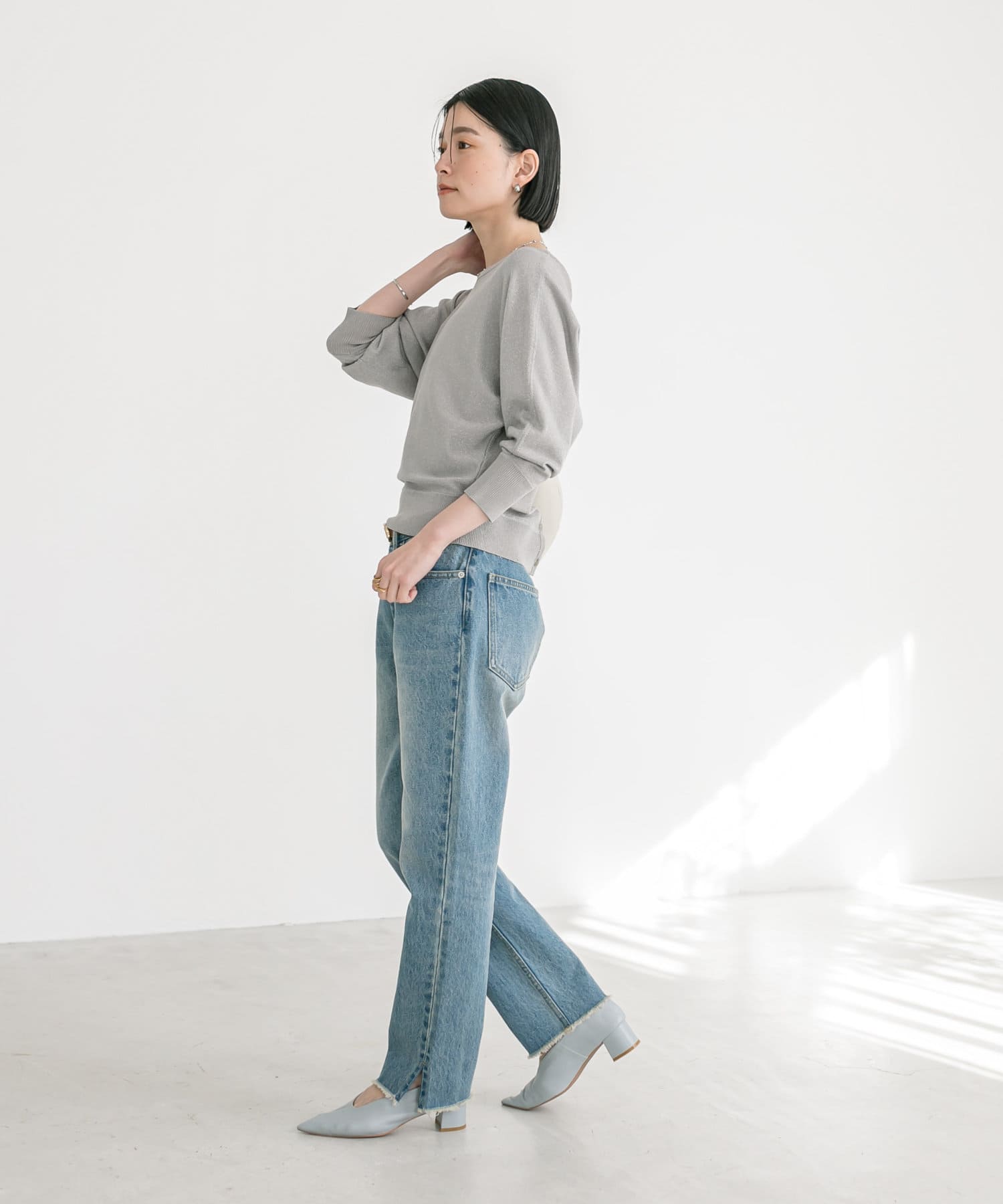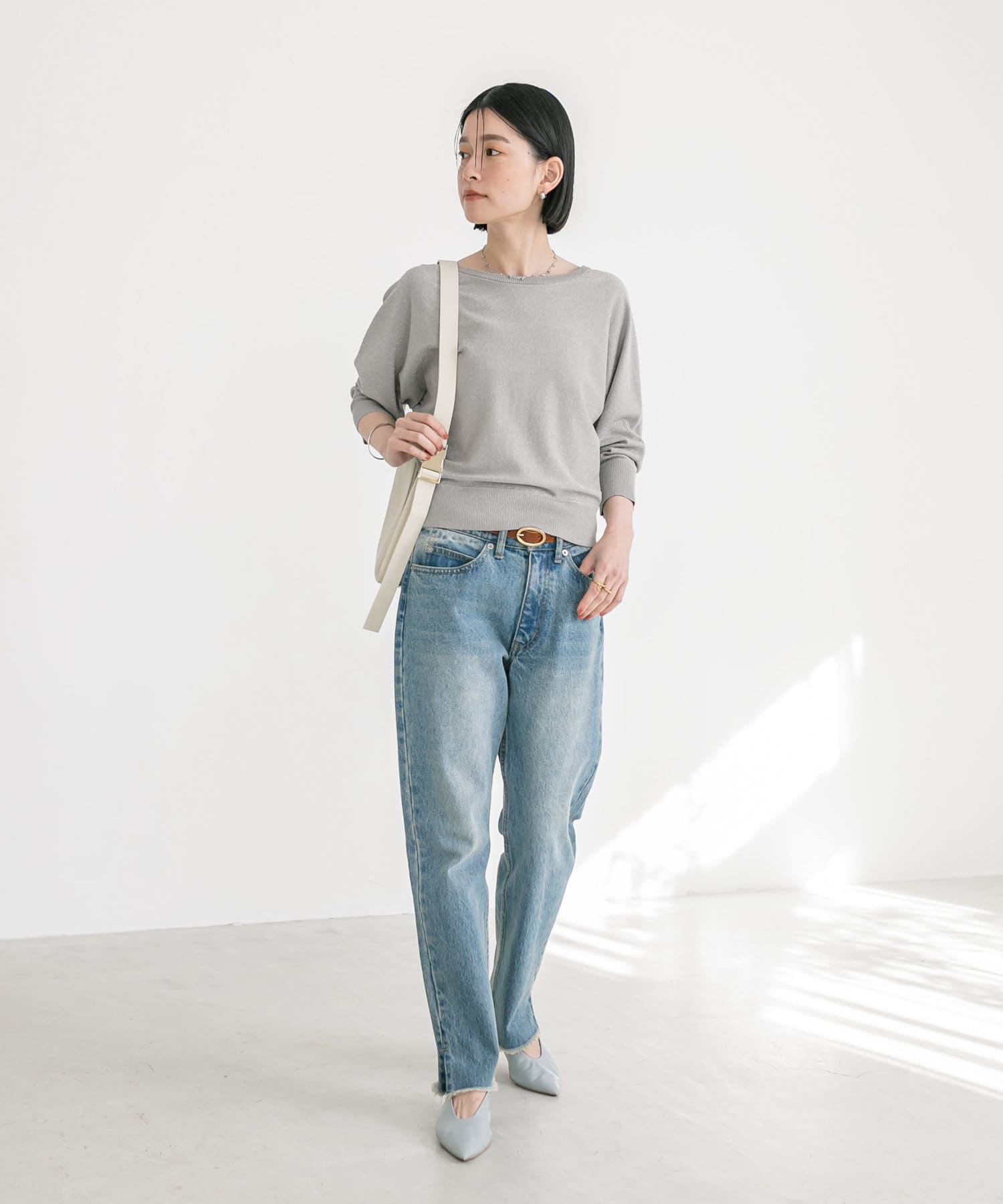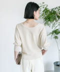 ゆったりとした袖に対し、ウエストのリブがコンパクトな印象を与える、メリハリの効いた一枚です。