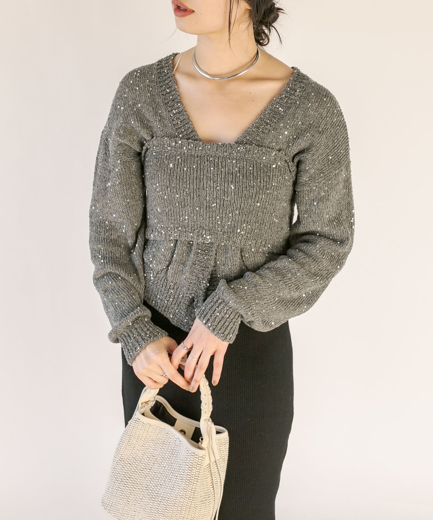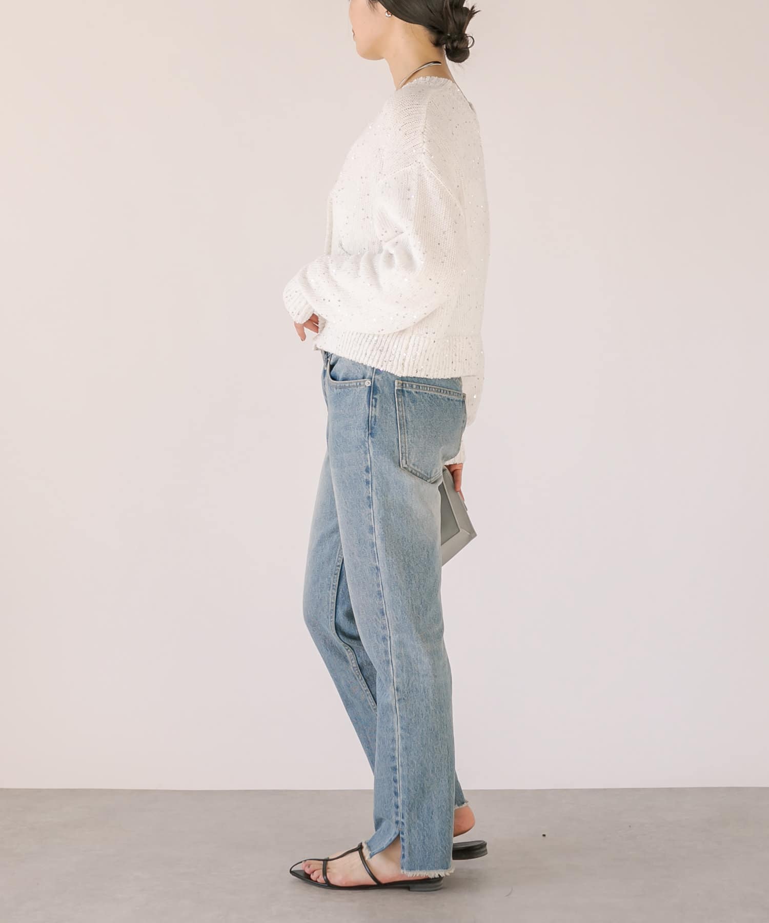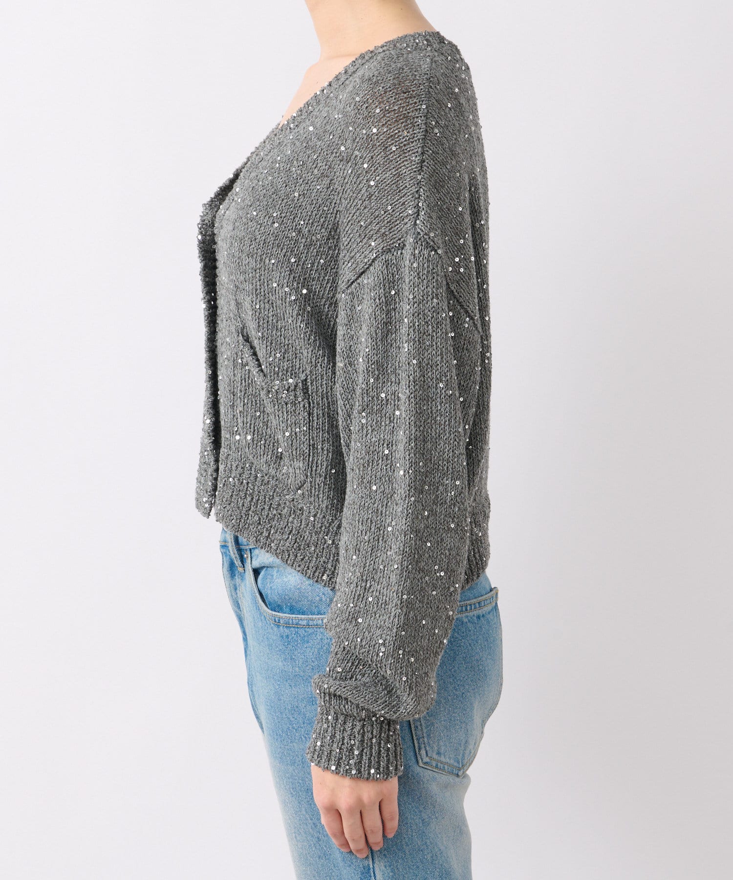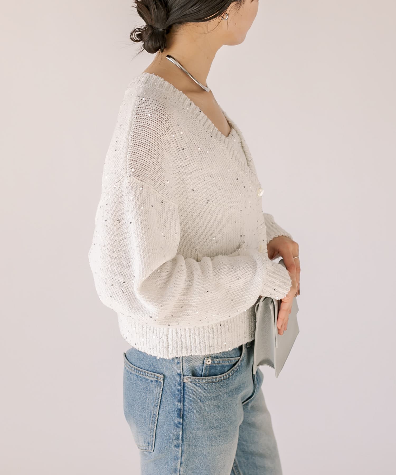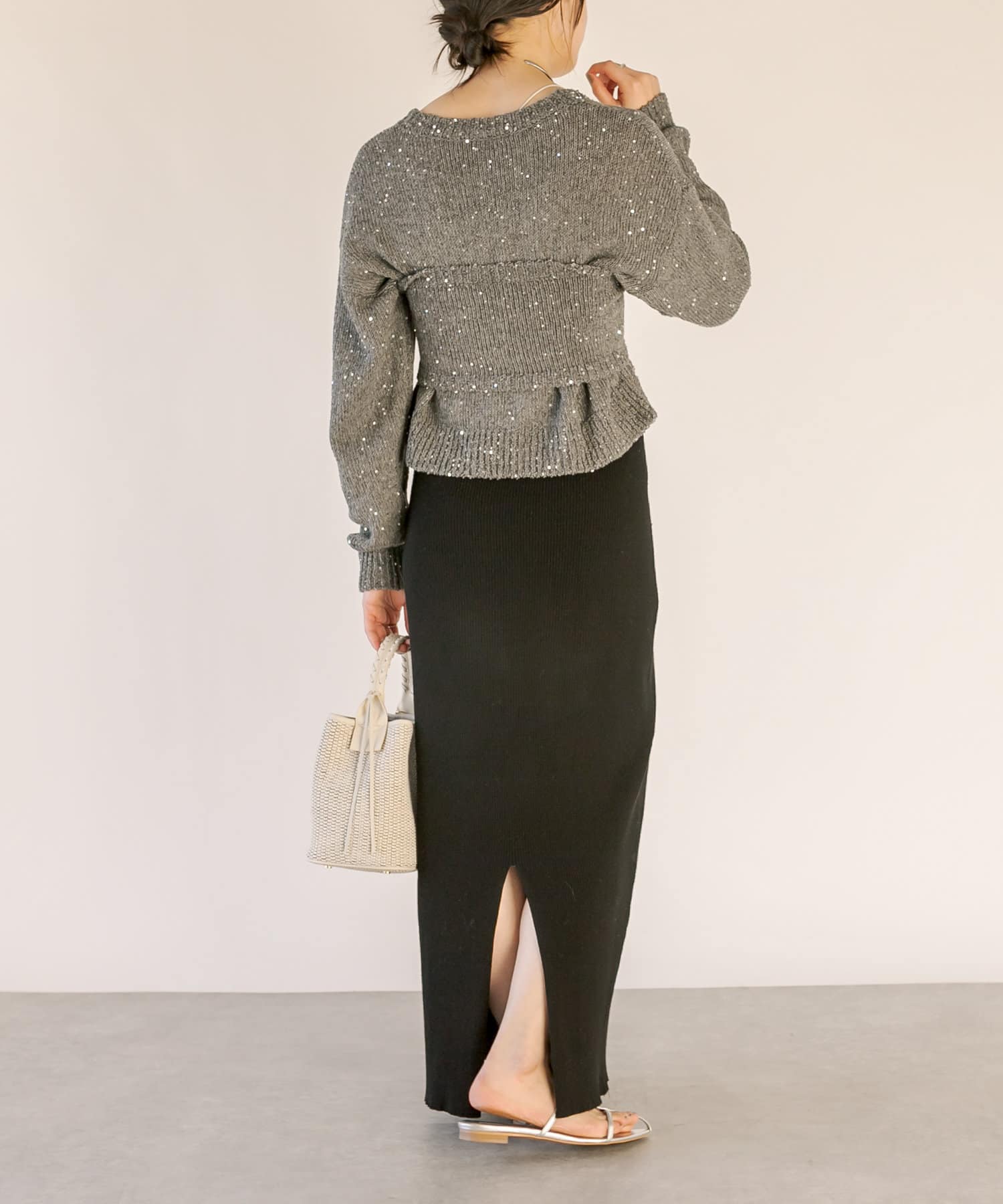 同素材のベアトップがセットになっており、インに着てカーディガンから覗かせたり、カーディガンの上から着る着こなしもおすすめ。