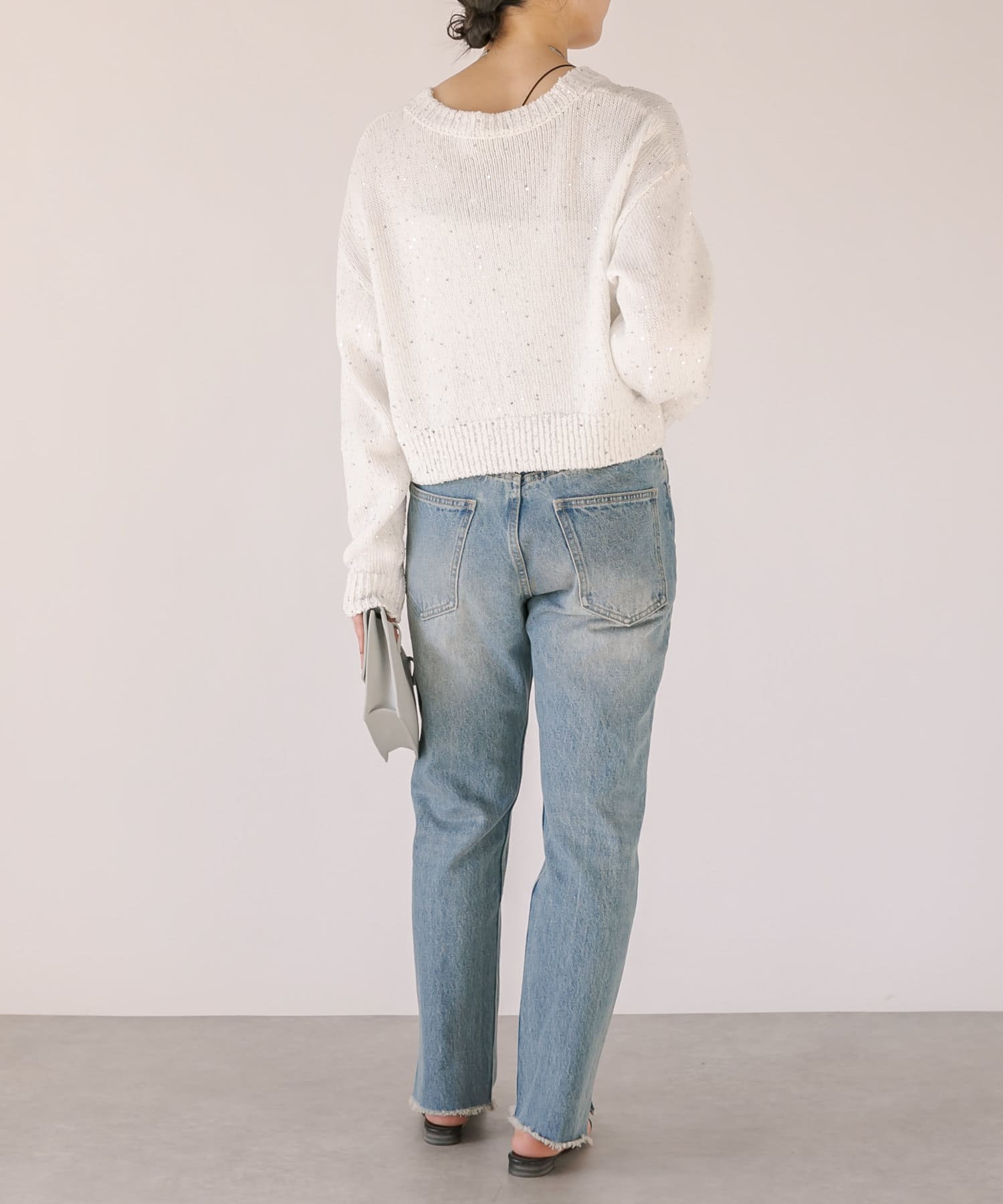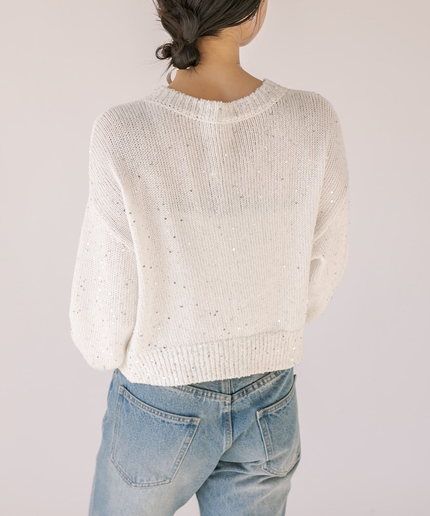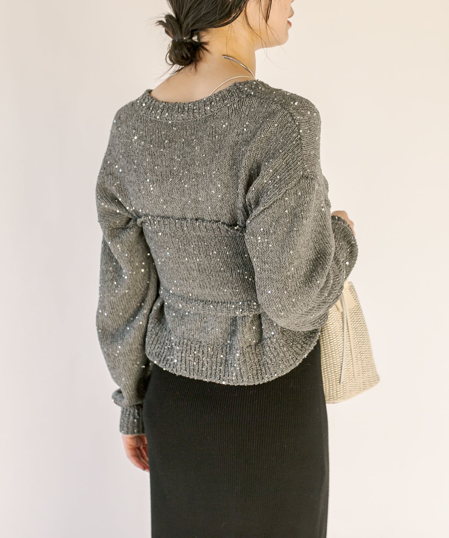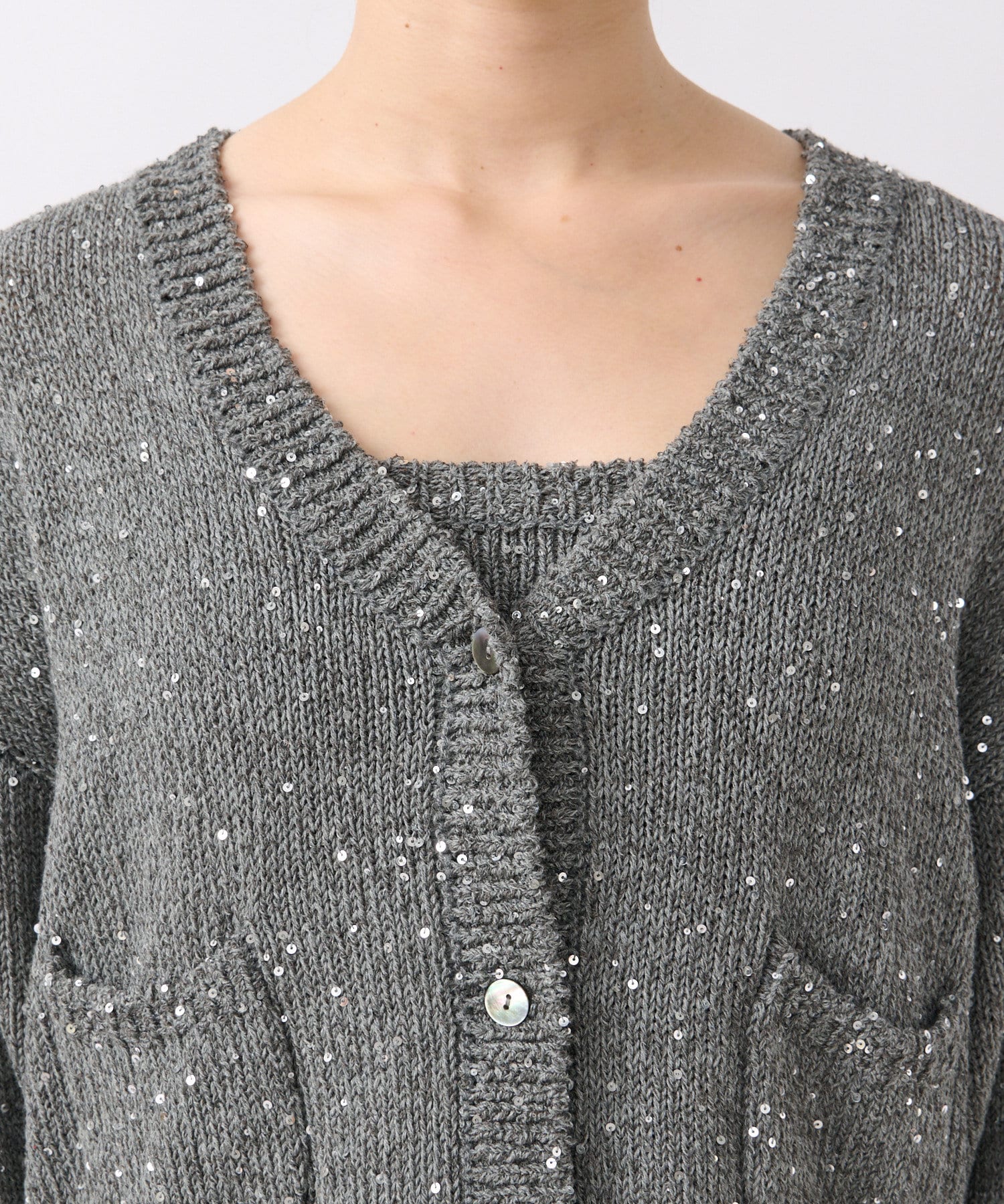 同素材のベアトップがセットになっており、インに着てカーディガンから覗かせたり、カーディガンの上から着る着こなしもおすすめ。