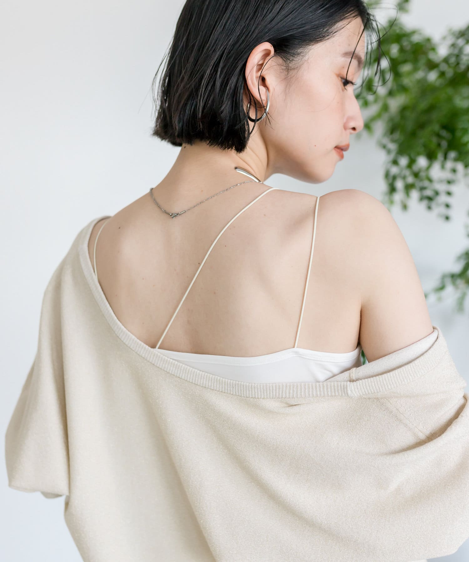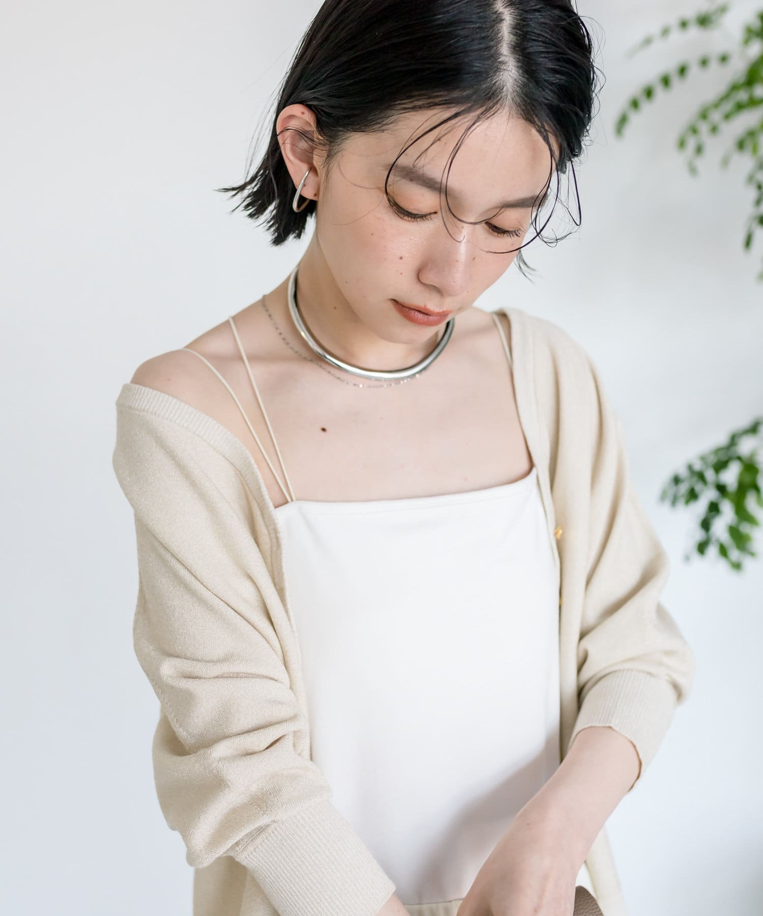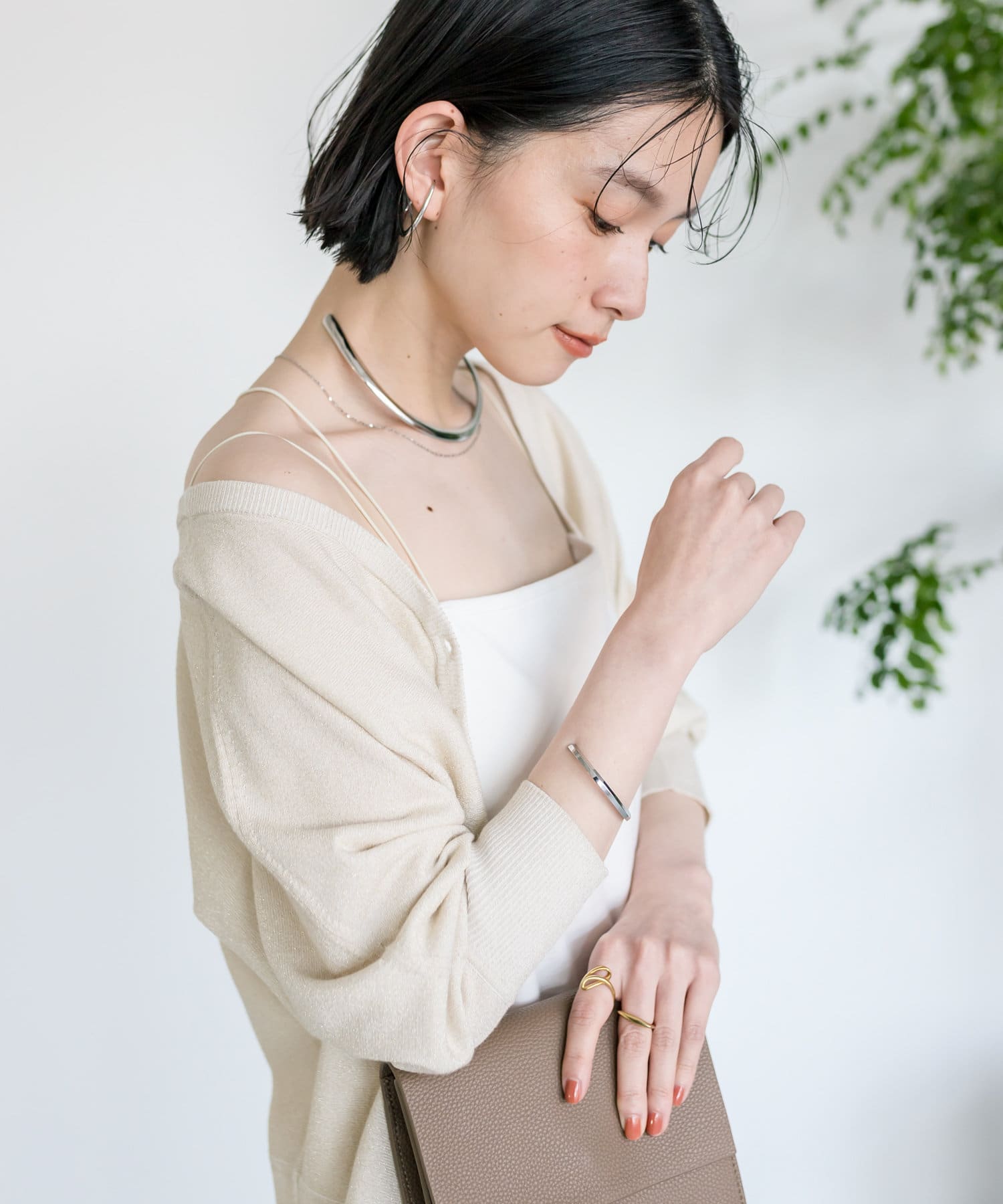 ストラップ部分のデザインにもこだわり、シャツやシアーニットから覗いても様になる仕様に。