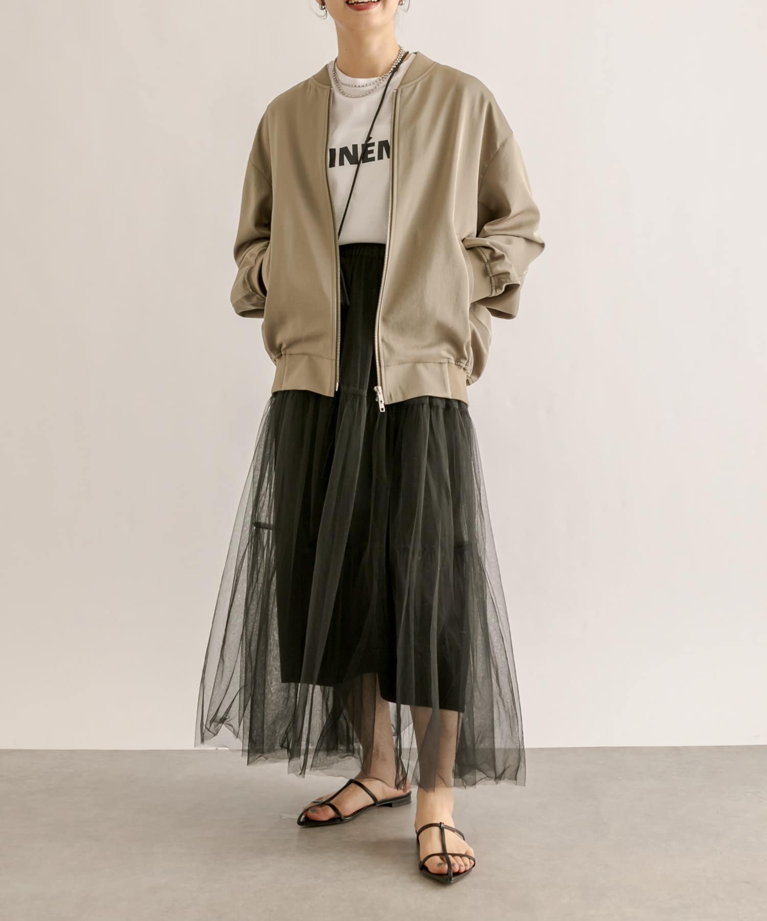 ジャケットのインに着たり、シアーアイテムのインに着て透け感を楽しむのもおすすめ。