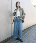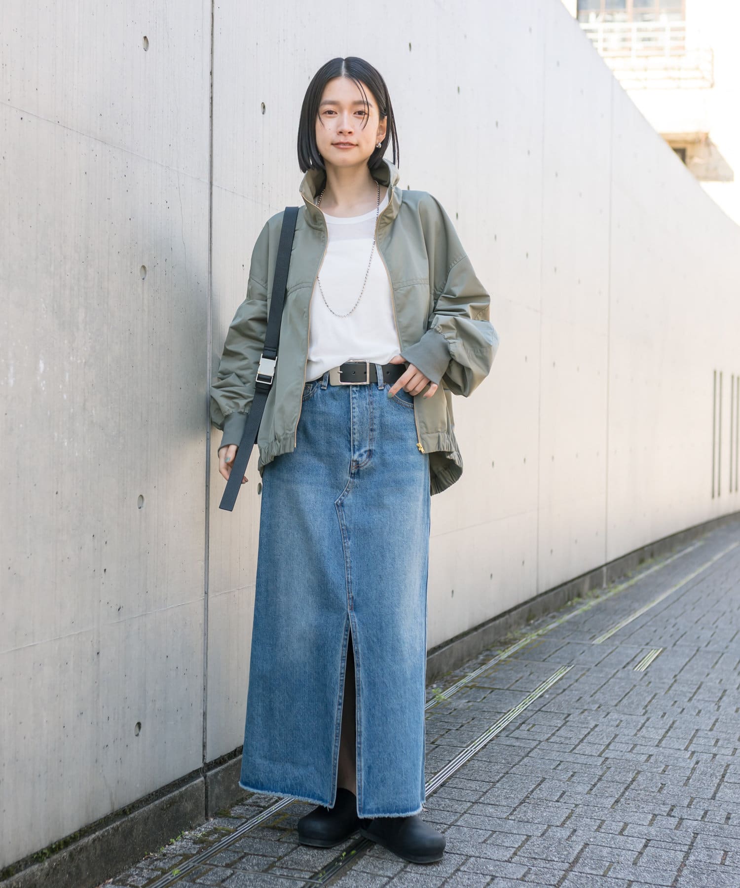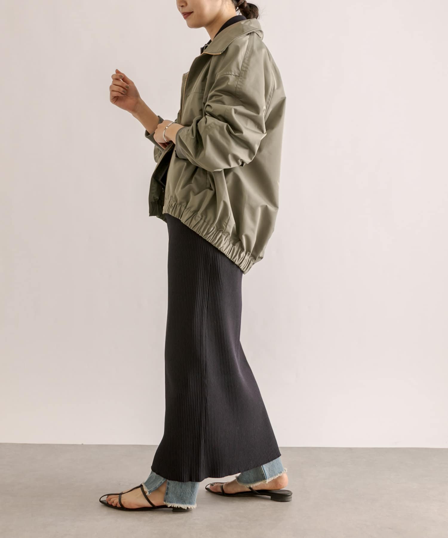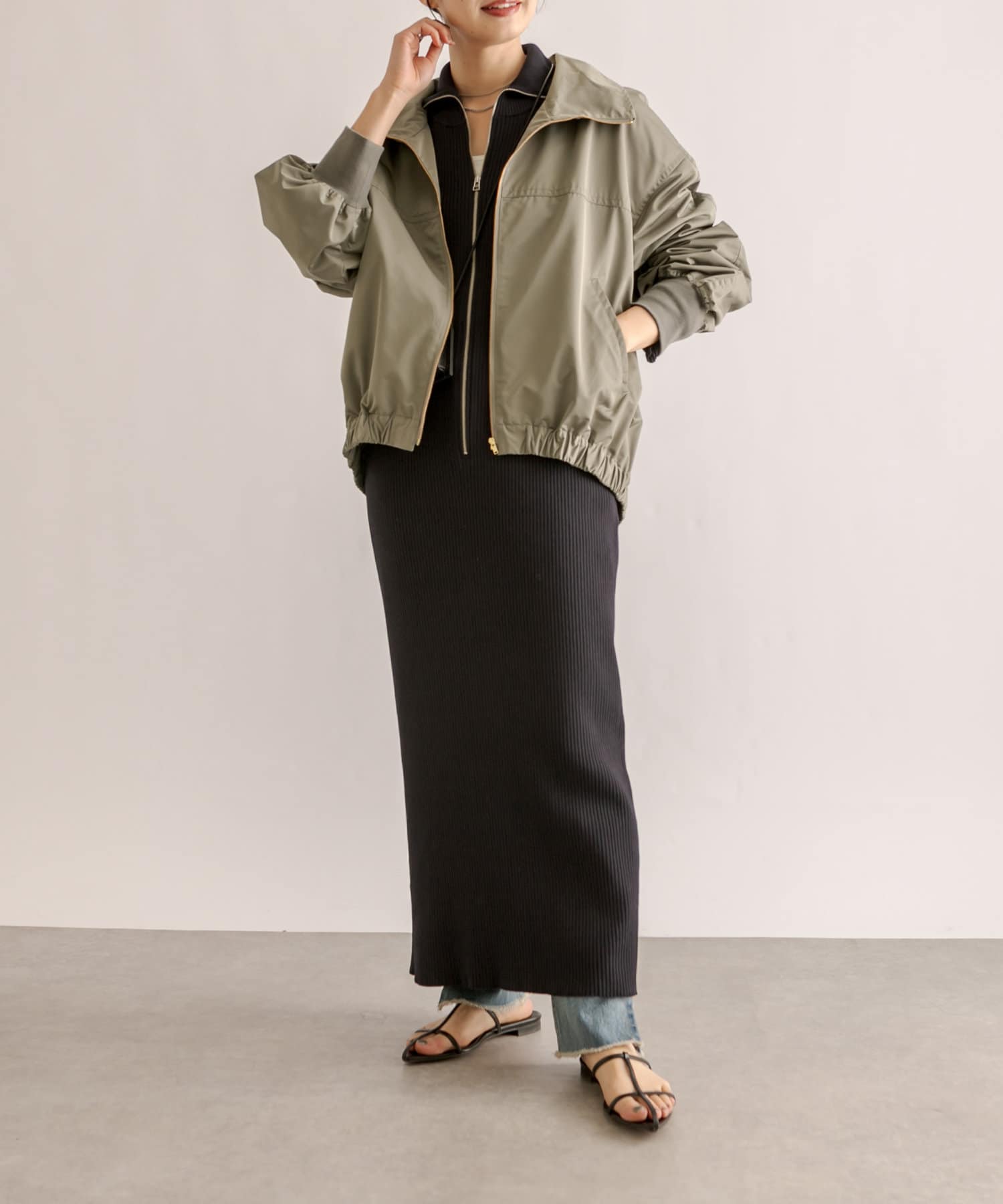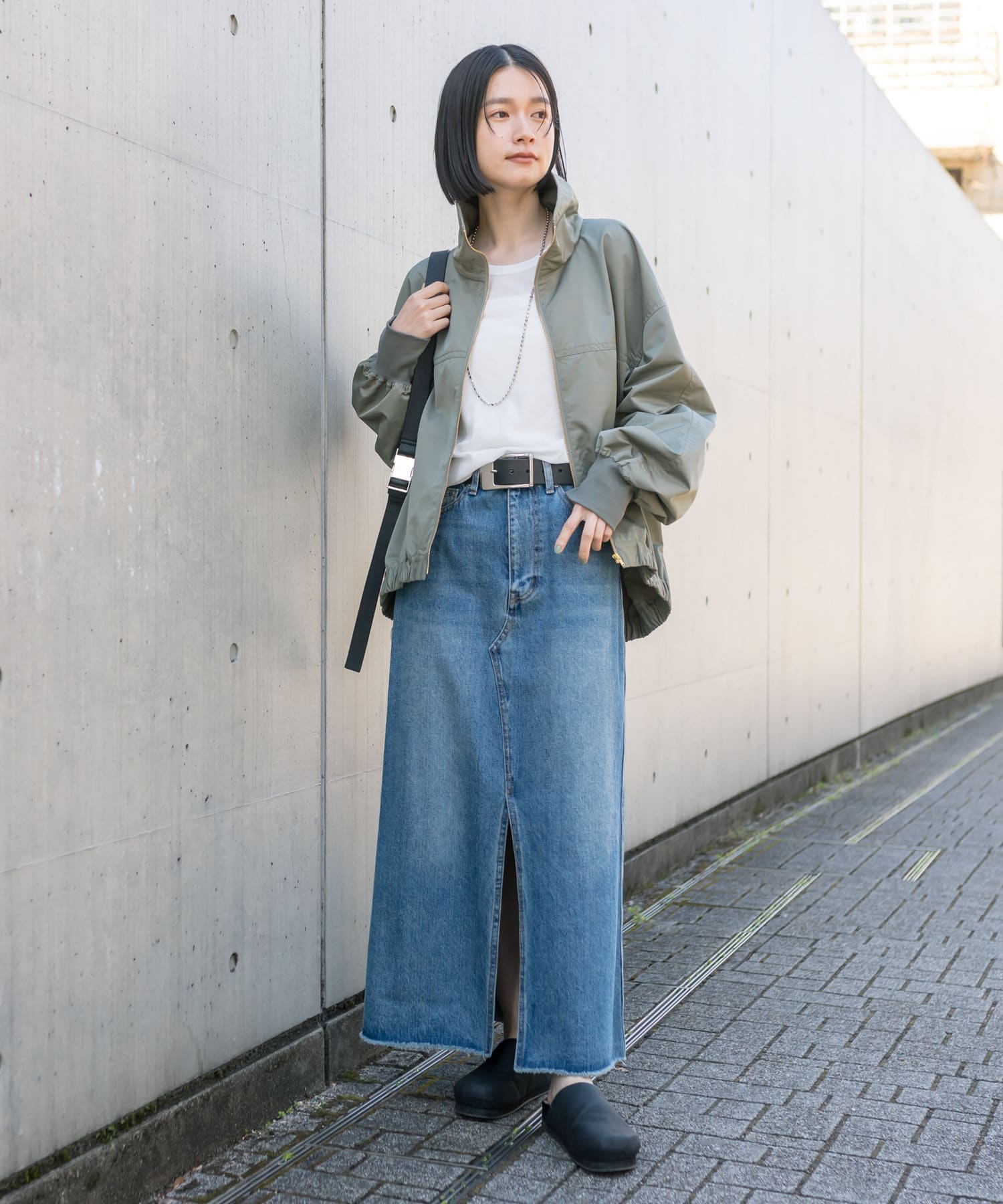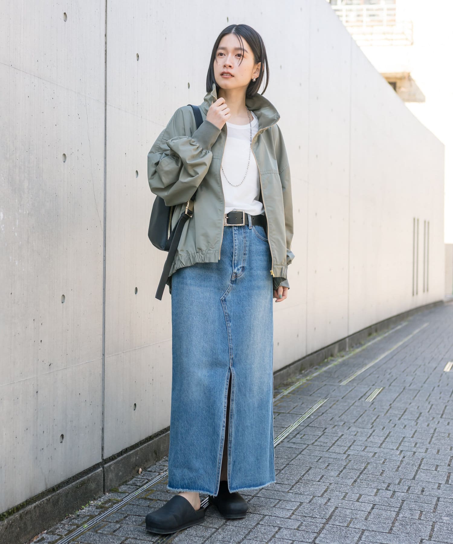 途中までジップを上げてちょっと後ろに抜いて着るのが可愛かったです。スカート合わせも良きです。