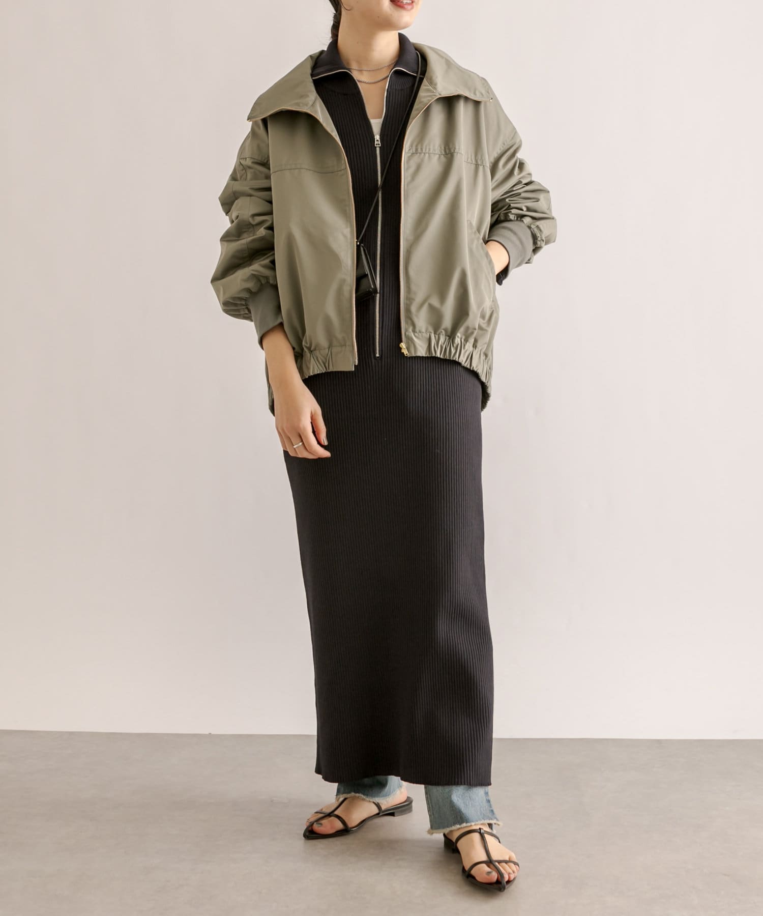 薄手なので春と秋に使えそう。スタンドカラーでカッコよく合わせたいです。