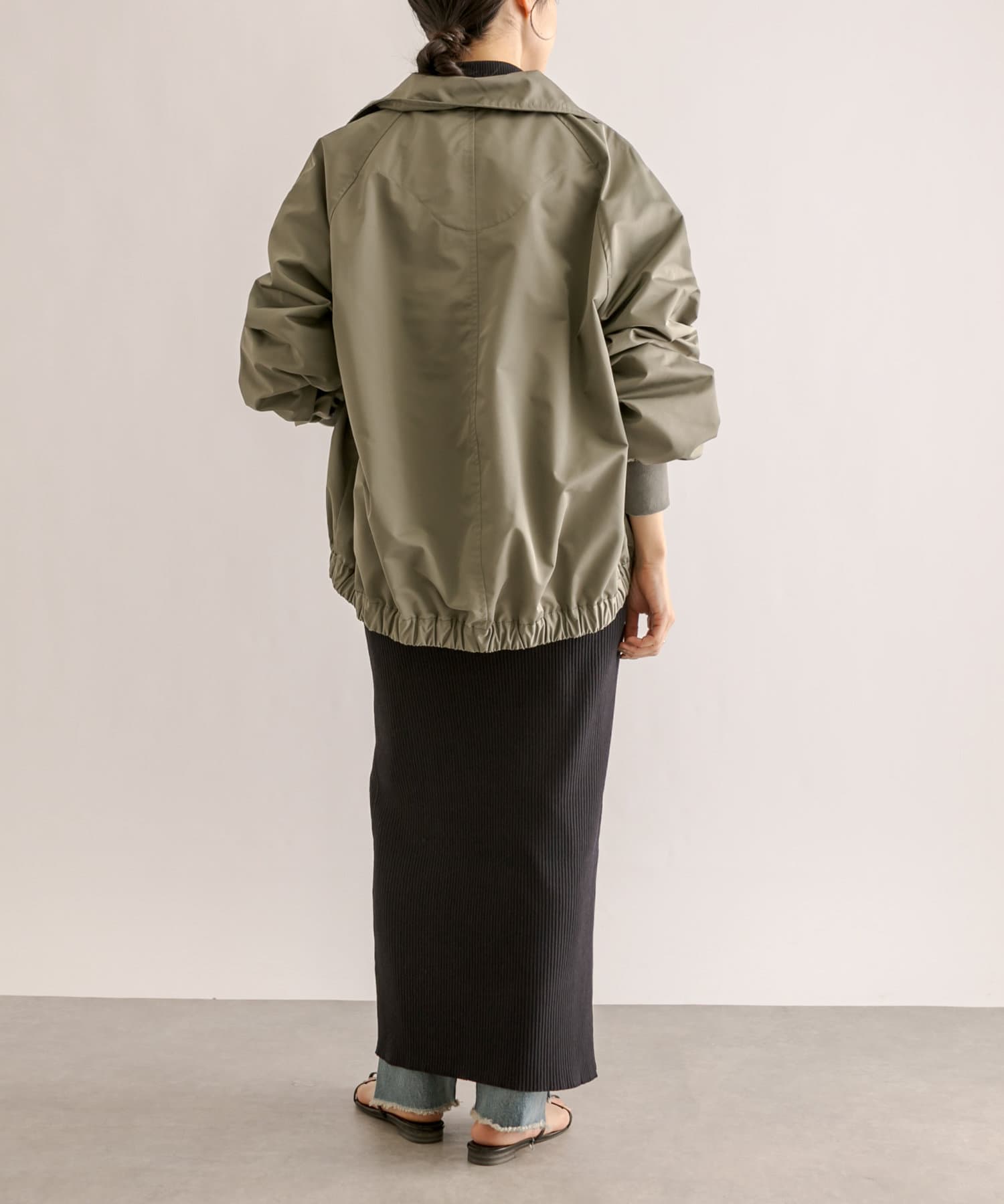 店舗で一目惚れ。後ろ下がりのシルエットで私の身長でもお尻が半分くらい隠れるのでボトムスを選ばずに着れそうです。ジップをフルにあげるのもかっこいいですが、私は途中で止めて大きい襟のように首周りをすっきりさせるのがお気に入りです。