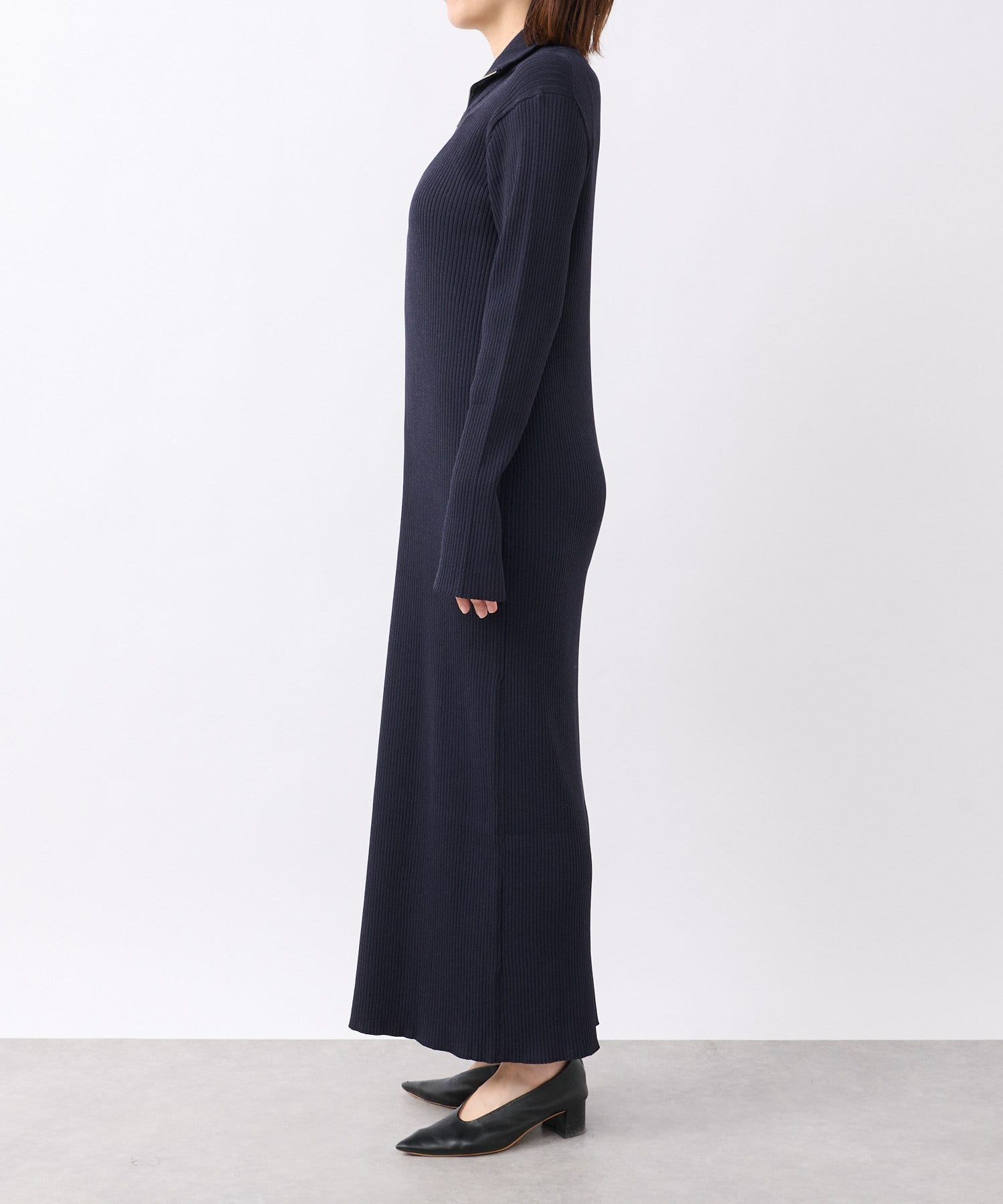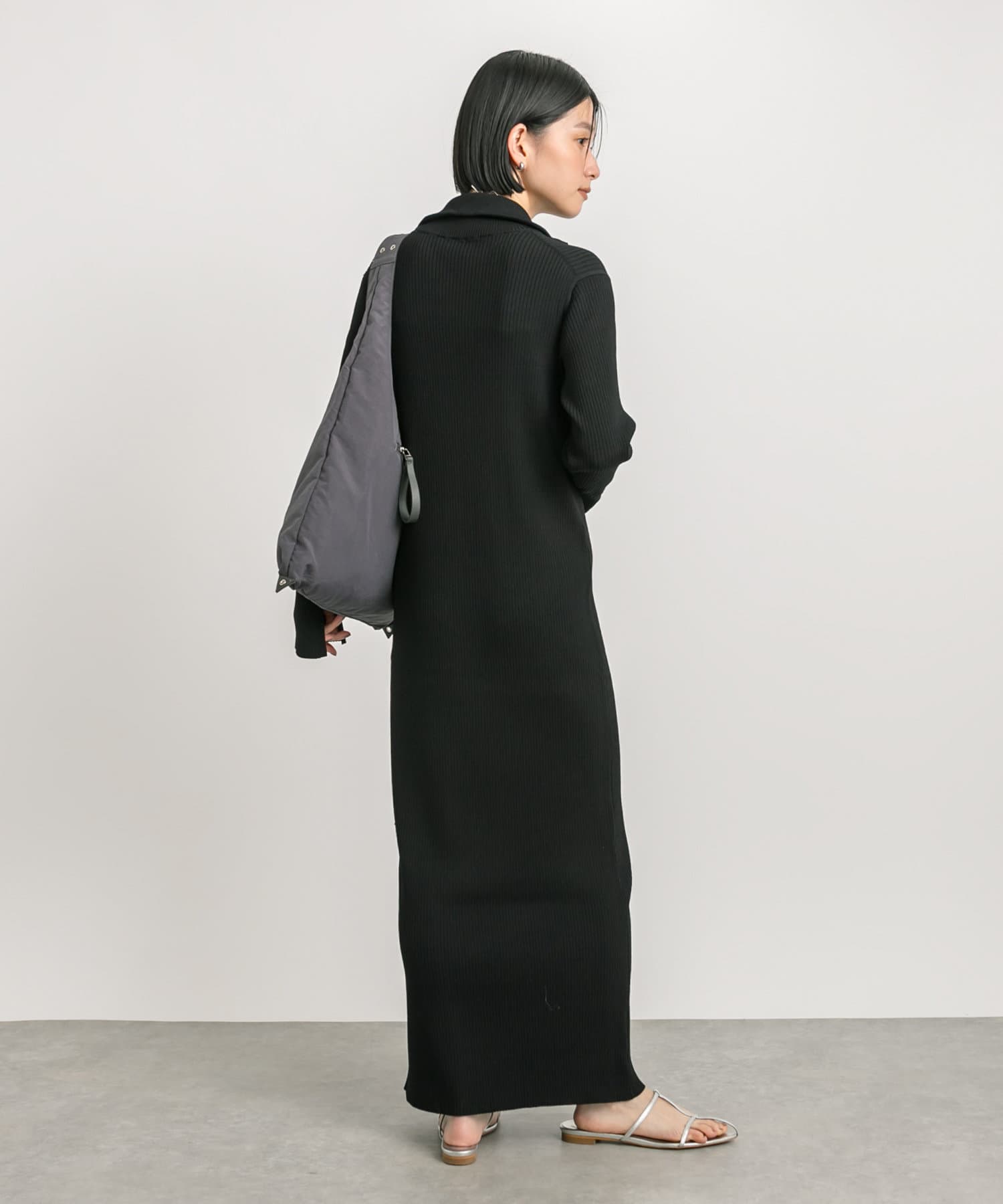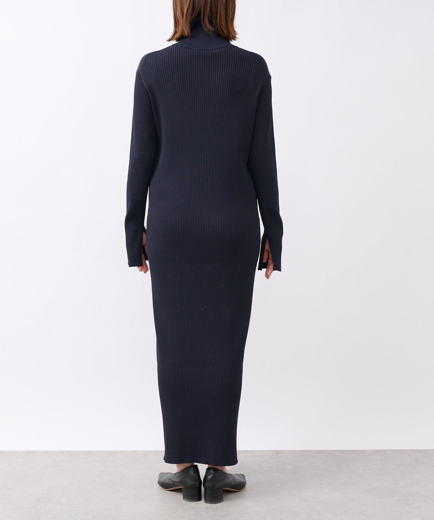 伸縮性抜群のリブニット素材を使用したワンピース。