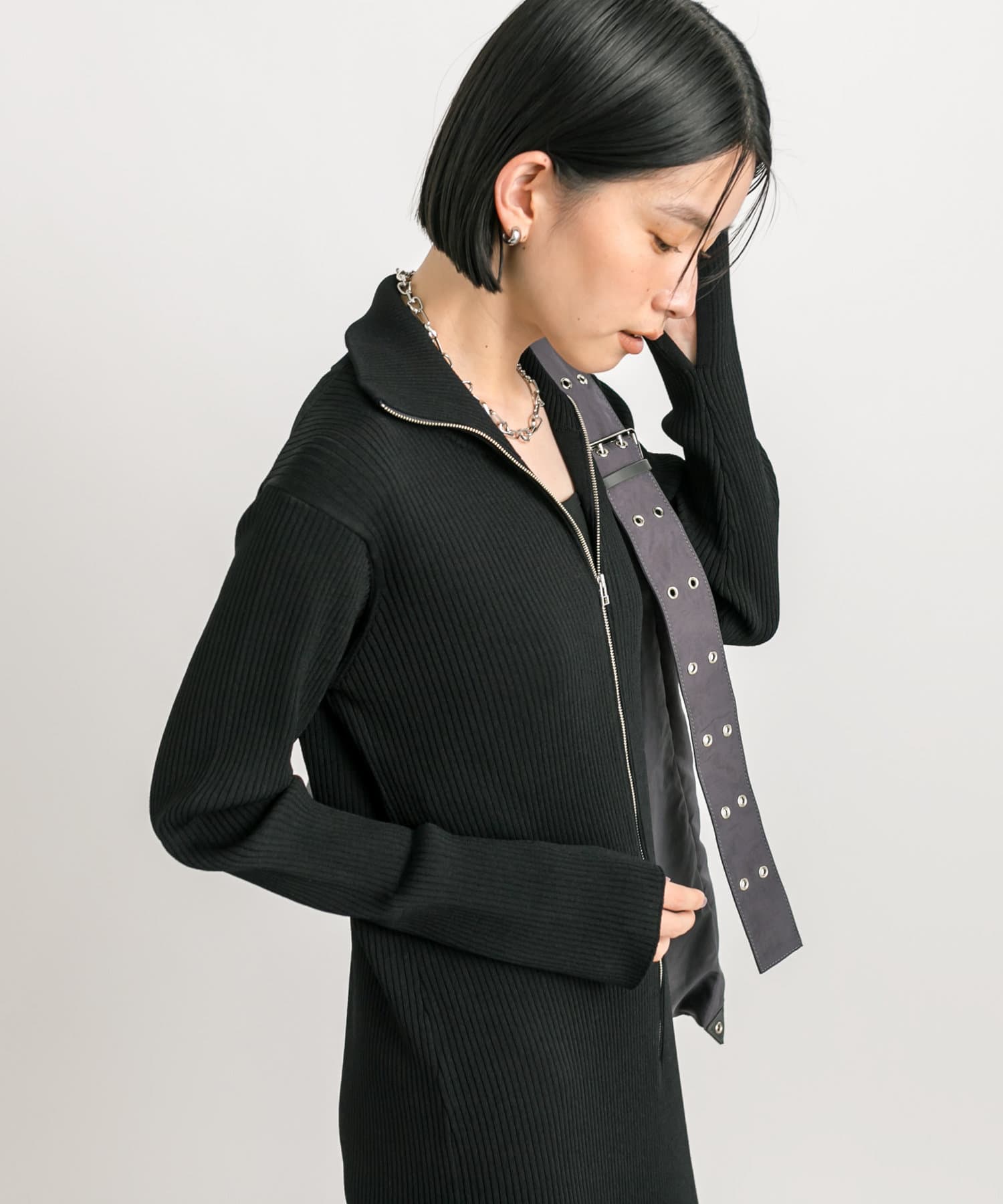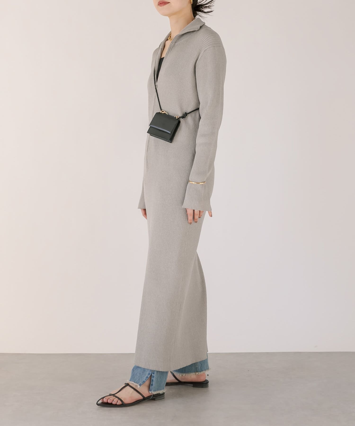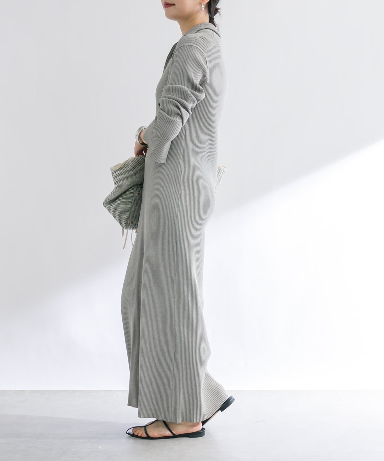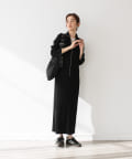 伸縮性抜群のリブニット素材を使用したワンピース。