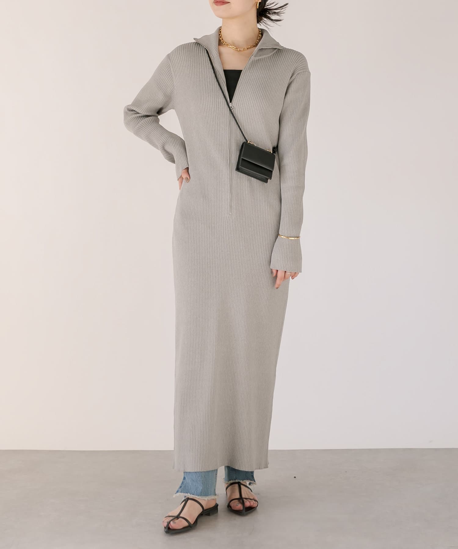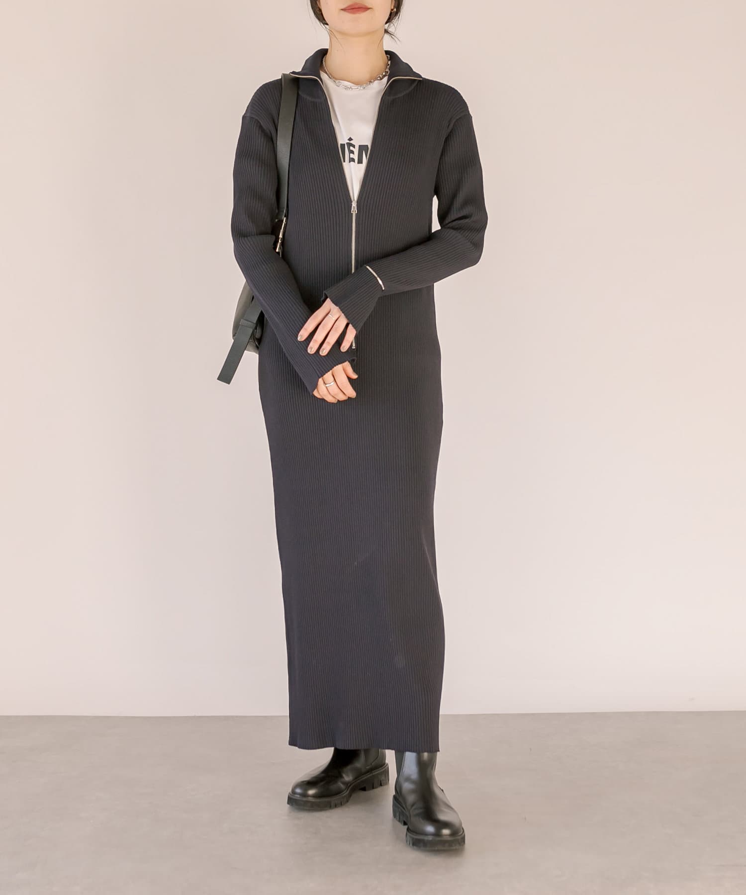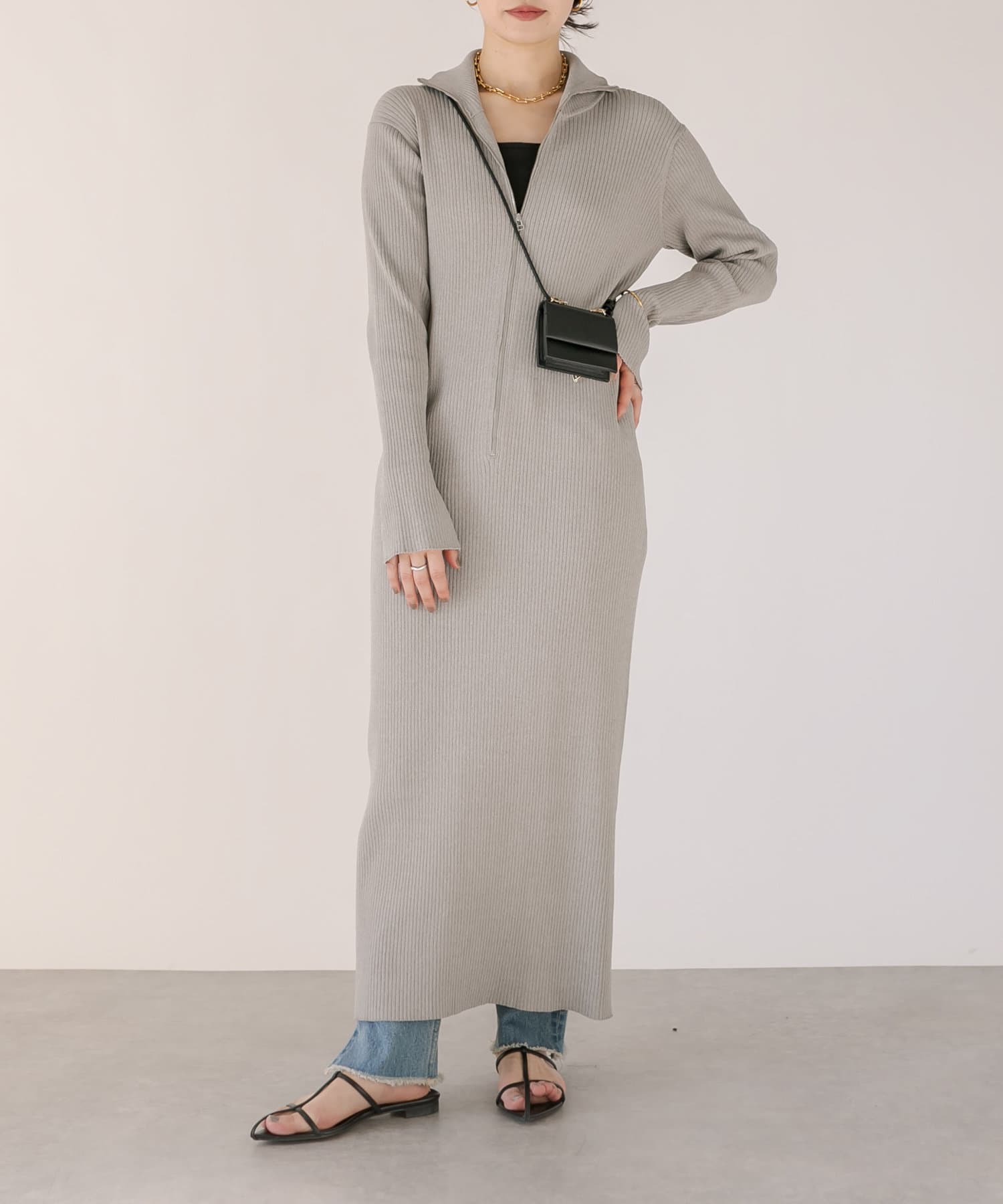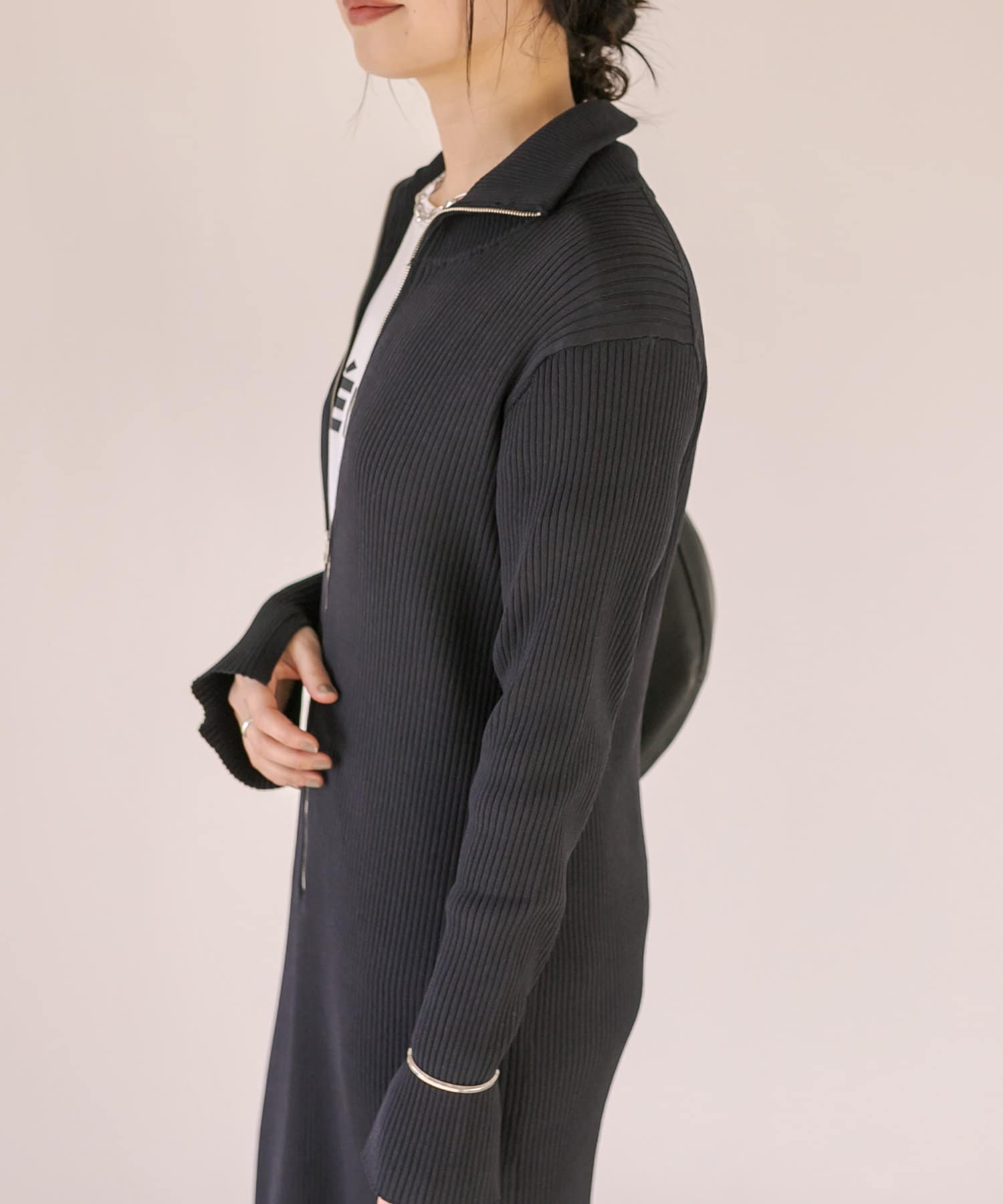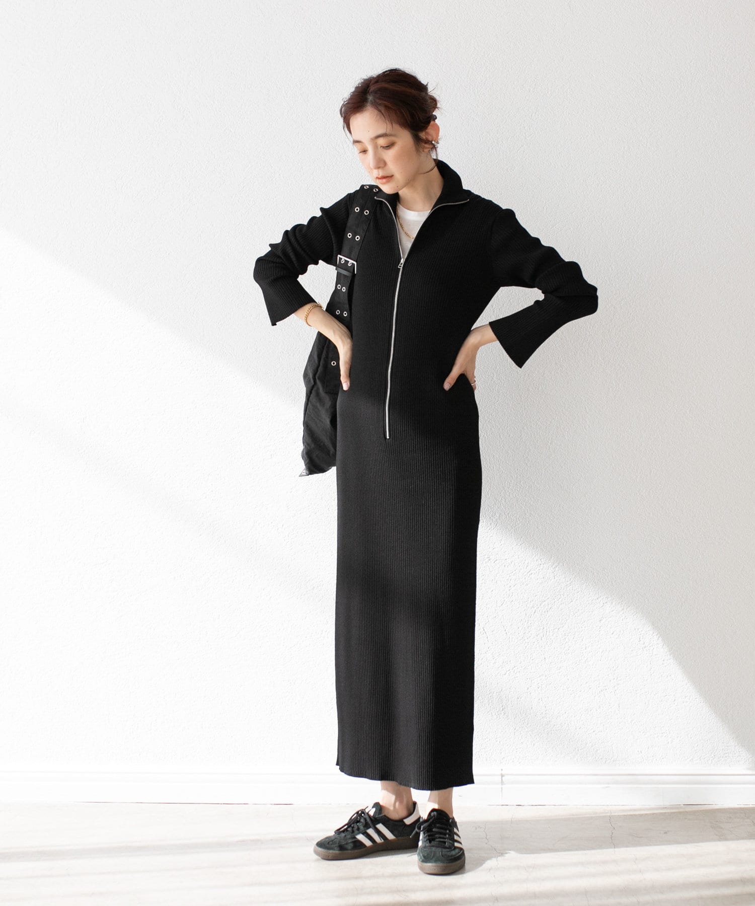 【着やせ見え◎】ハーフZIPリブニットワンピース